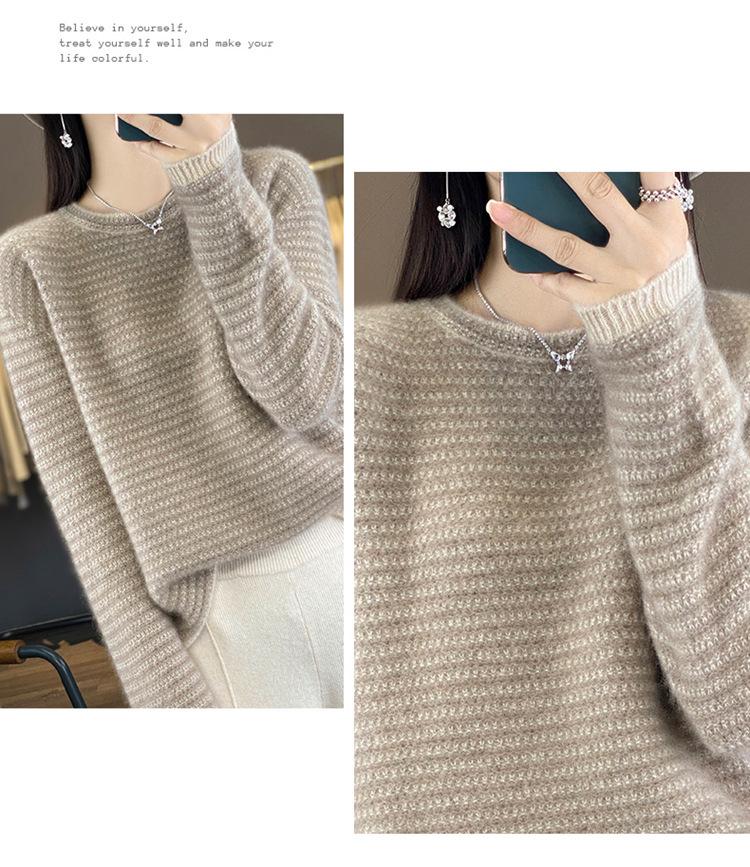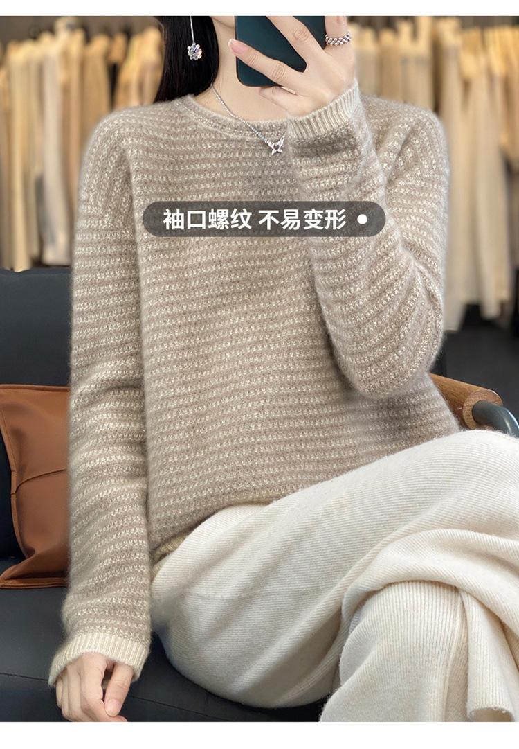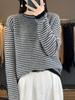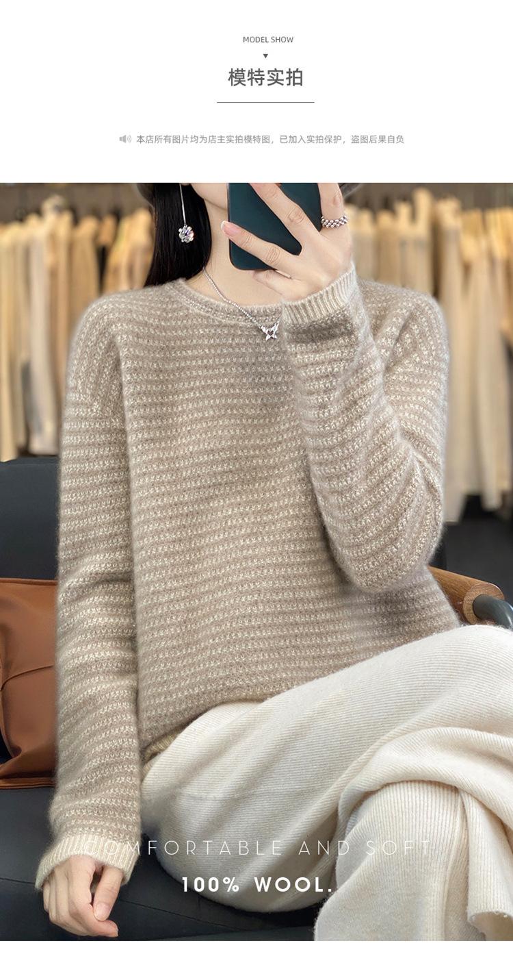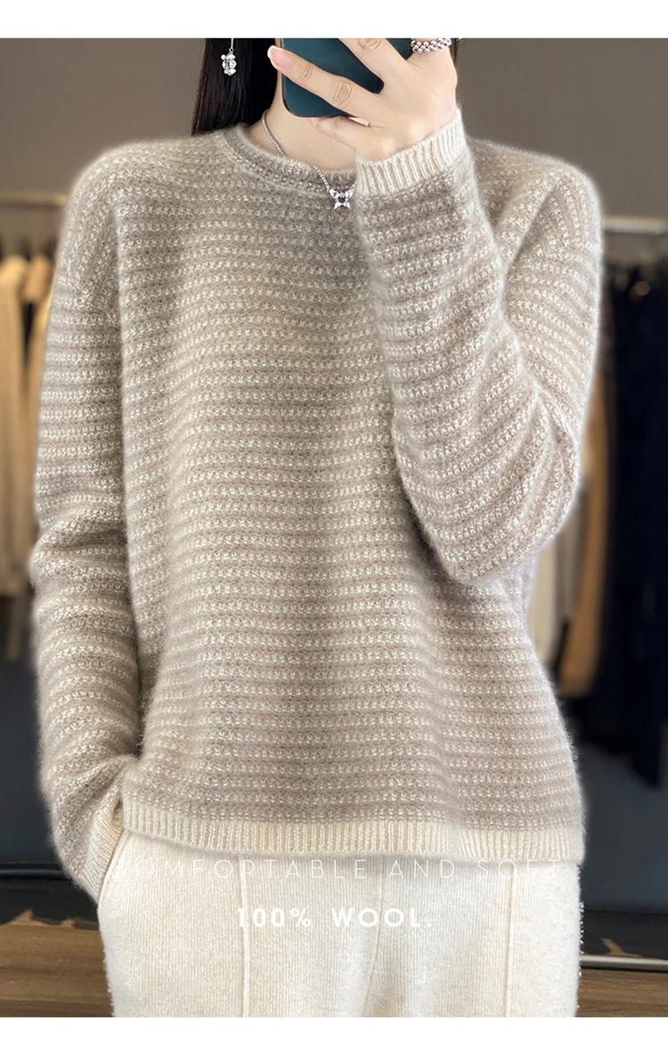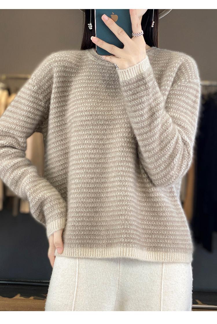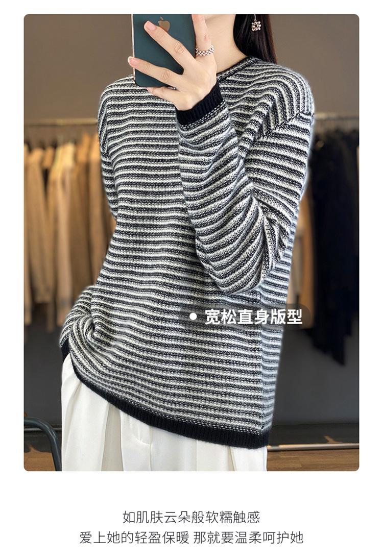 Suéter holgado de lana a rayas coreanas para mujer, otoño e invierno, diseño retro, cuello redondo, color block, 2023