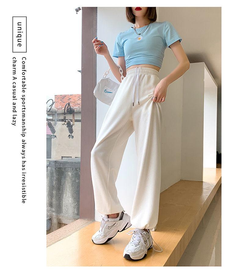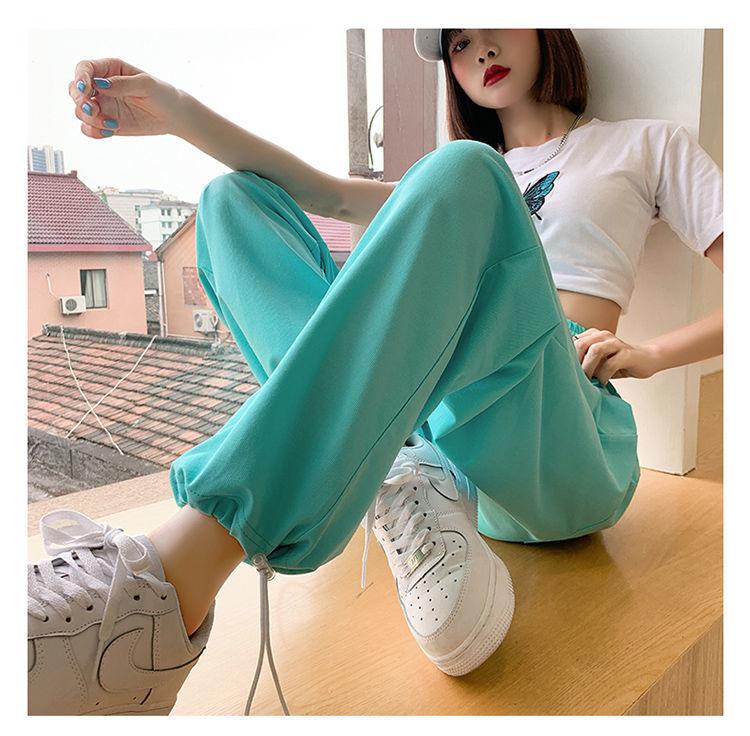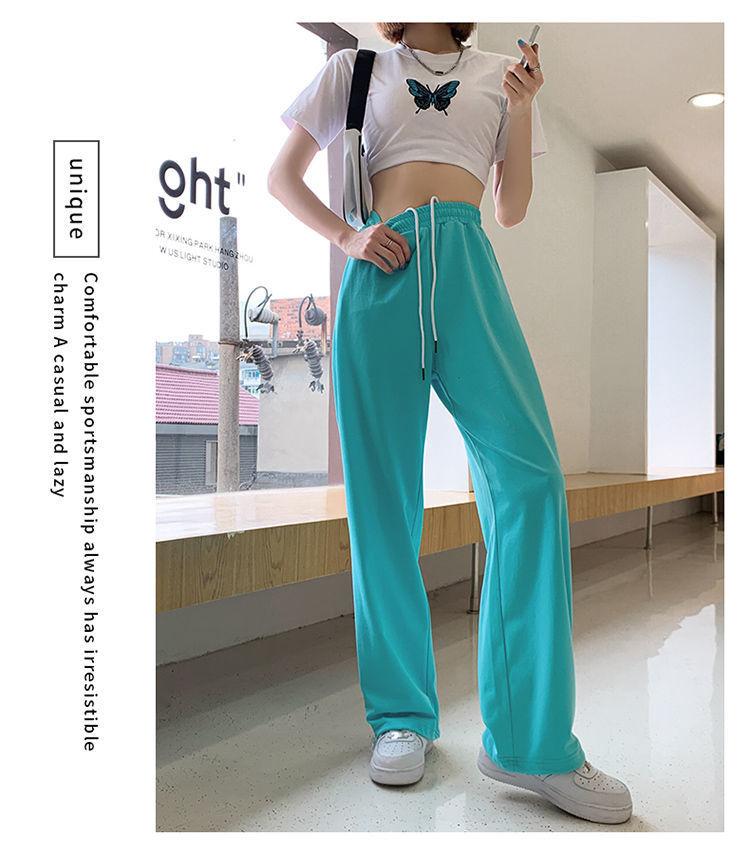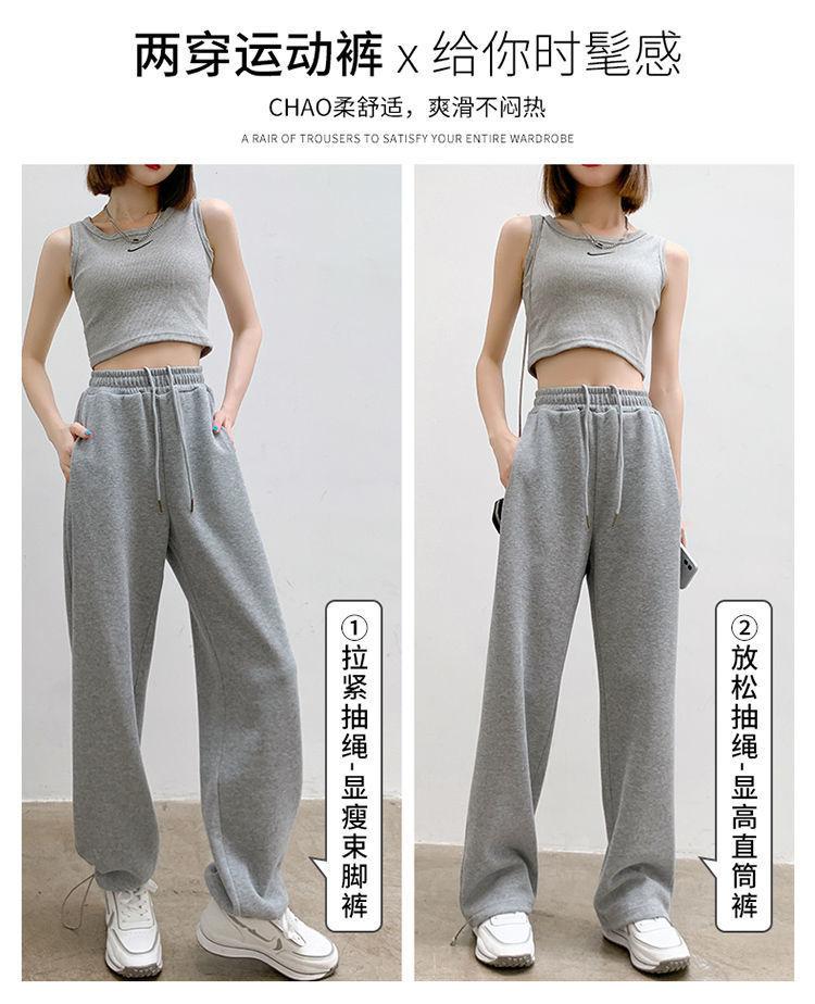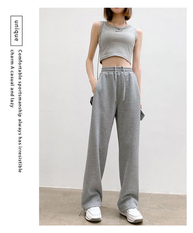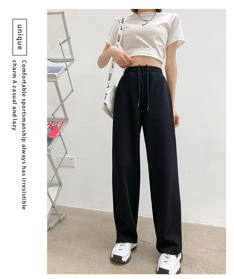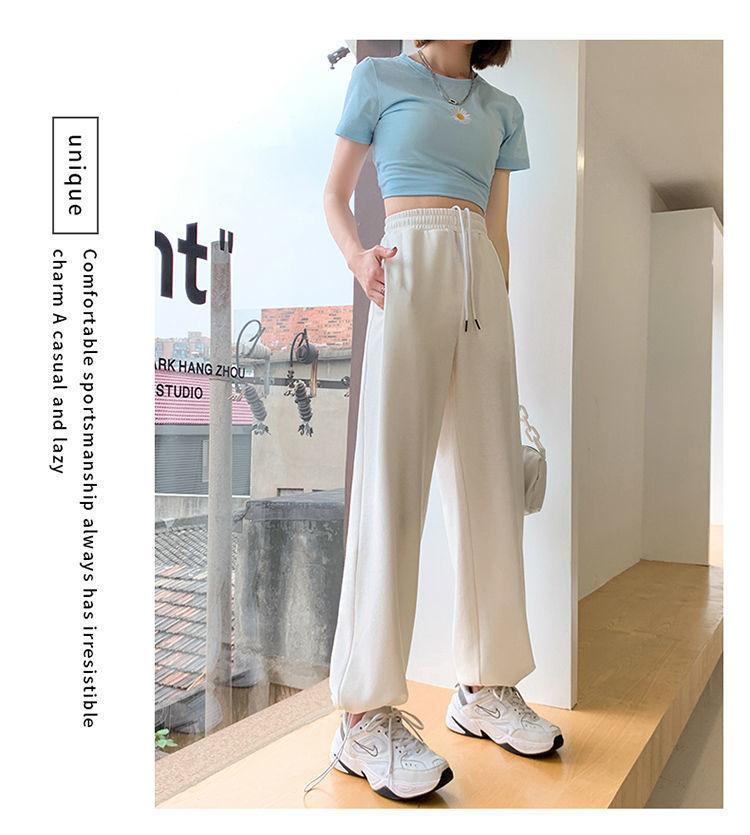 Pantalones deportivos con cordón para mujer, primavera 2022, nuevos pantalones holgados e informales para mujer, cintura alta, rectos, pierna ancha y tobillo.