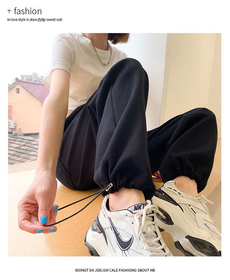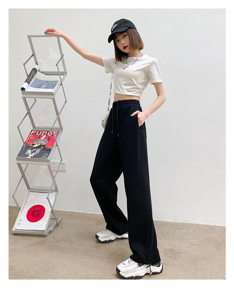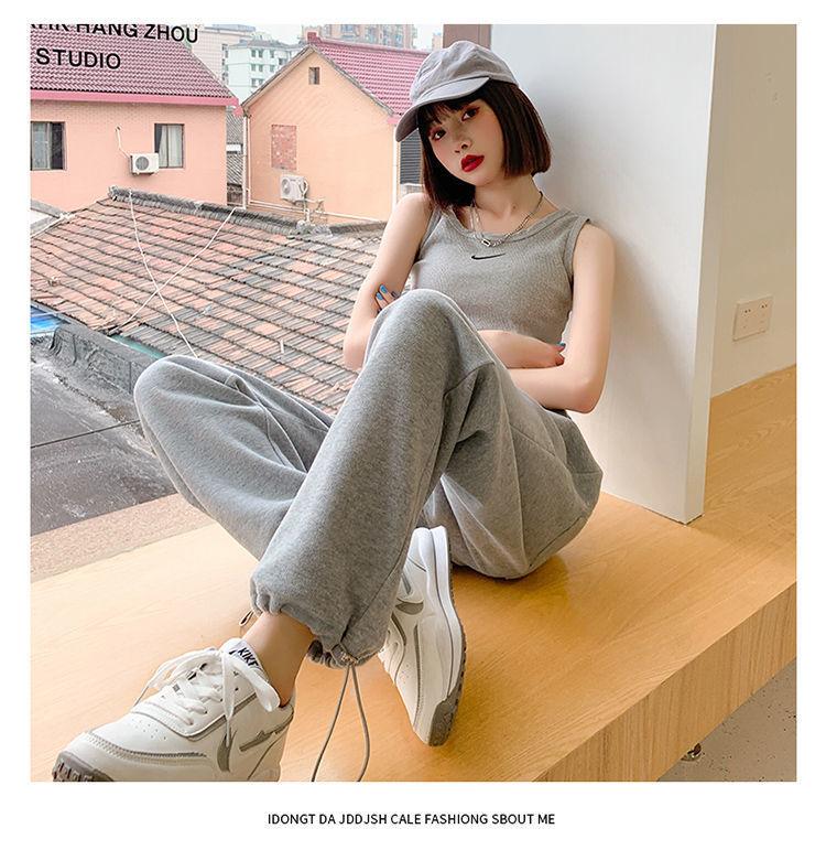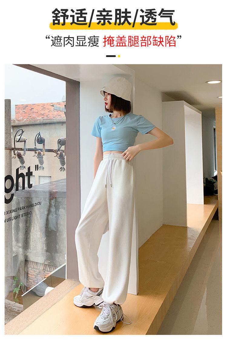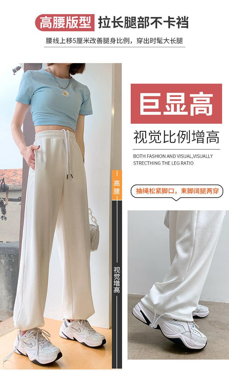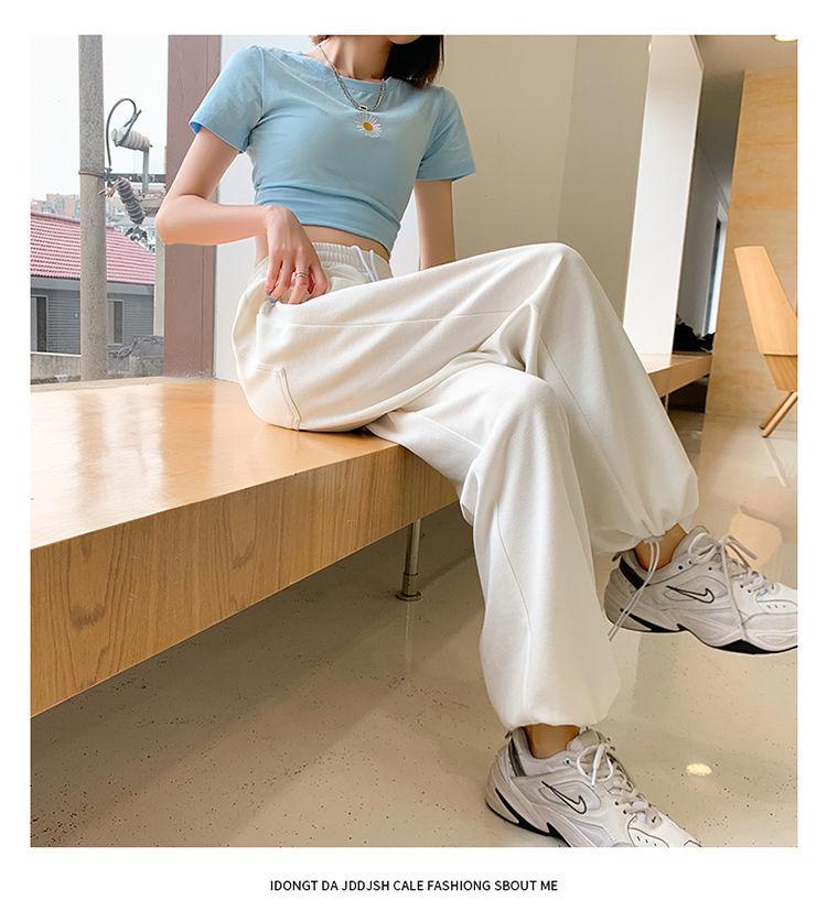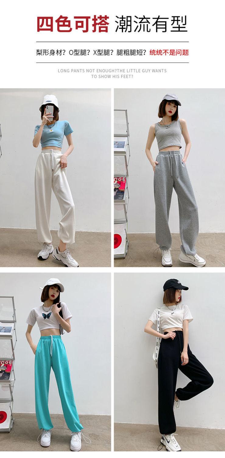 Pantalones deportivos con cordón para mujer, primavera 2022, nuevos pantalones holgados e informales para mujer, cintura alta, rectos, pierna ancha y tobillo.