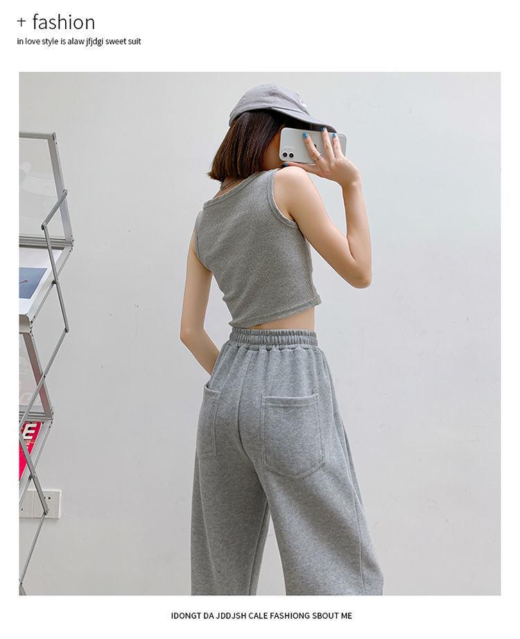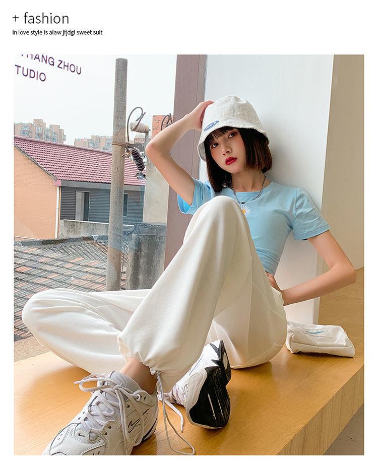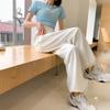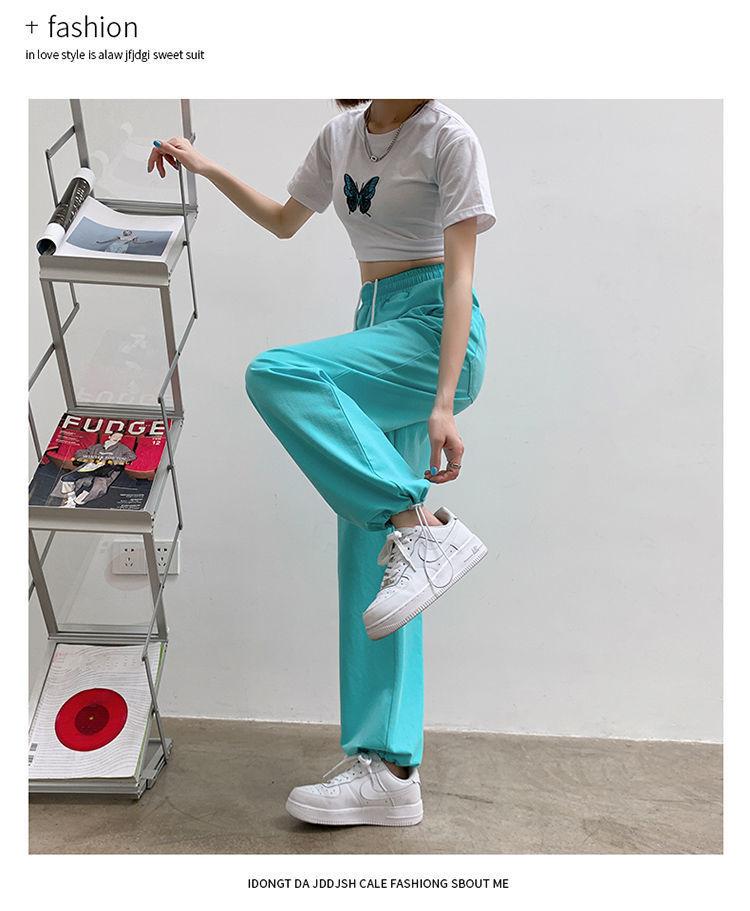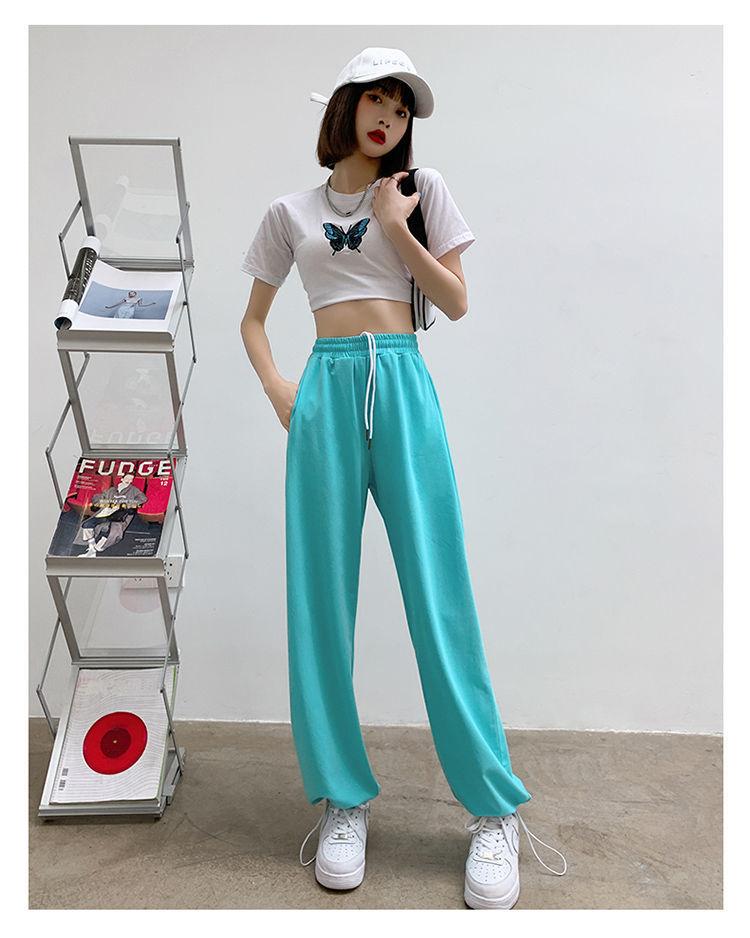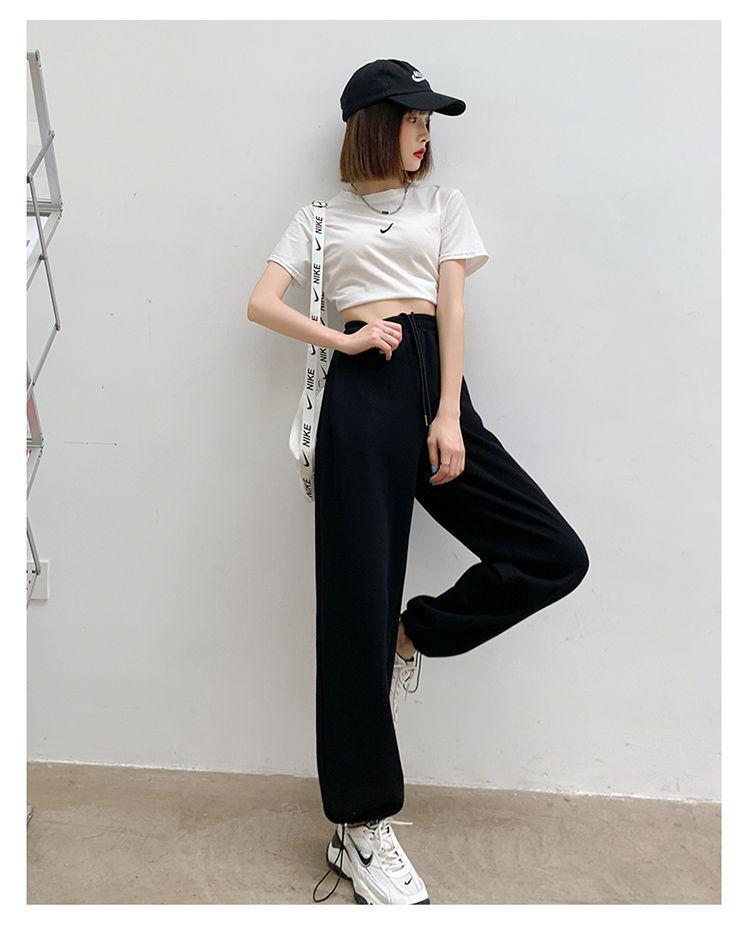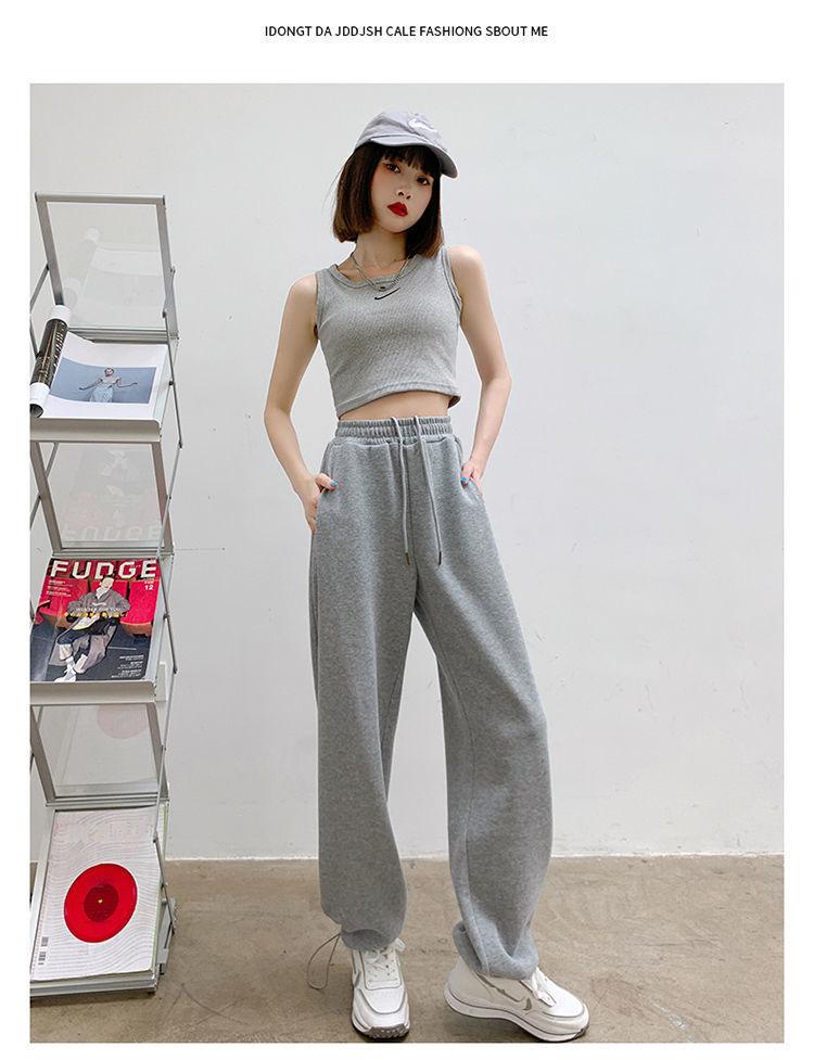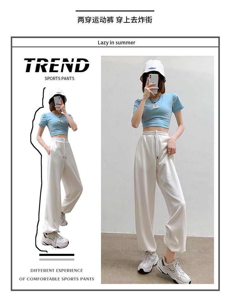 Pantalones deportivos con cordón para mujer, primavera 2022, nuevos pantalones holgados e informales para mujer, cintura alta, rectos, pierna ancha y tobillo.