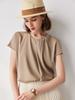 Blusa de Seda de Manga Curta para Mulheres 2026 Primavera e Verão Nova Cor Sólida Roupa de Trabalho Elástica Georgette Duplo Gola Redonda Estilo Elegante Blusa de Seda de Amora