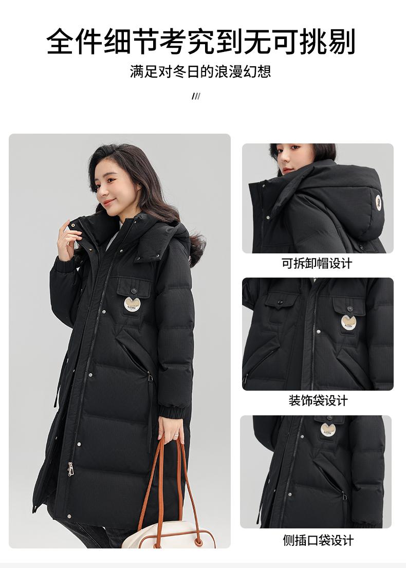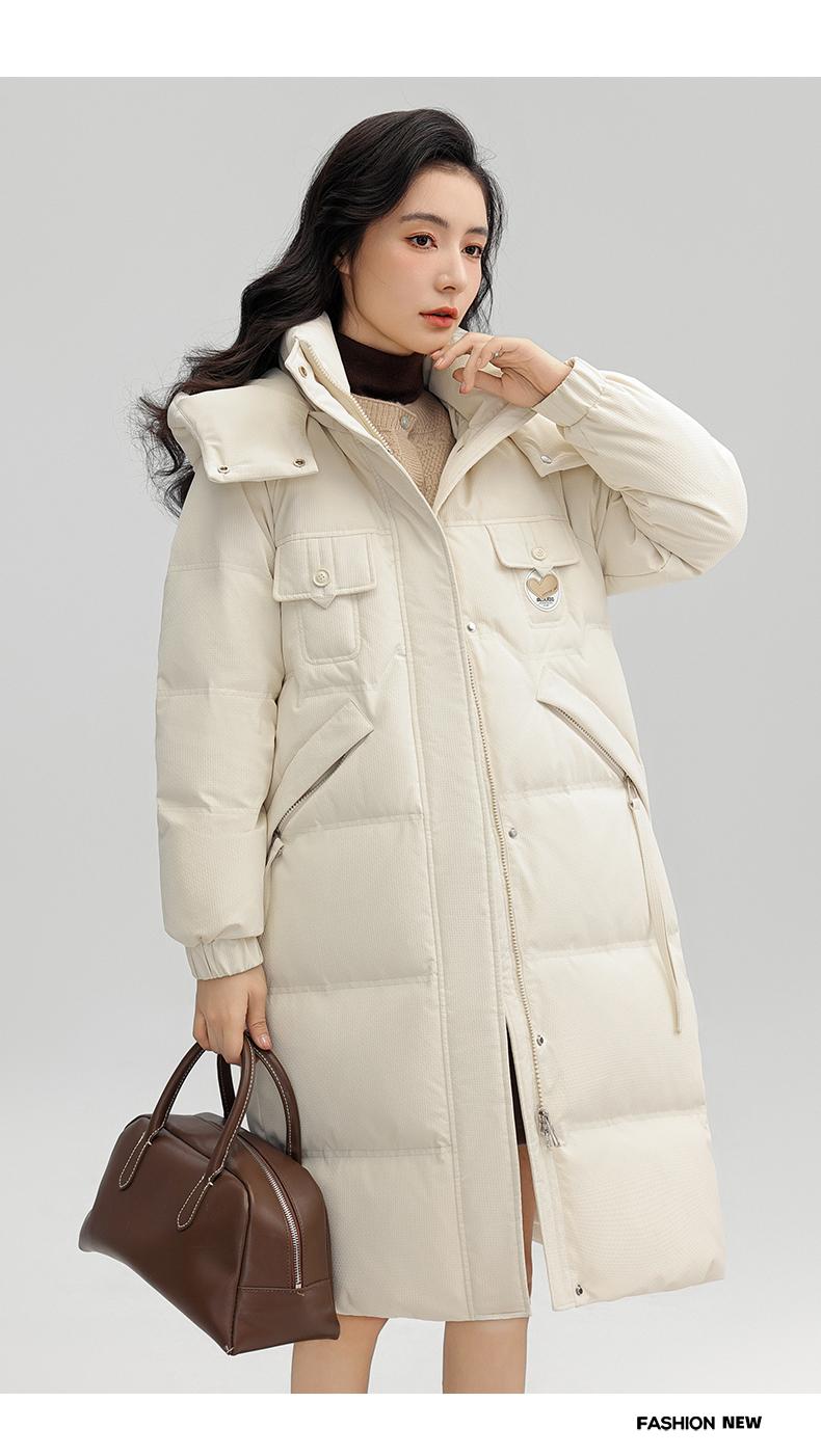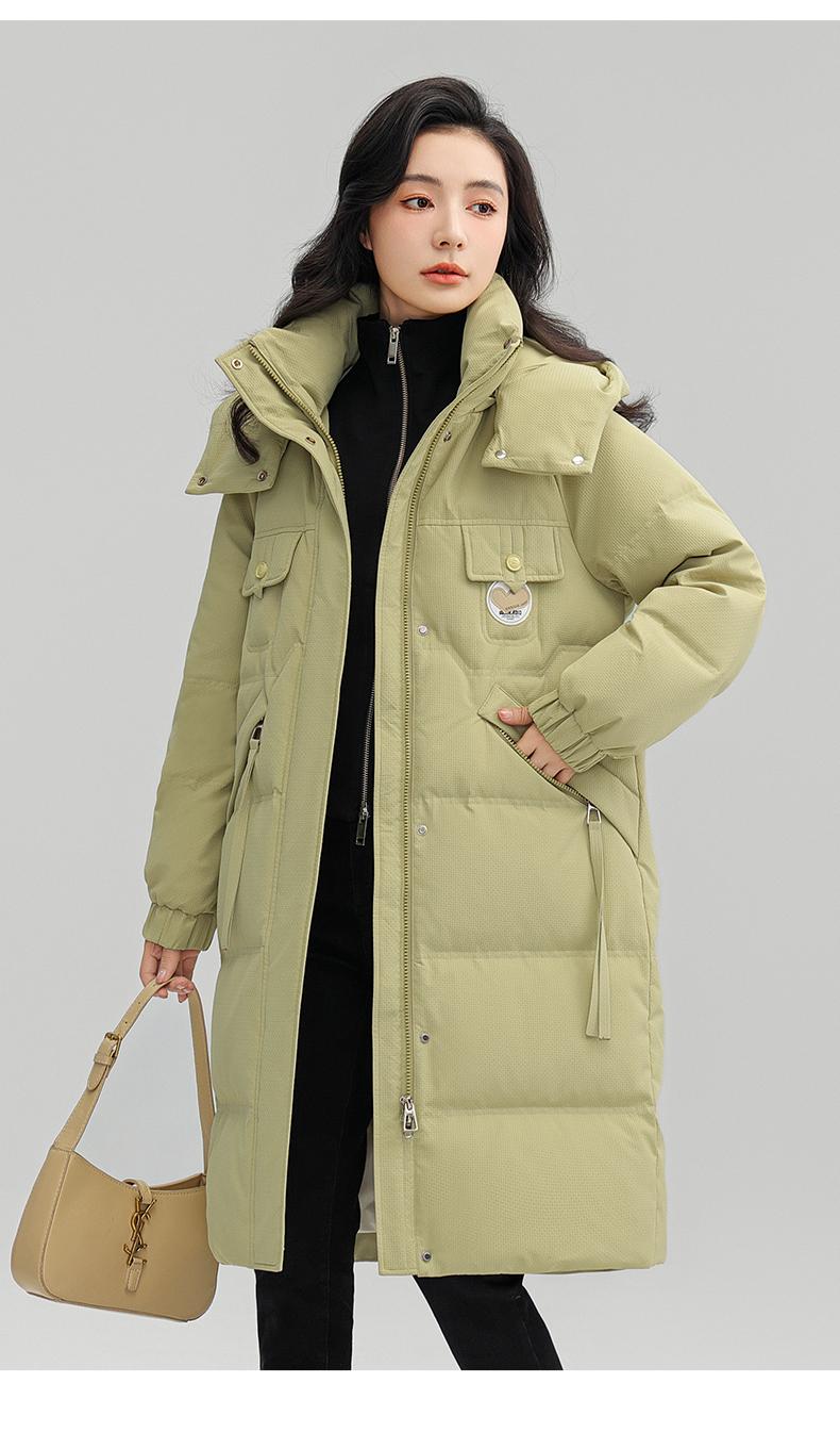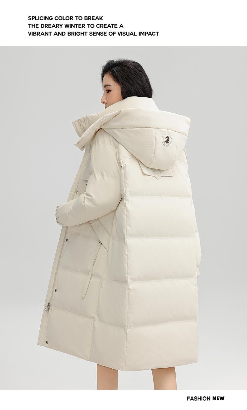 Chaqueta de plumón de pato para mujer 2025 Invierno Nuevo Largo medio Moderna Versátil Con capucha Gruesa Plumón de pato Abrigo cálido Y