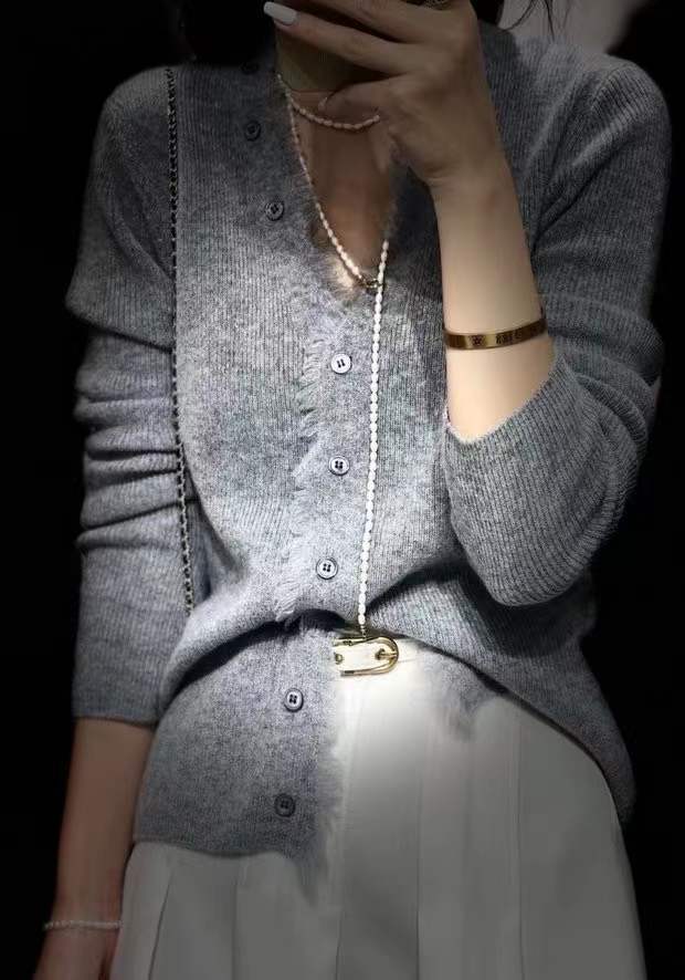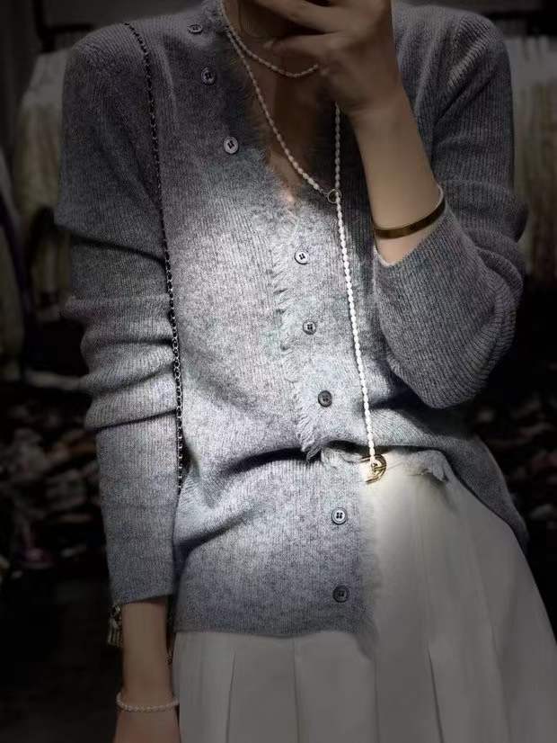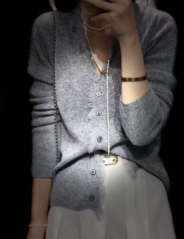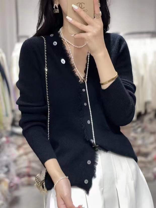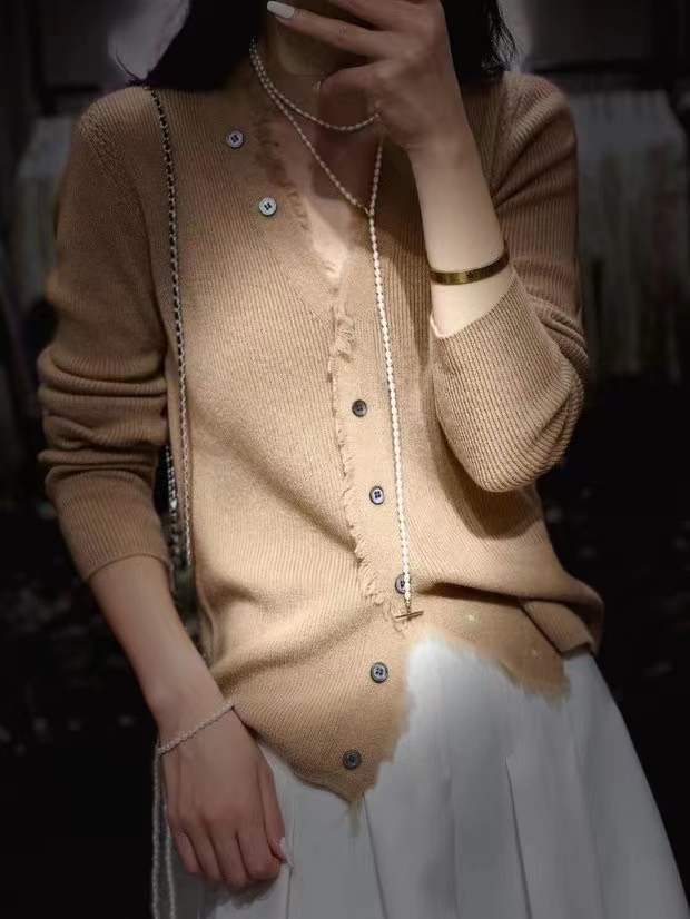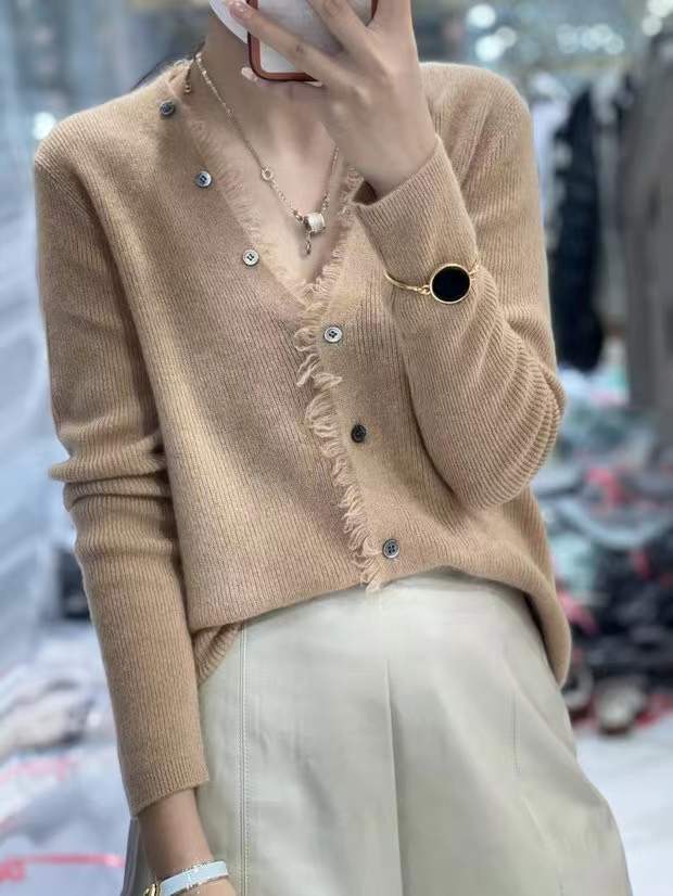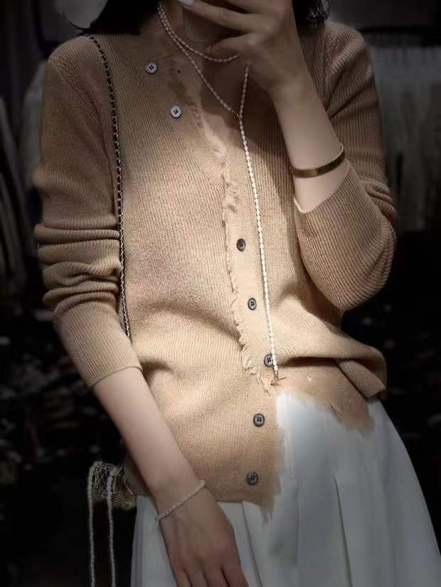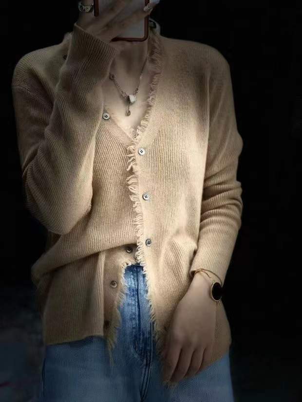 Cárdigan de cuello en V para mujer, estilo europeo, primavera y otoño, fino y suelto, de lana, con borlas, de punto, elegante, para abrigo