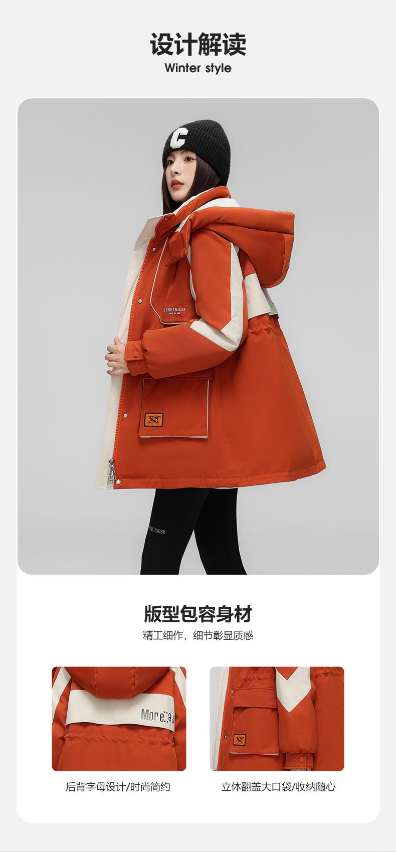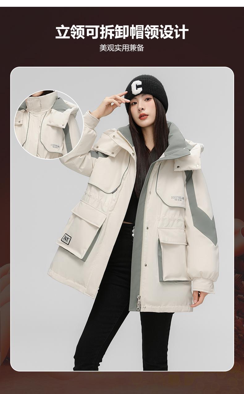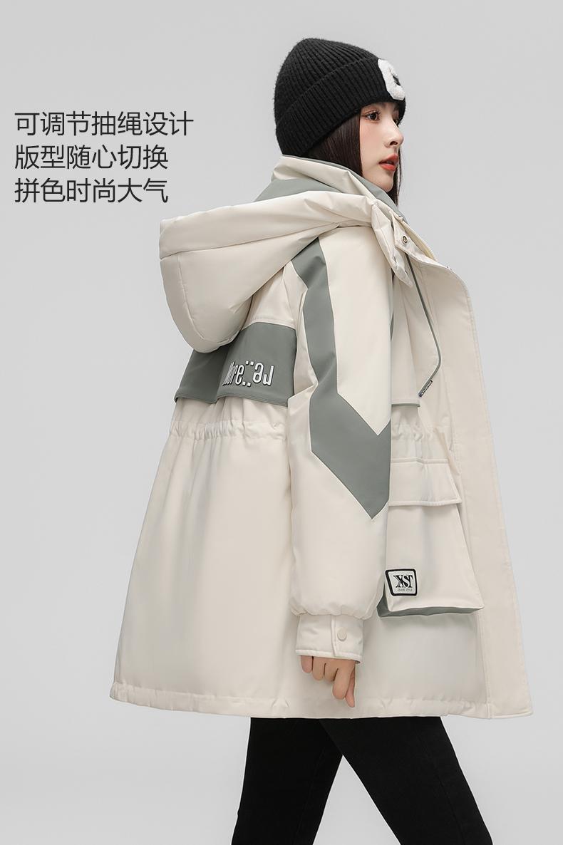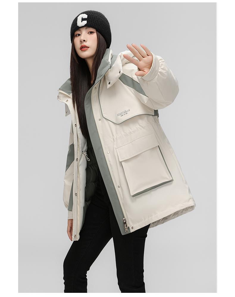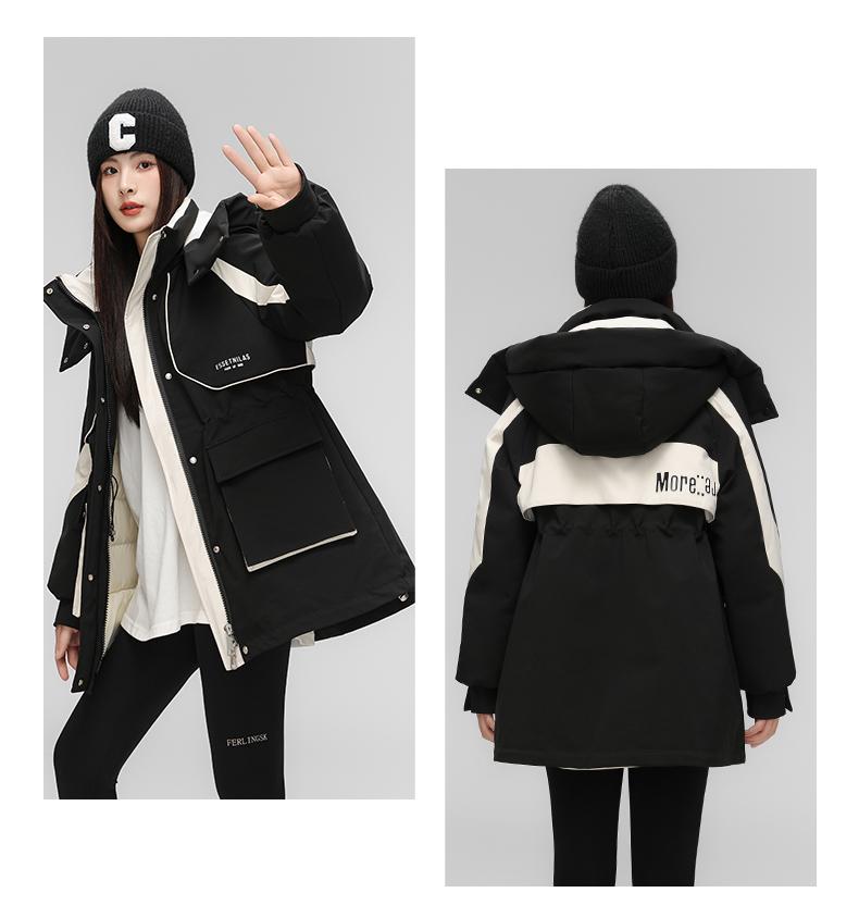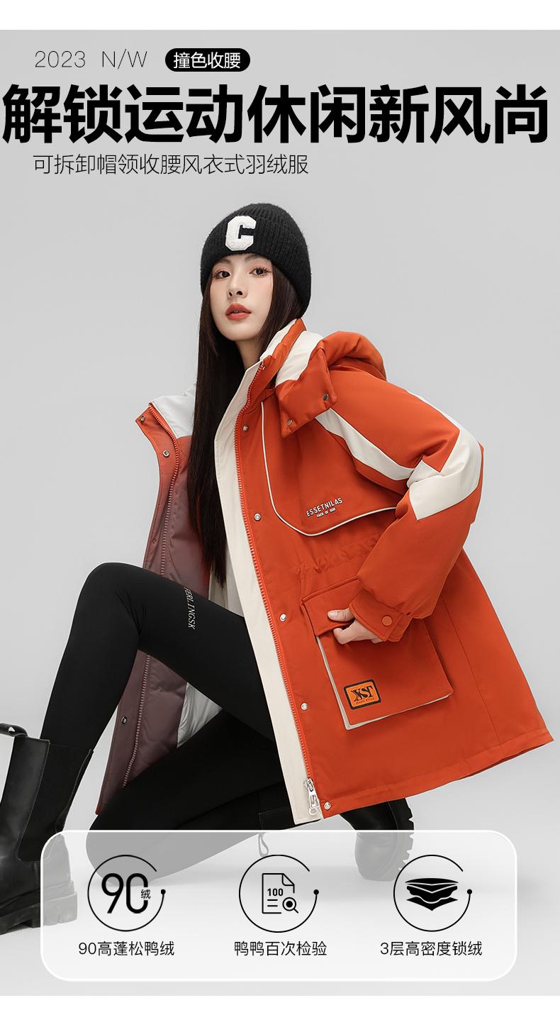 Chaqueta de plumón de pato para mujer 2024 Otoño e Invierno Nuevo Largo Medio Cintura con Cordón Capucha Cuello Desmontable Chaqueta de Moda J