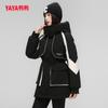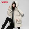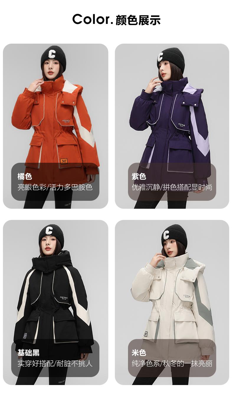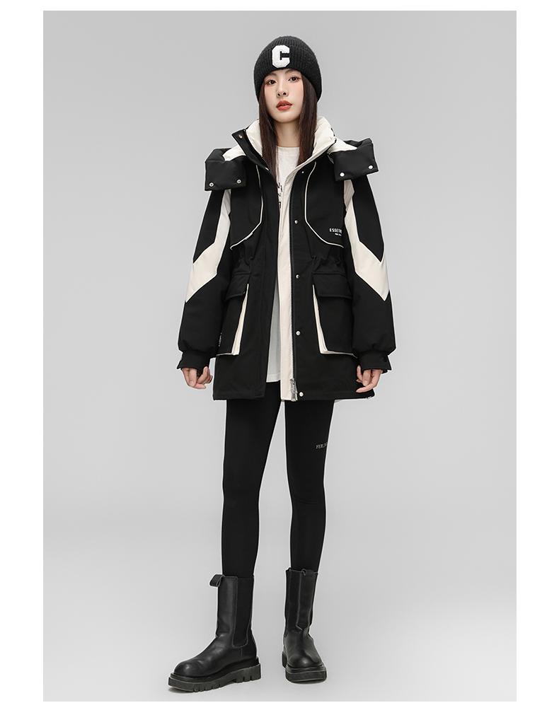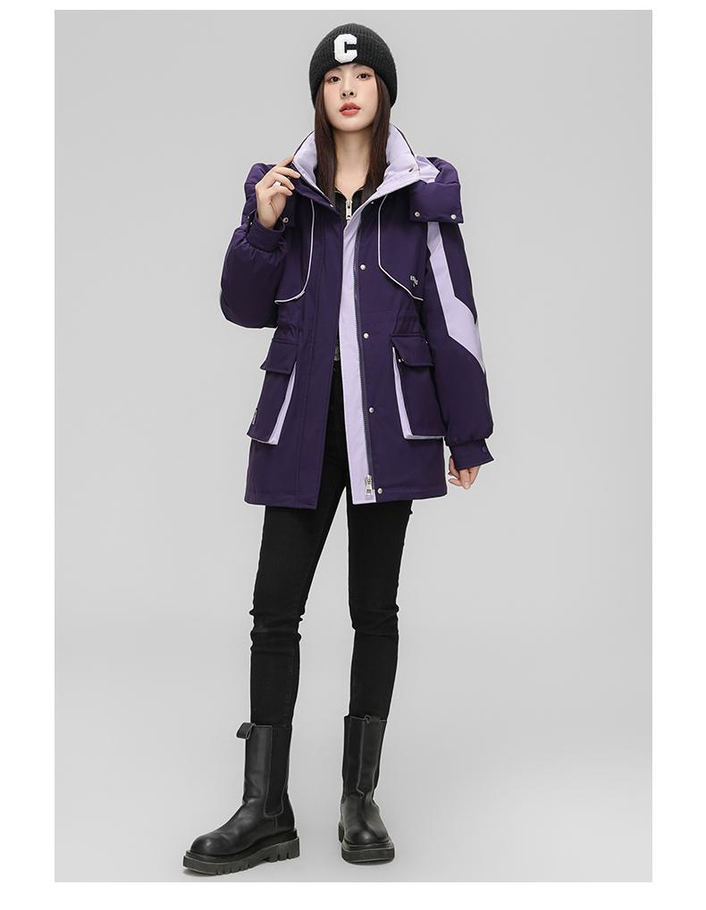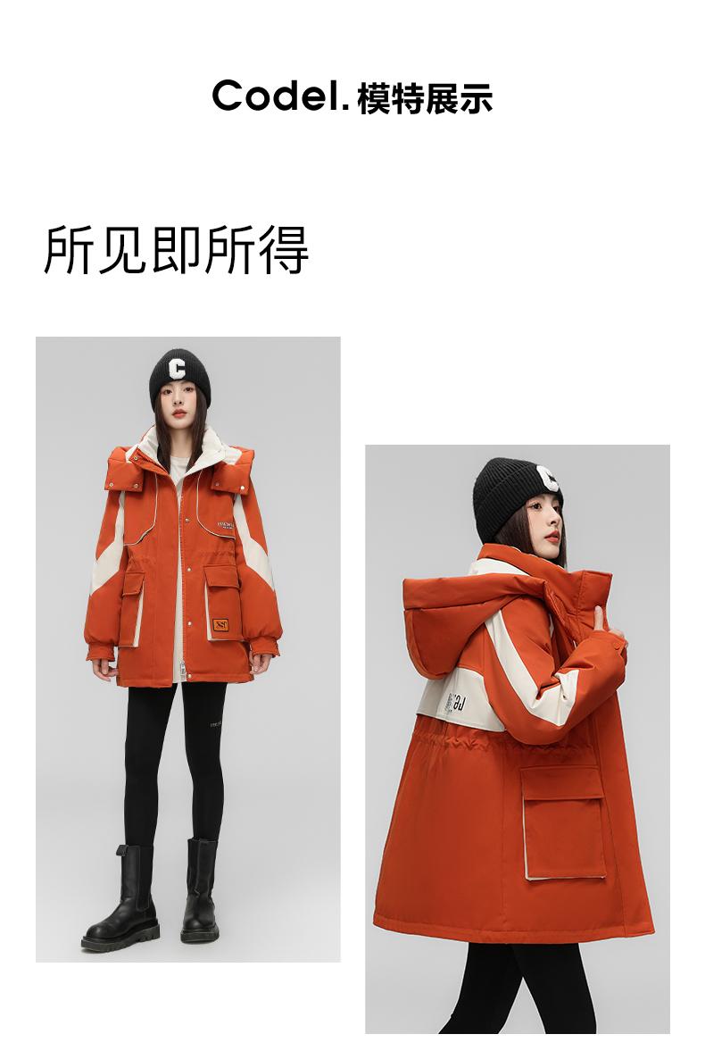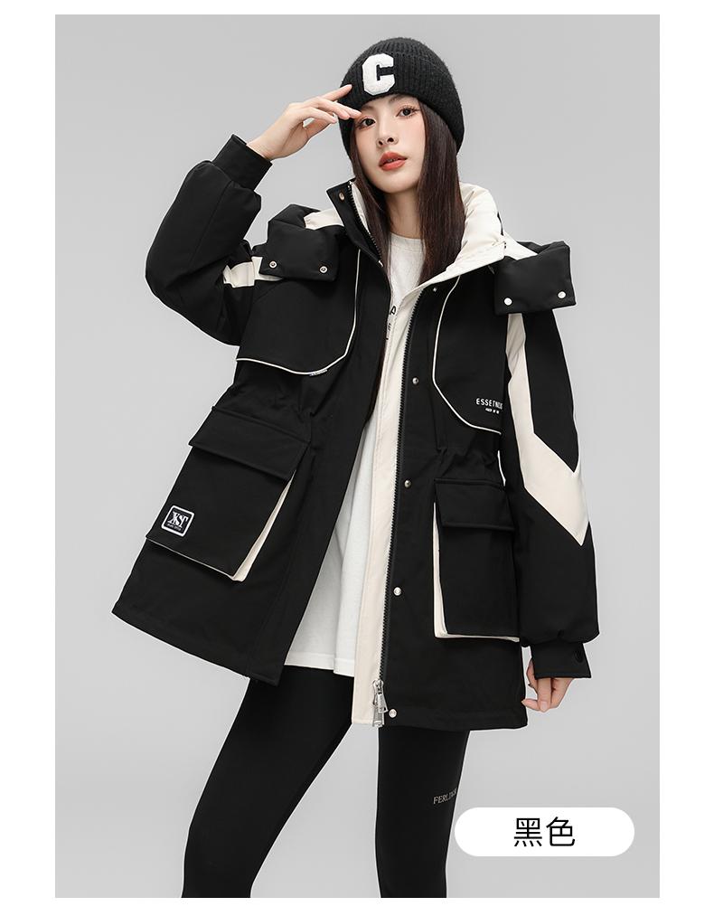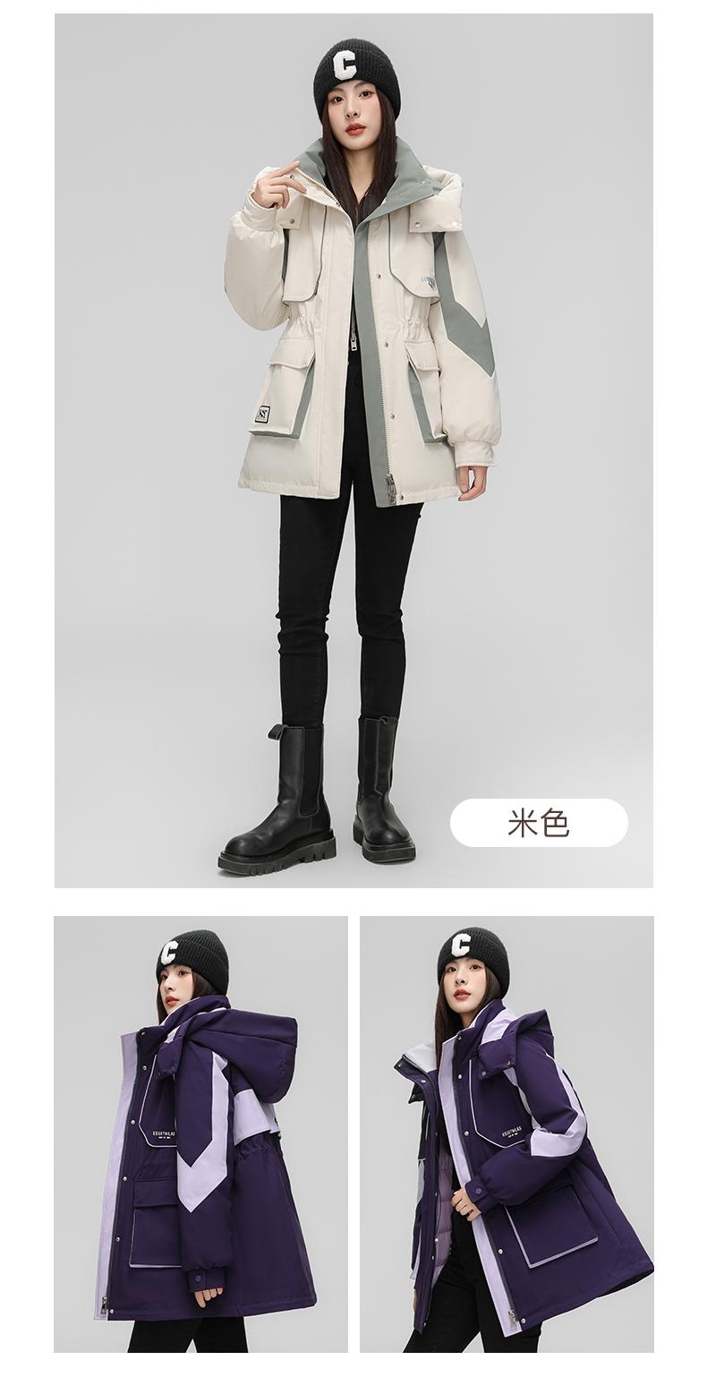 Chaqueta de plumón de pato para mujer 2024 Otoño e Invierno Nuevo Largo Medio Cintura con Cordón Capucha Cuello Desmontable Chaqueta de Moda J