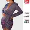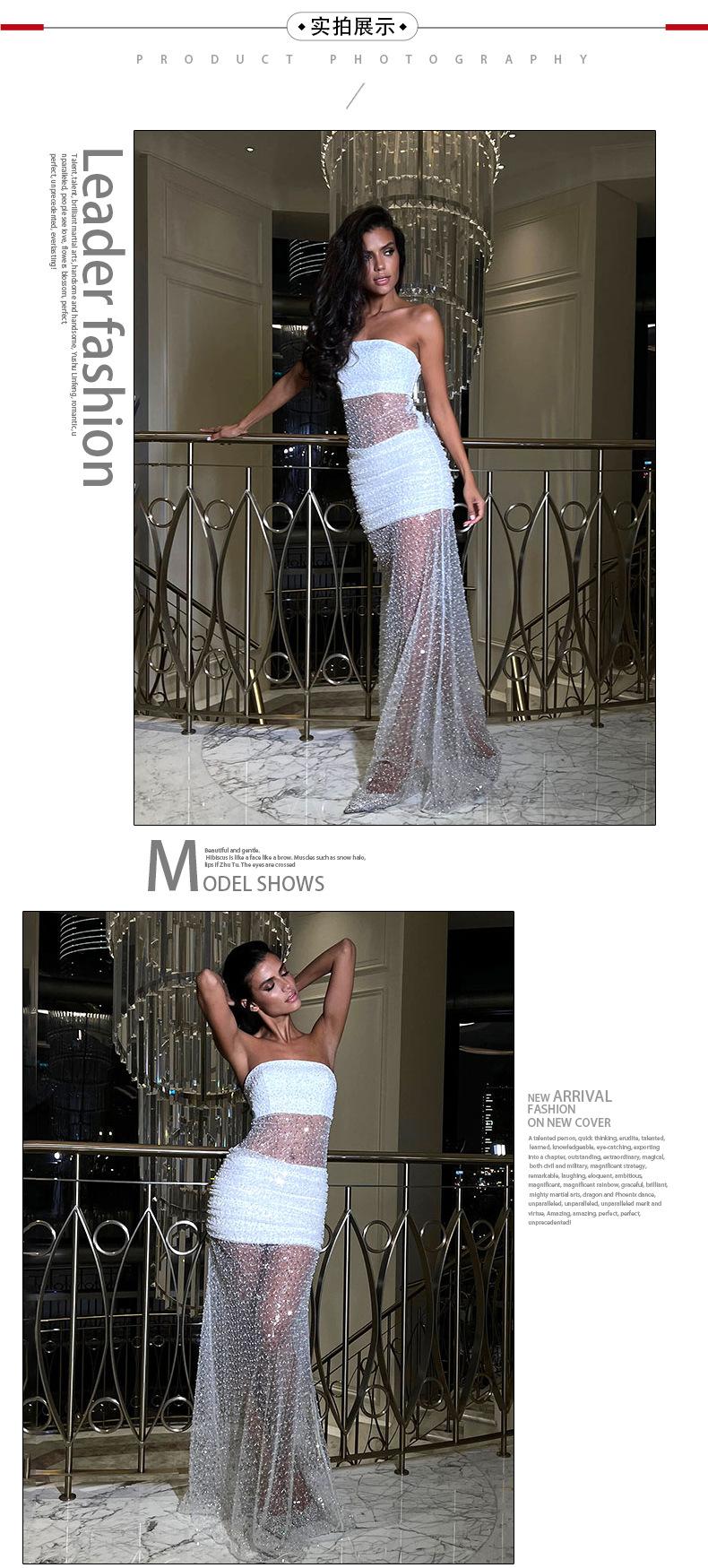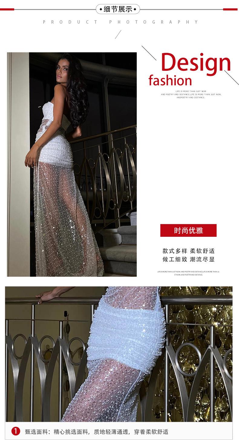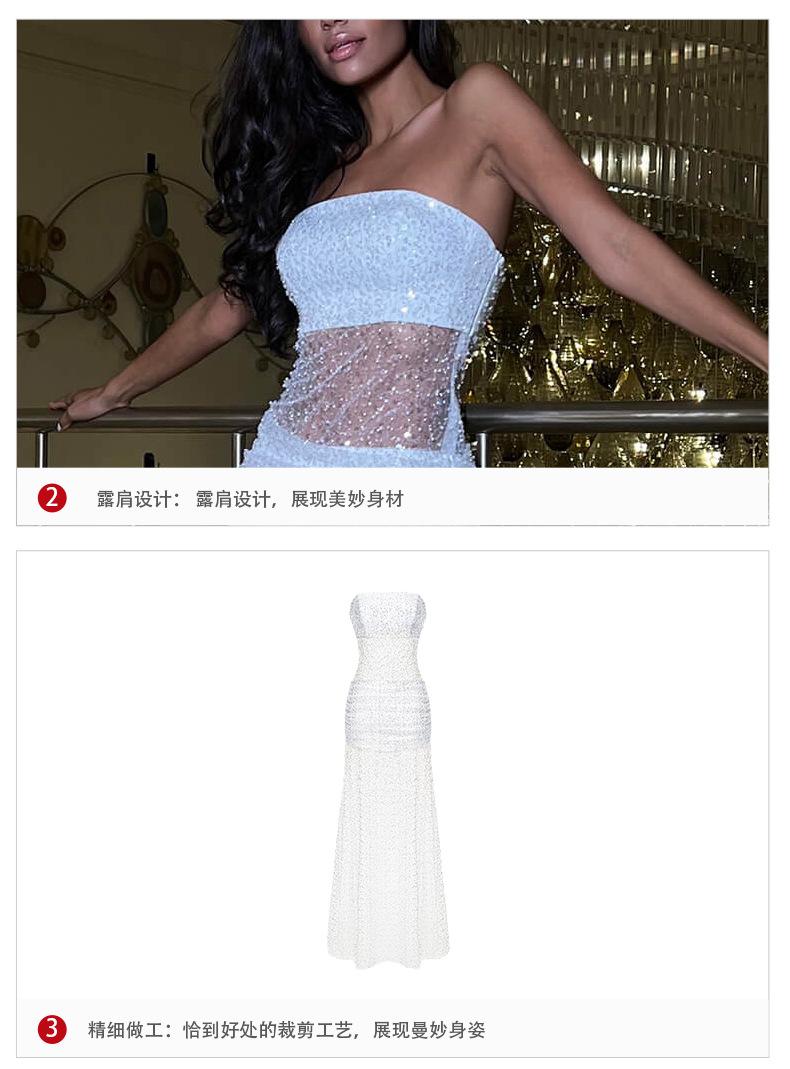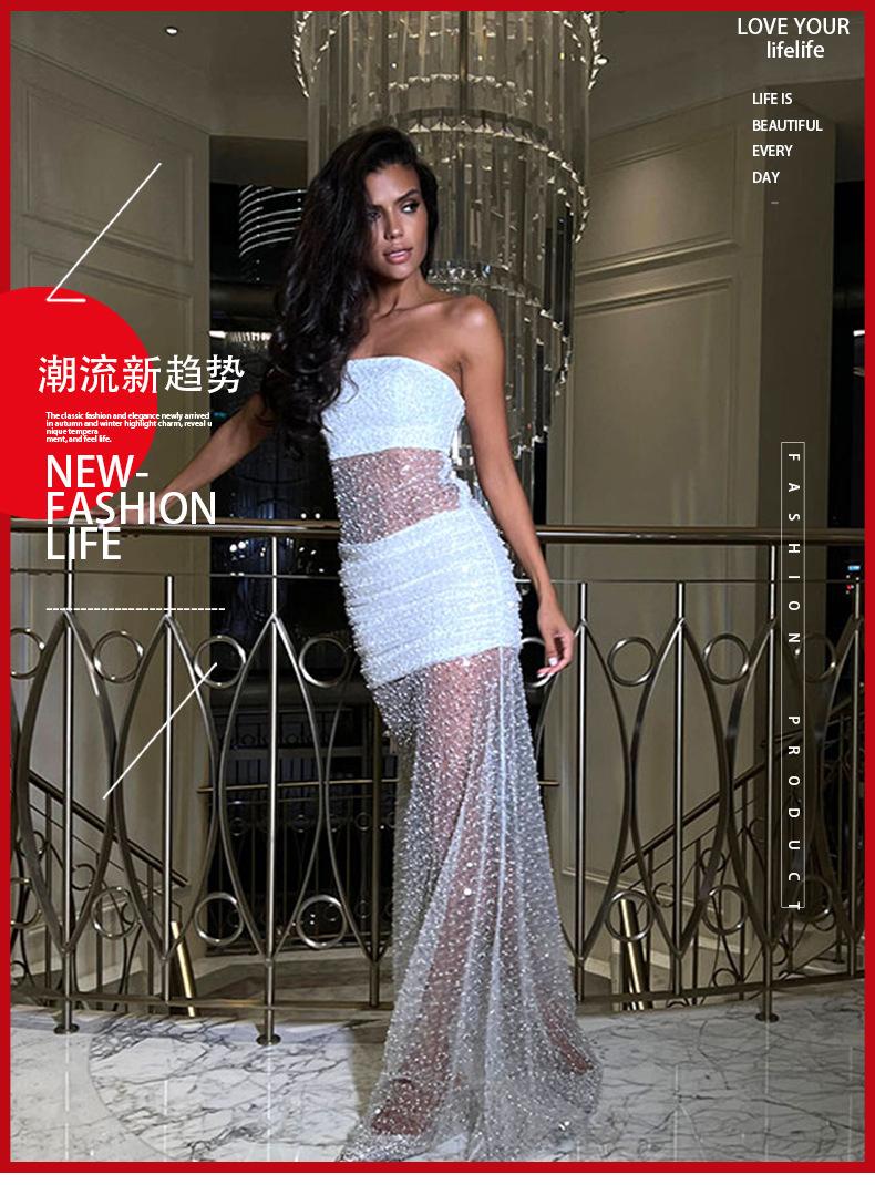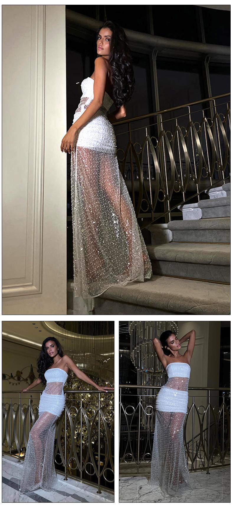 Vestido Sexy con Lentejuelas de Moda Transfronteriza, Elegante Top de Tubo con Cuello de un Hombro Falda Larga, Vestido Adelgazante de Cintura Alta