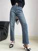 Compra Mengzi chic retro azul pequeño recto jeans mujer primavera y otoño 2023 cintura alta adelgazamiento pantalones de tubo recortados X1600 al por mayor en Joom.pro