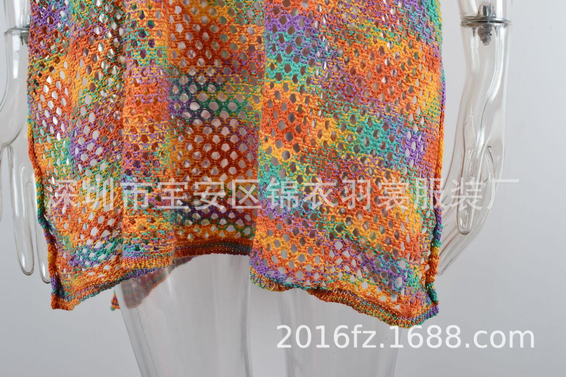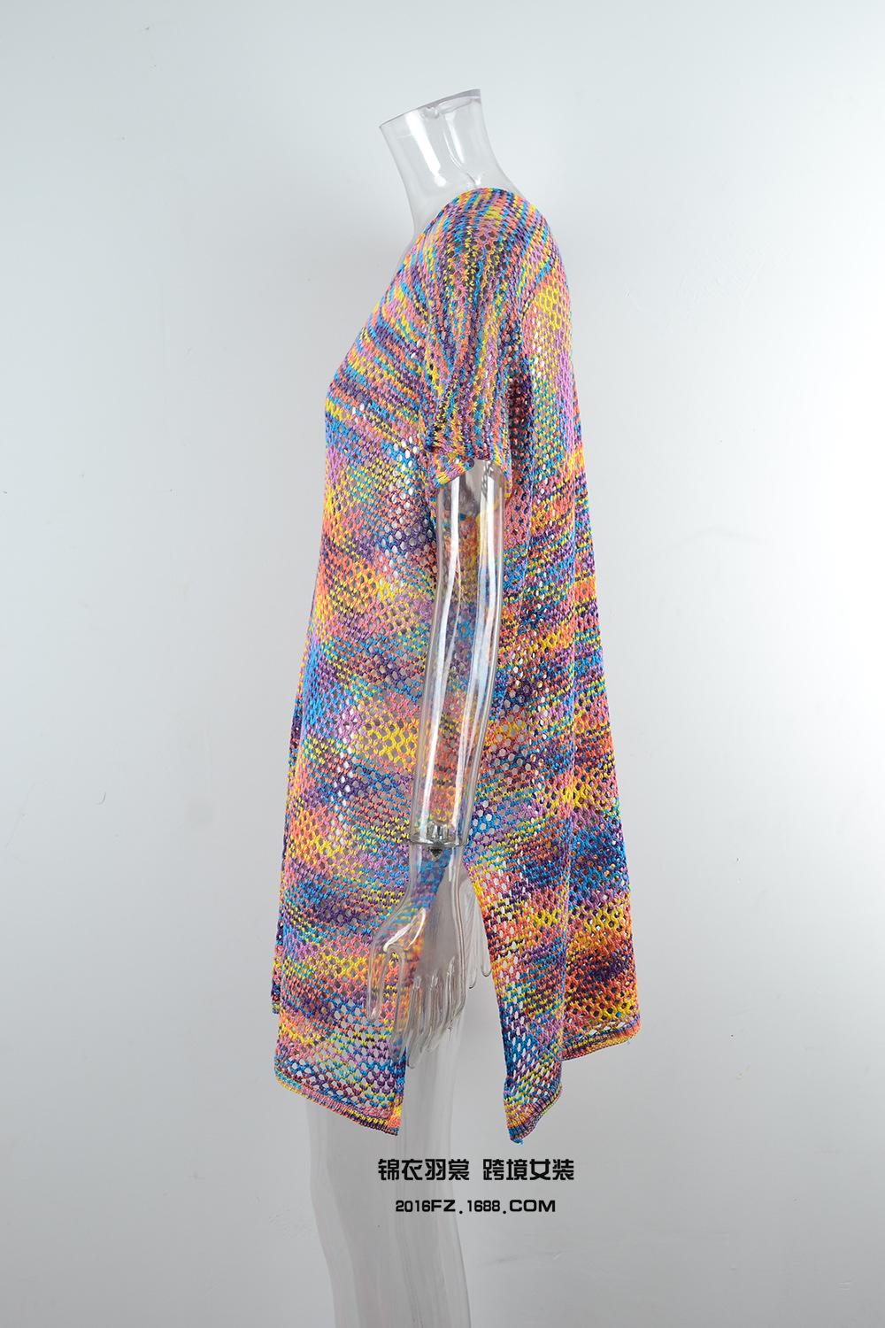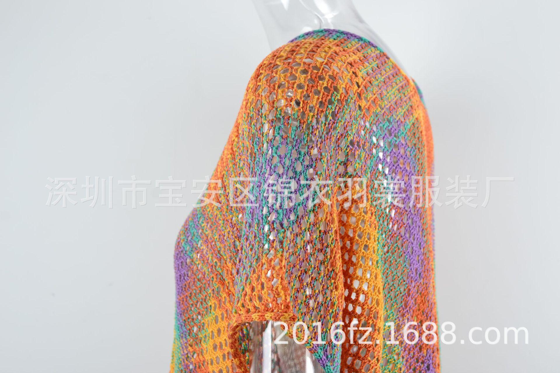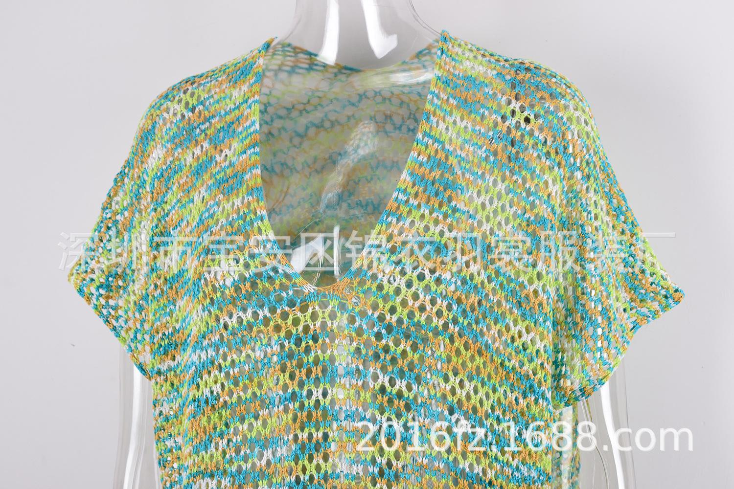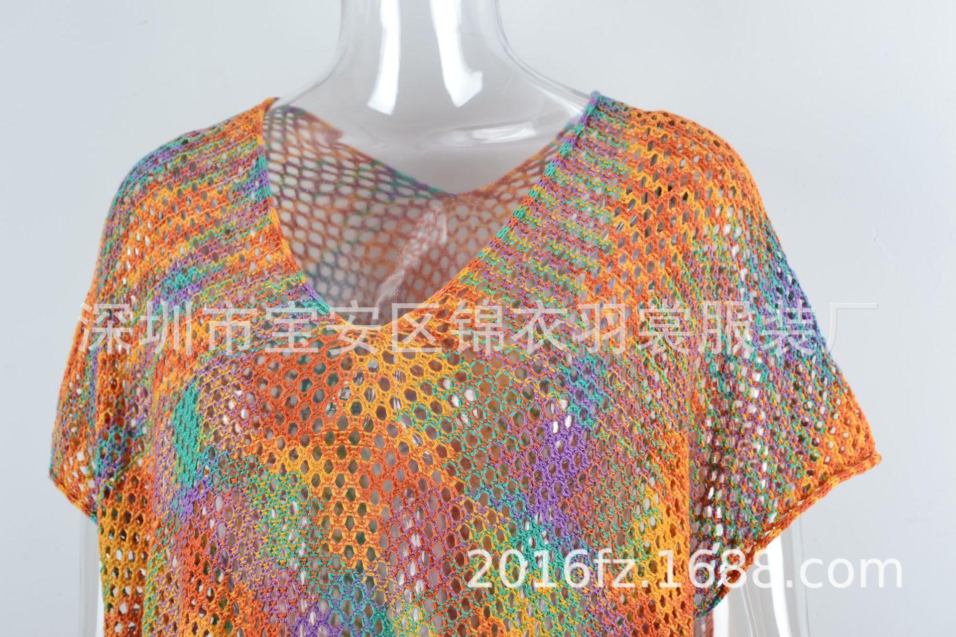 Blusa de Exportación Europea y Americana de Amazon 2025 Verano Costuras Arcoíris Recorte Suelto Camisa de Playa Bikini Tejido de Punto