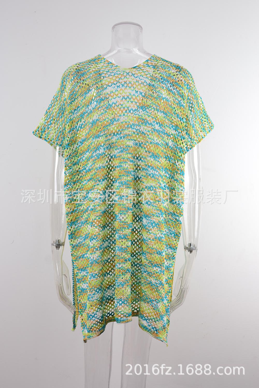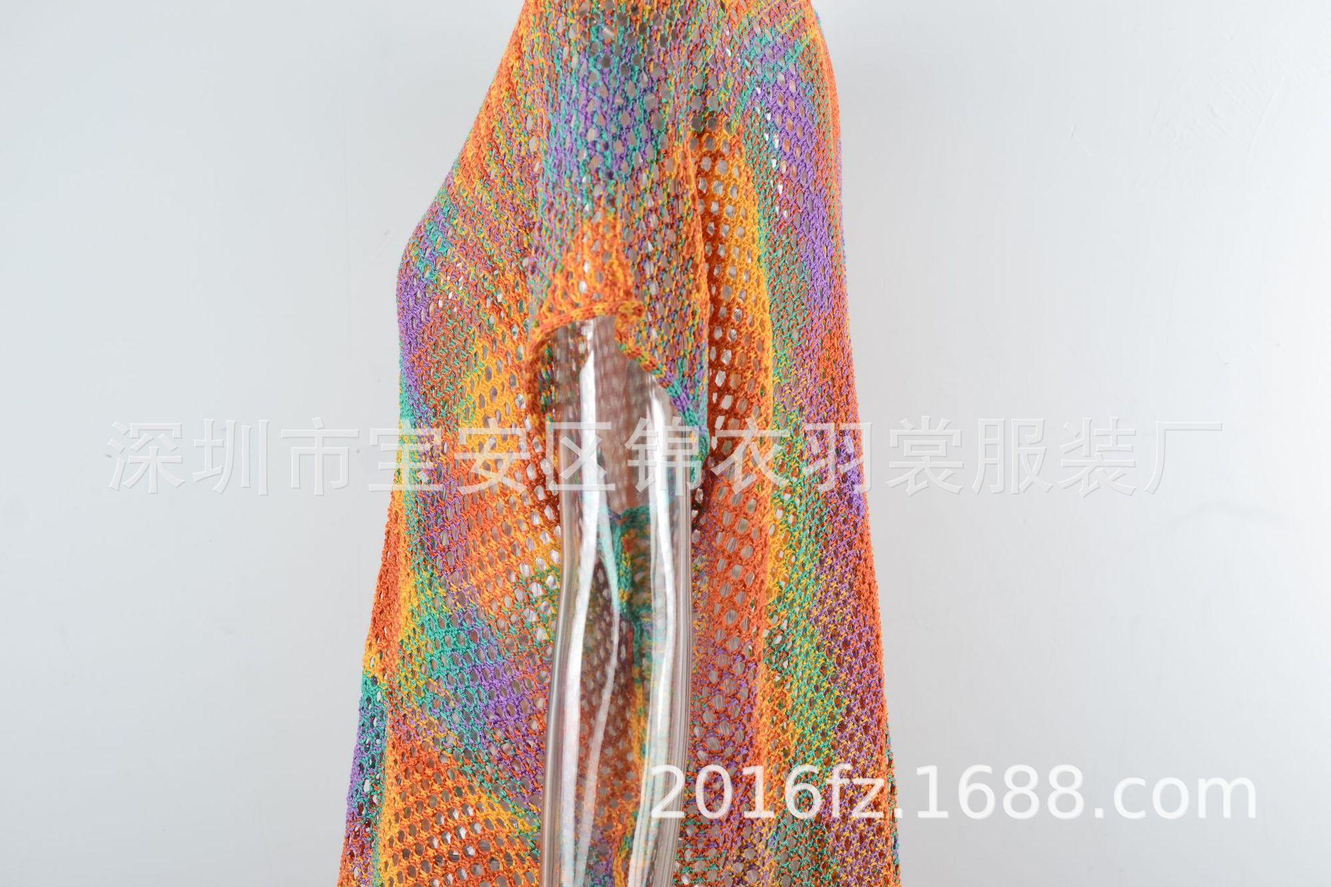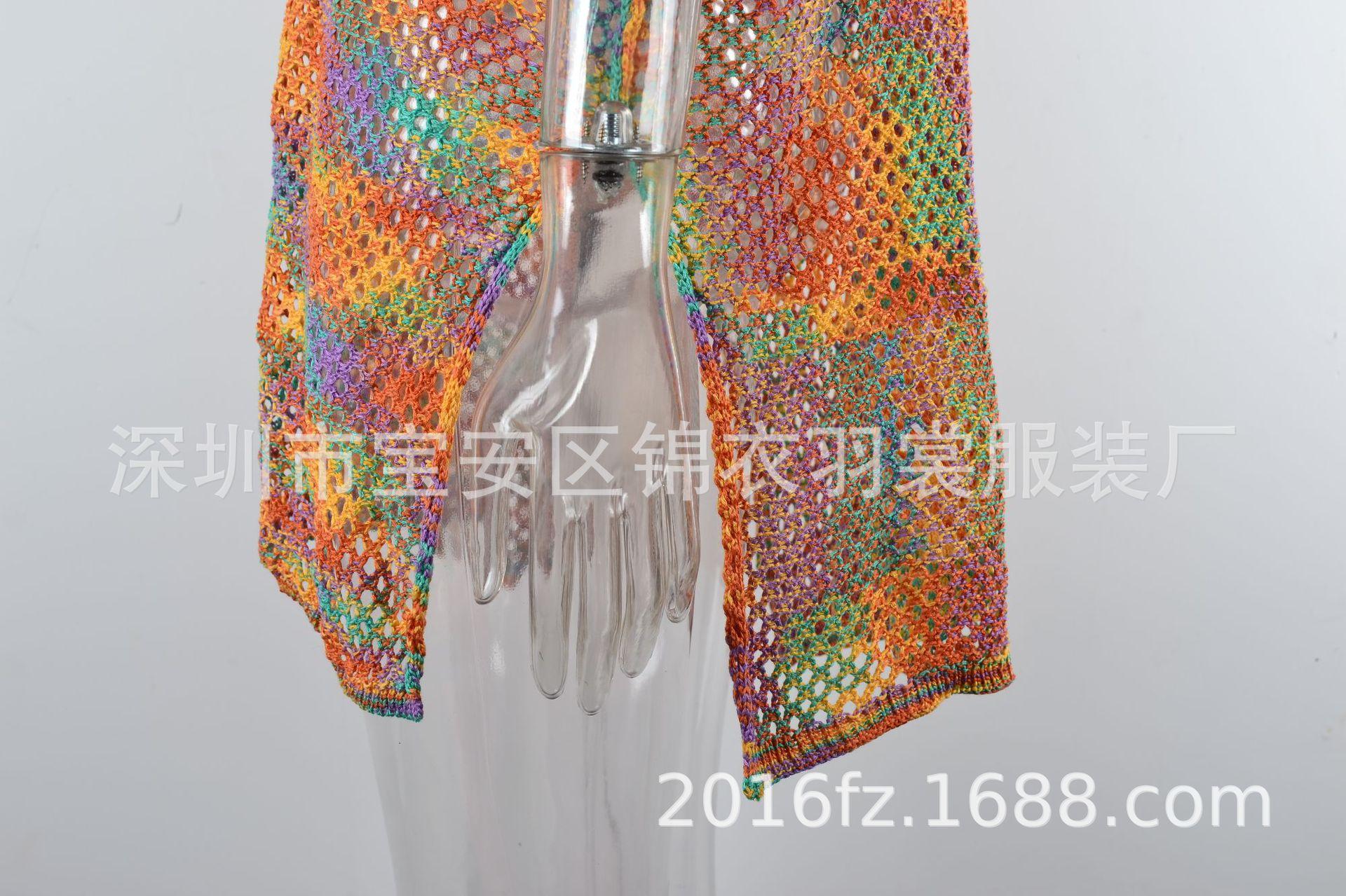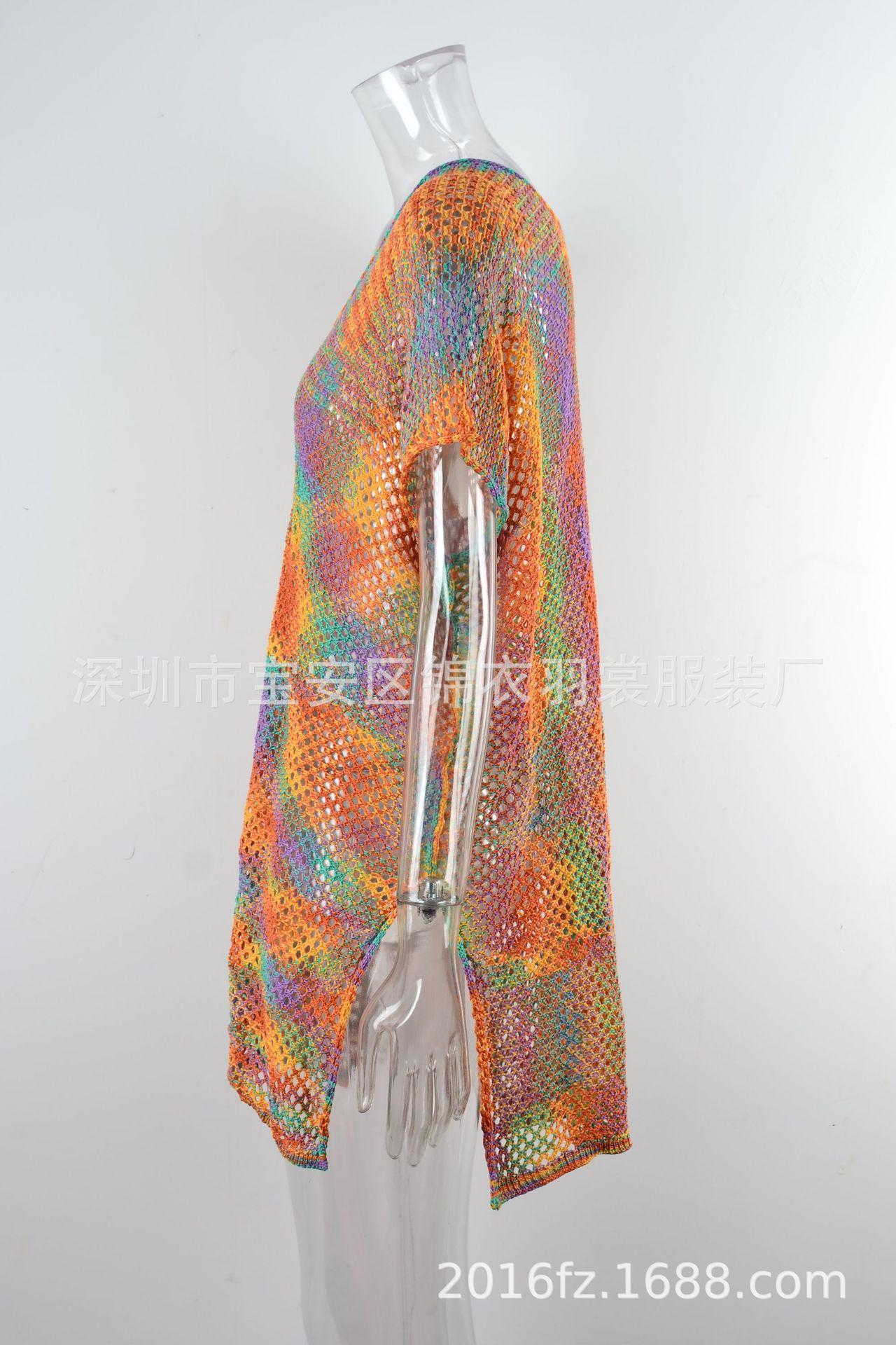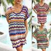 Blusa de Exportación Europea y Americana de Amazon 2025 Verano Costuras Arcoíris Recorte Suelto Camisa de Playa Bikini Tejido de Punto