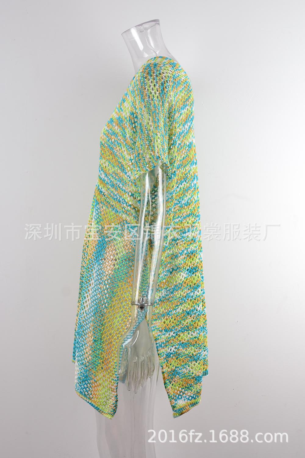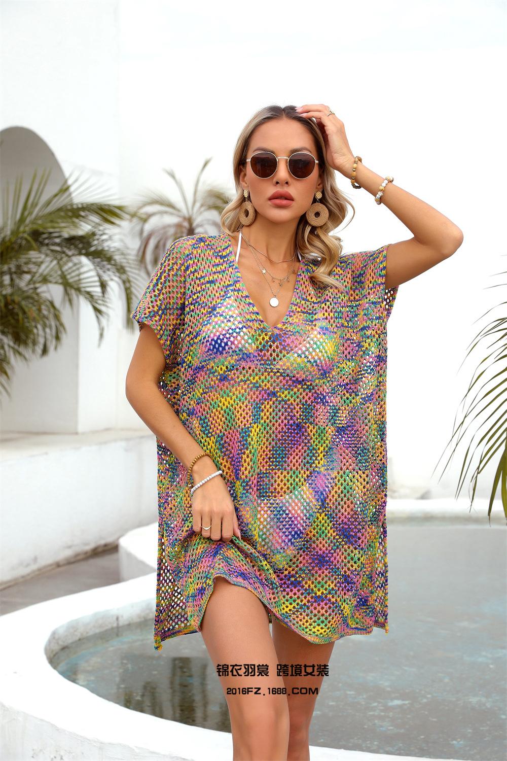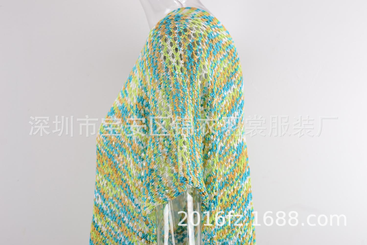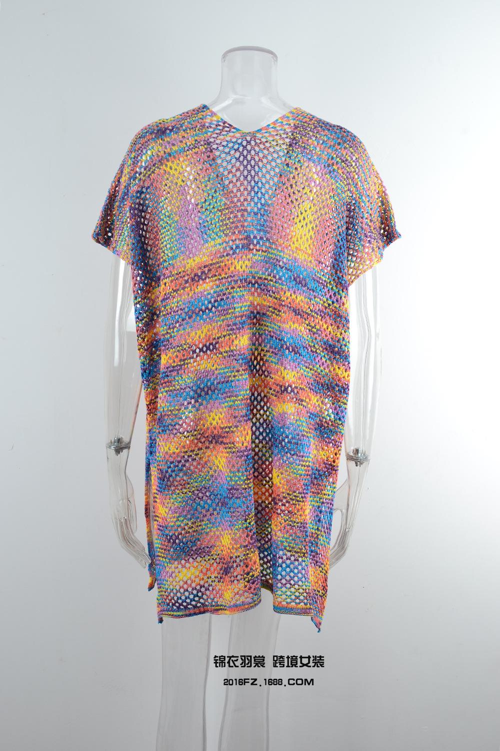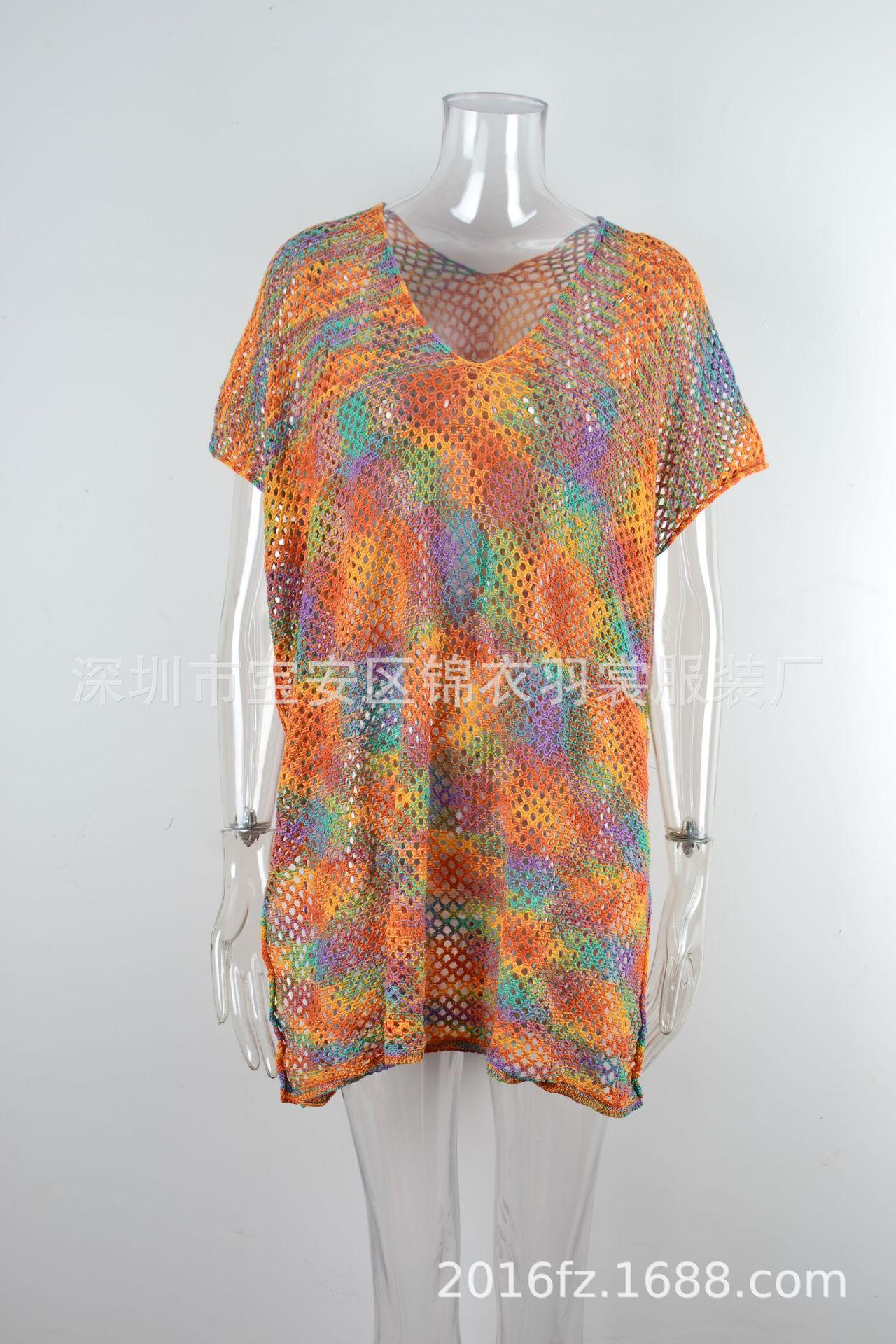 Blusa de Exportación Europea y Americana de Amazon 2025 Verano Costuras Arcoíris Recorte Suelto Camisa de Playa Bikini Tejido de Punto