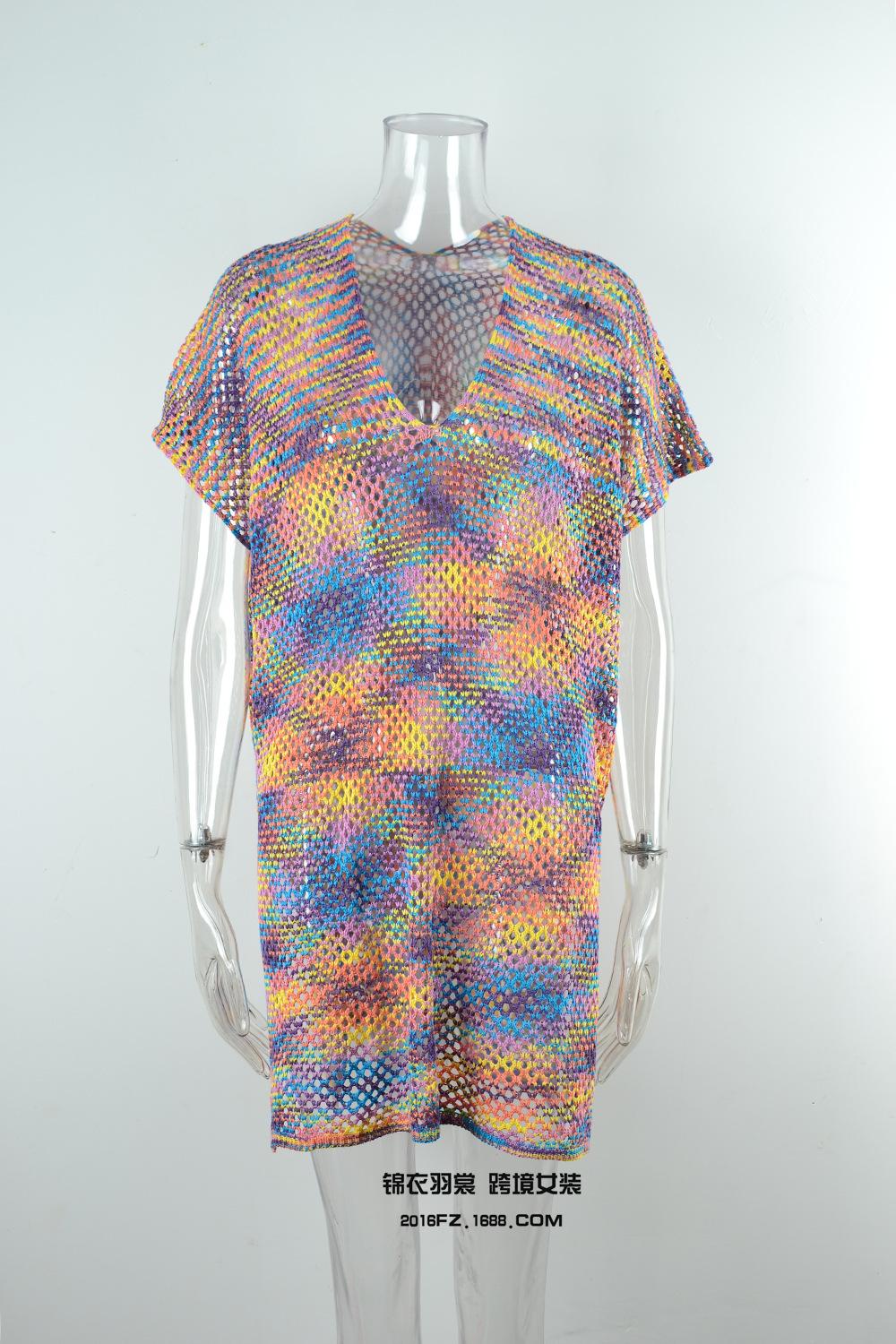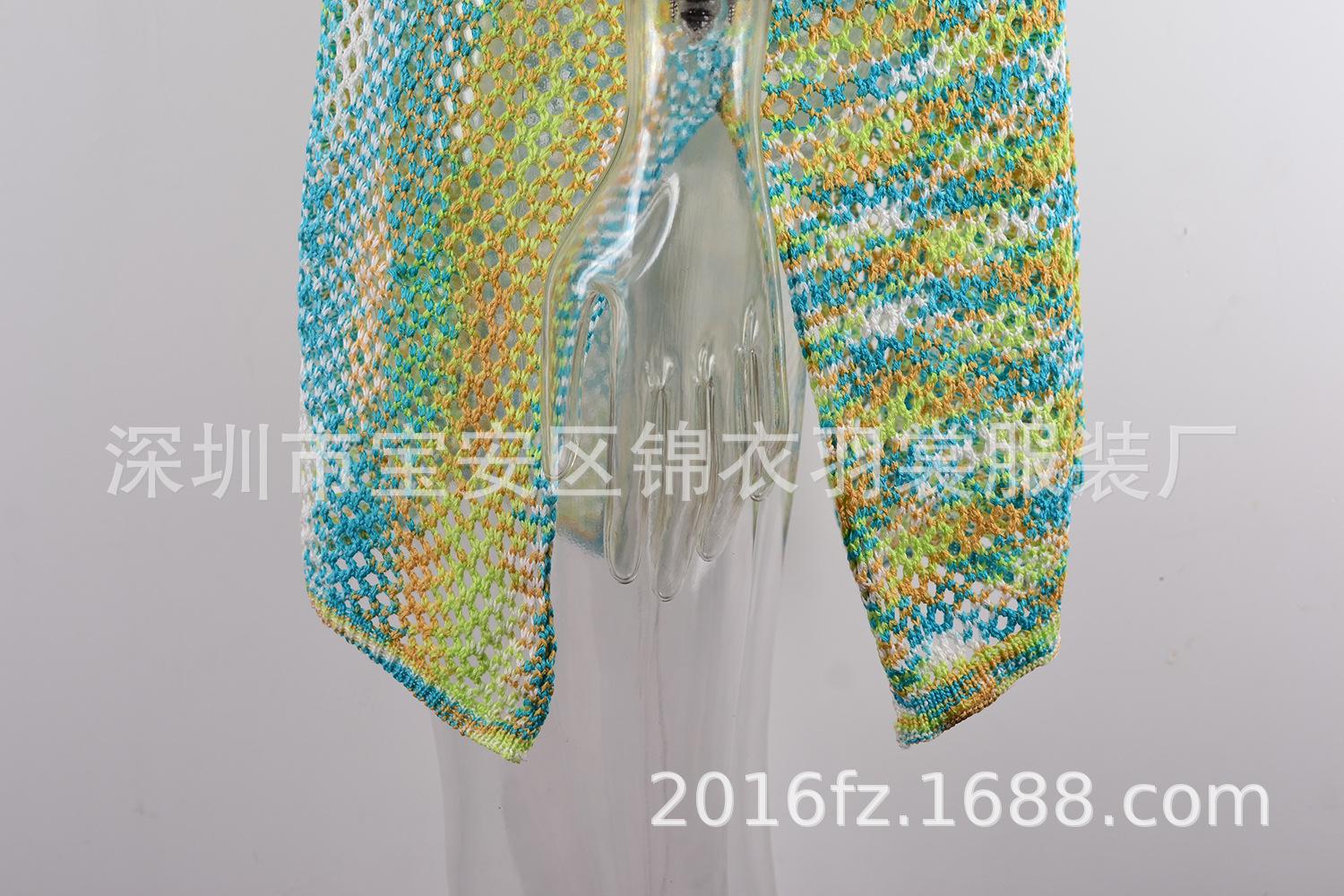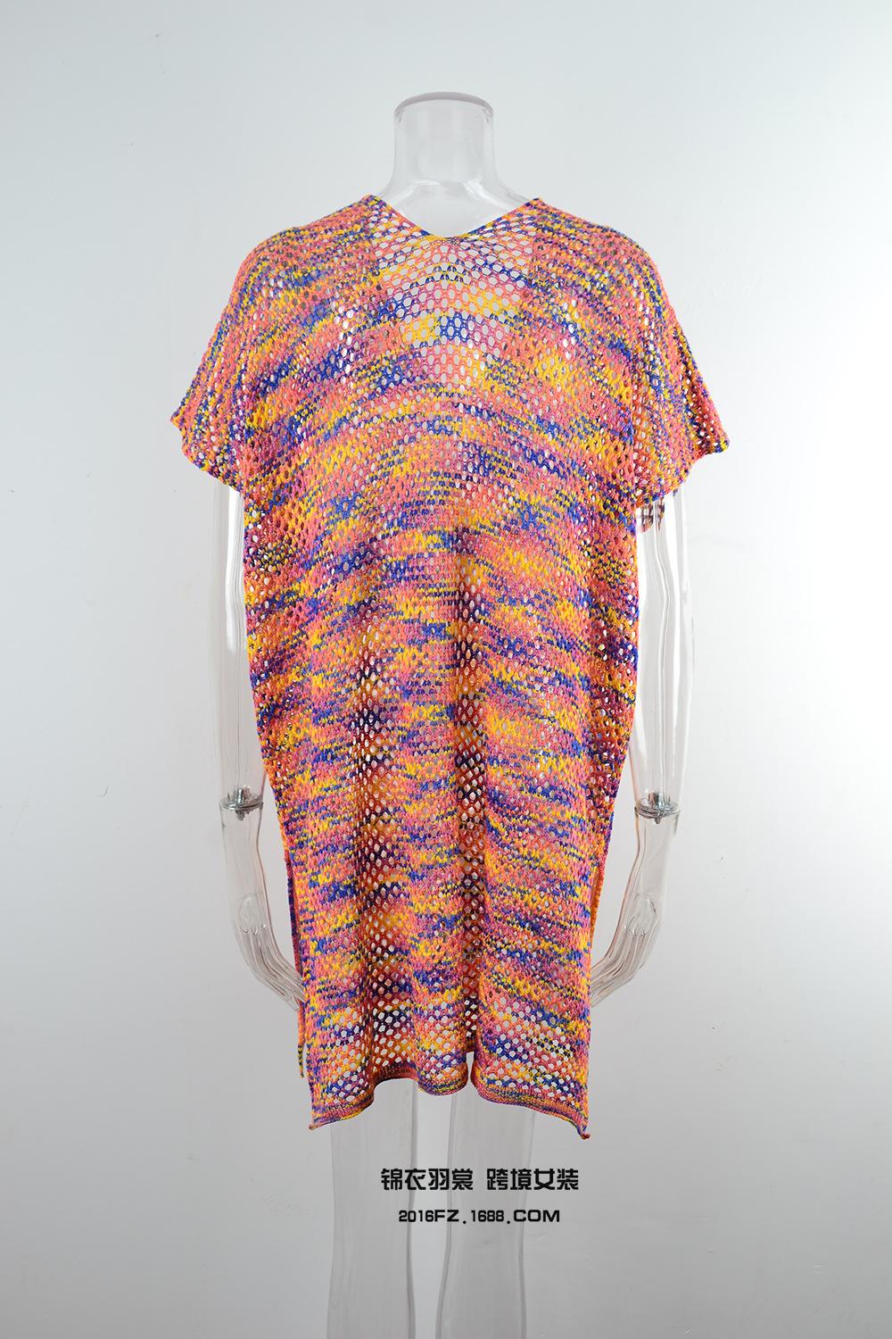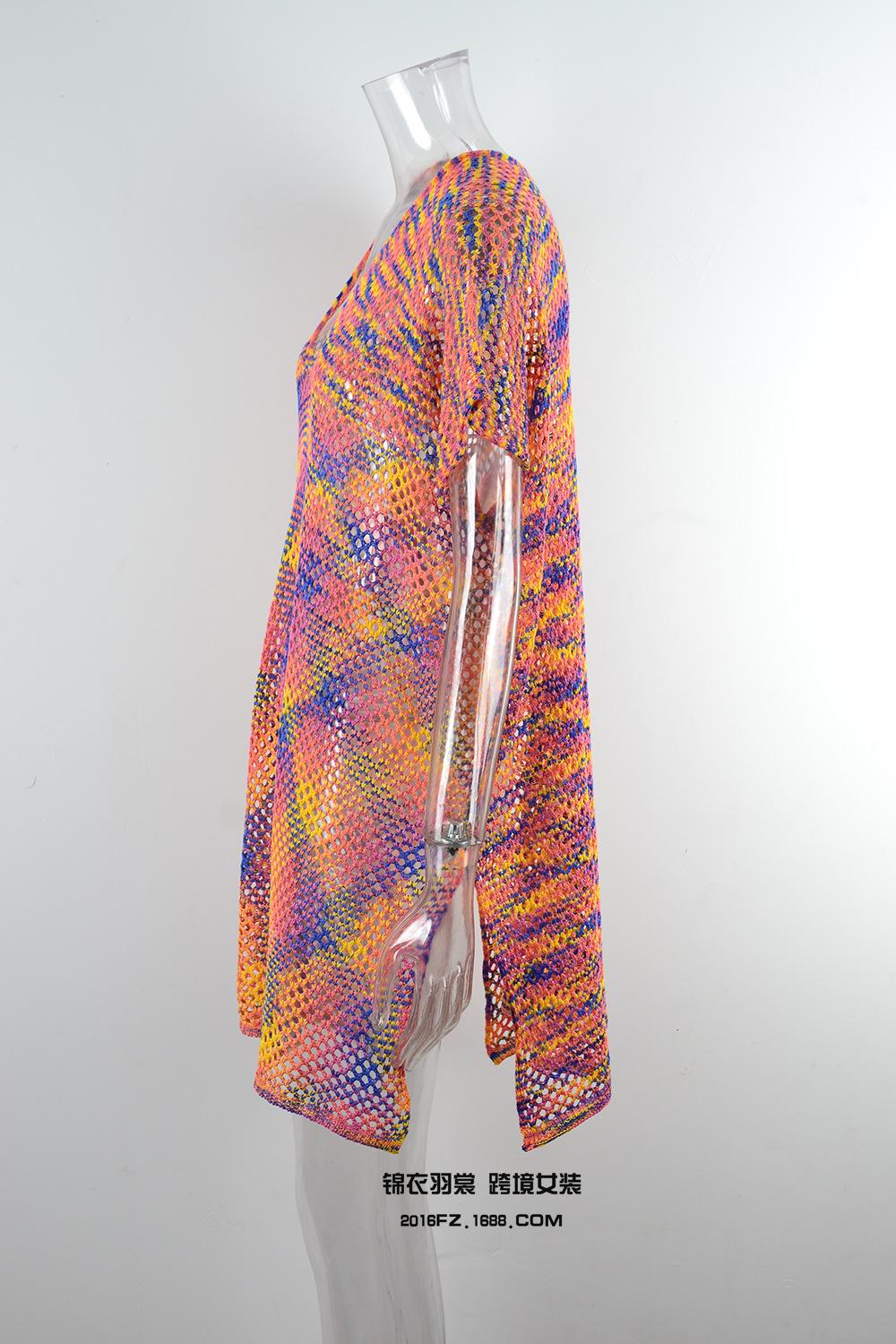 Blusa de Exportación Europea y Americana de Amazon 2025 Verano Costuras Arcoíris Recorte Suelto Camisa de Playa Bikini Tejido de Punto
