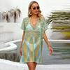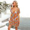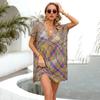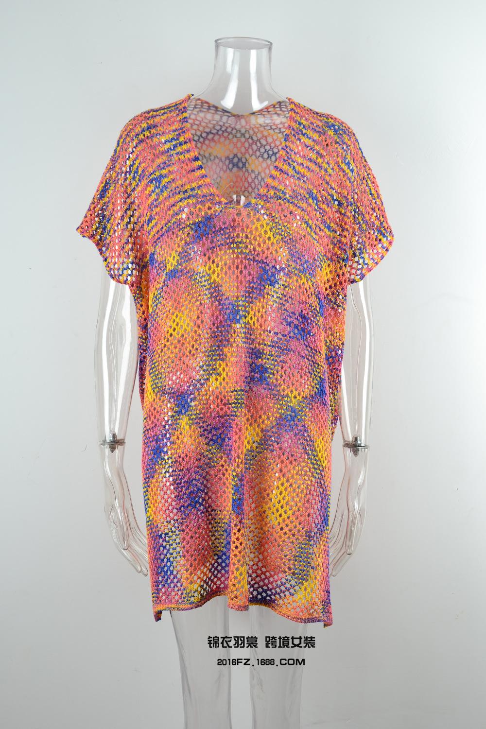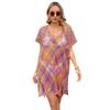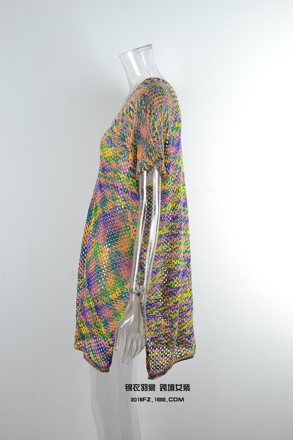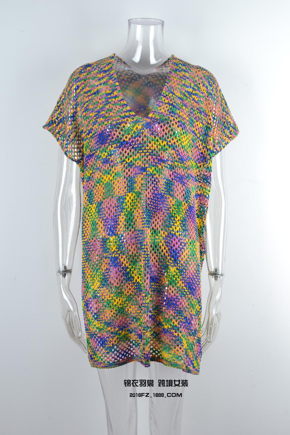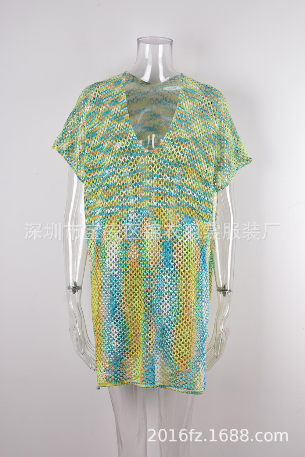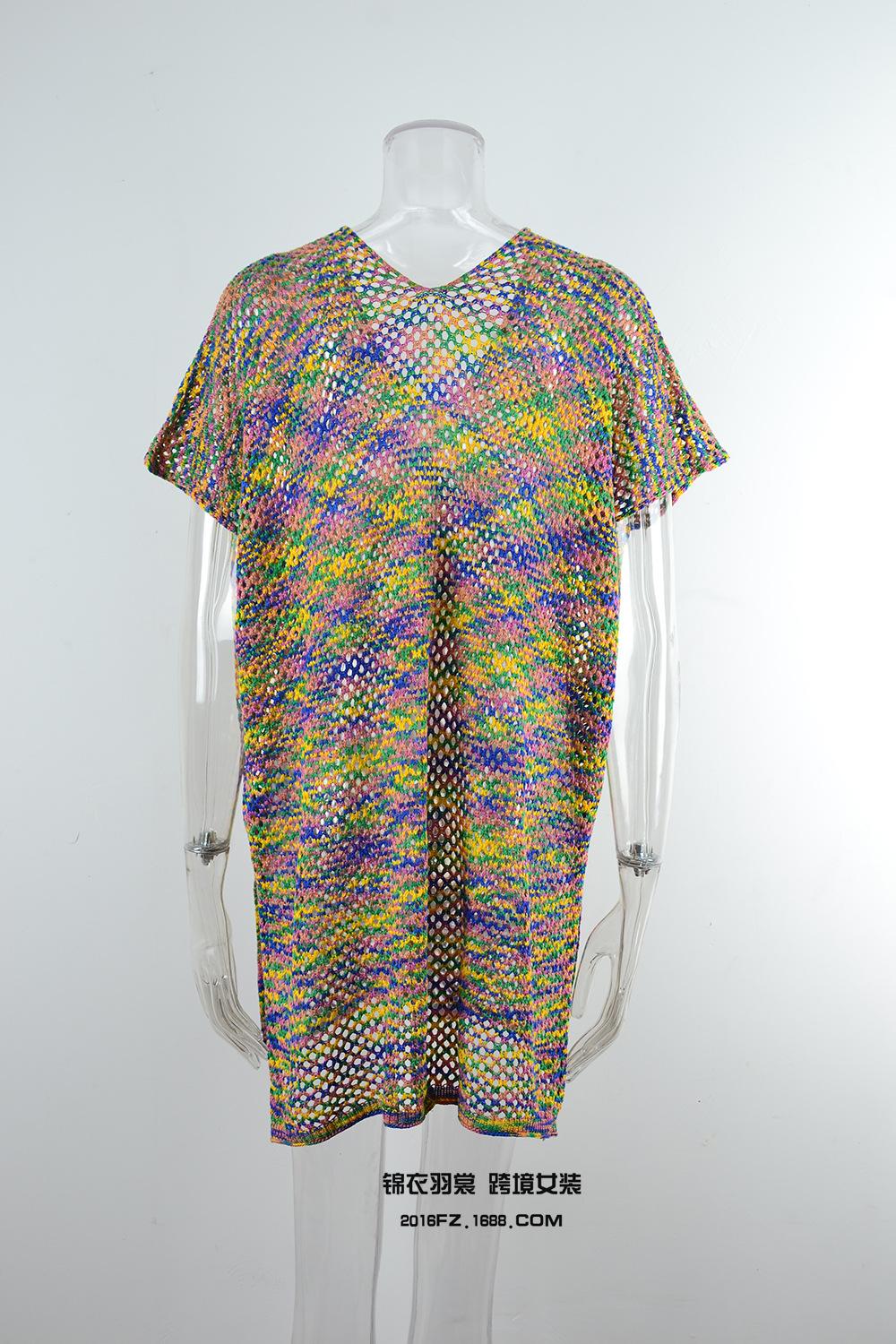 Blusa de Exportación Europea y Americana de Amazon 2025 Verano Costuras Arcoíris Recorte Suelto Camisa de Playa Bikini Tejido de Punto