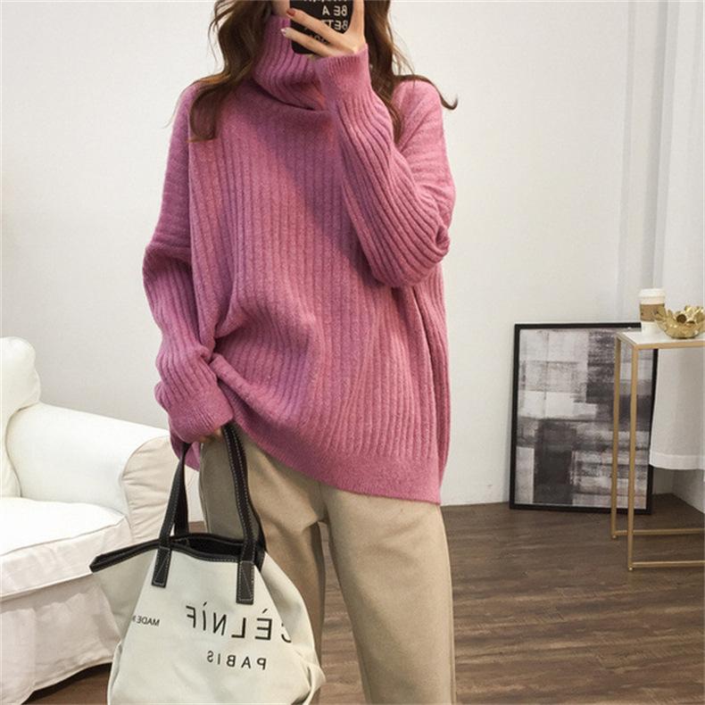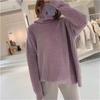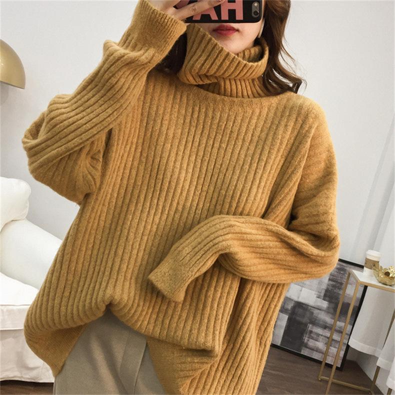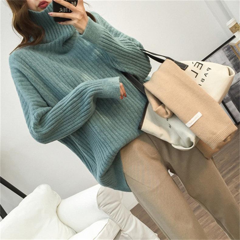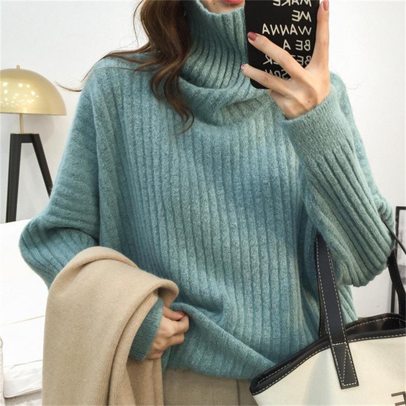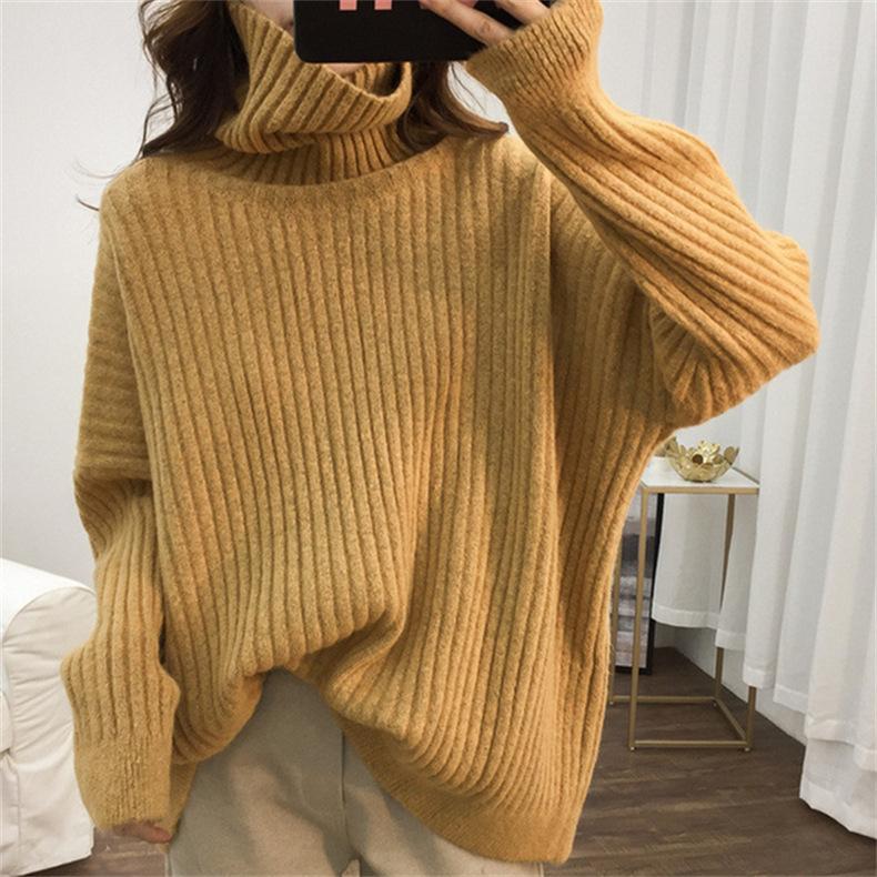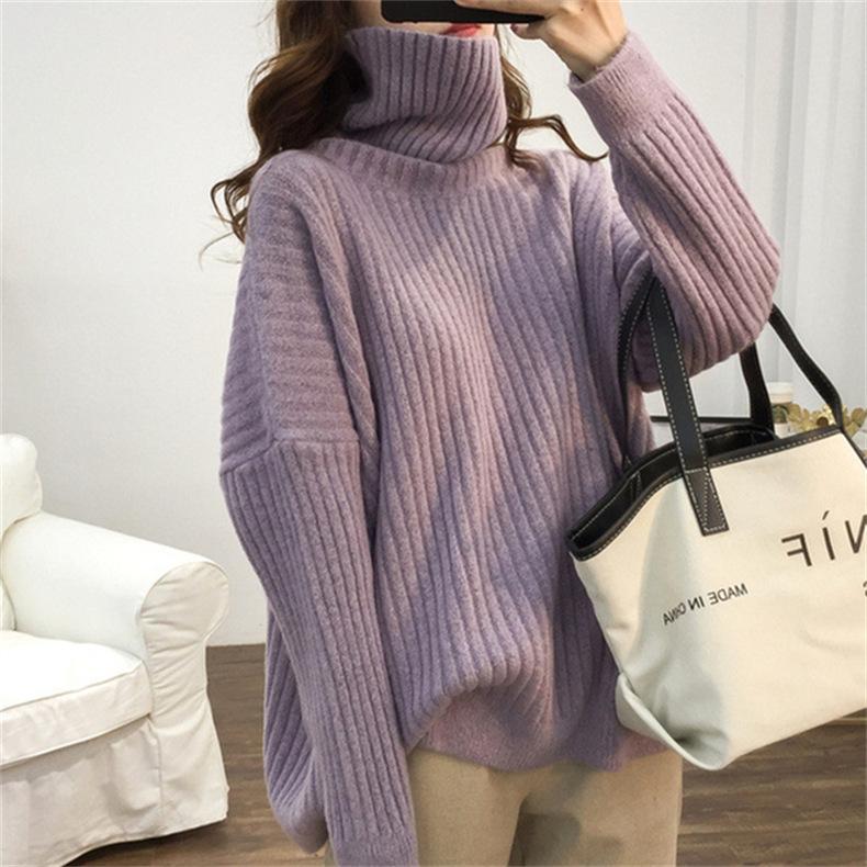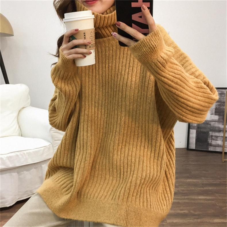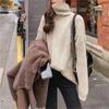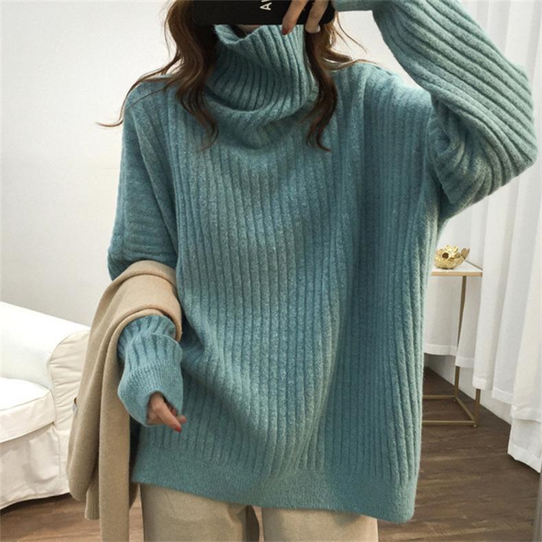 Suéter de Punto Otoño e Invierno Estilo Holgado Perezoso Top Ropa de Punto Interior de Manga Larga para Mujer Camiseta Básica de Punto de Cuello Alto para Mujer
