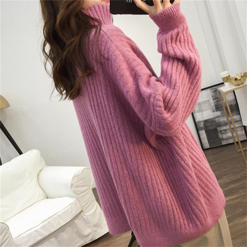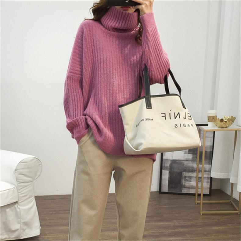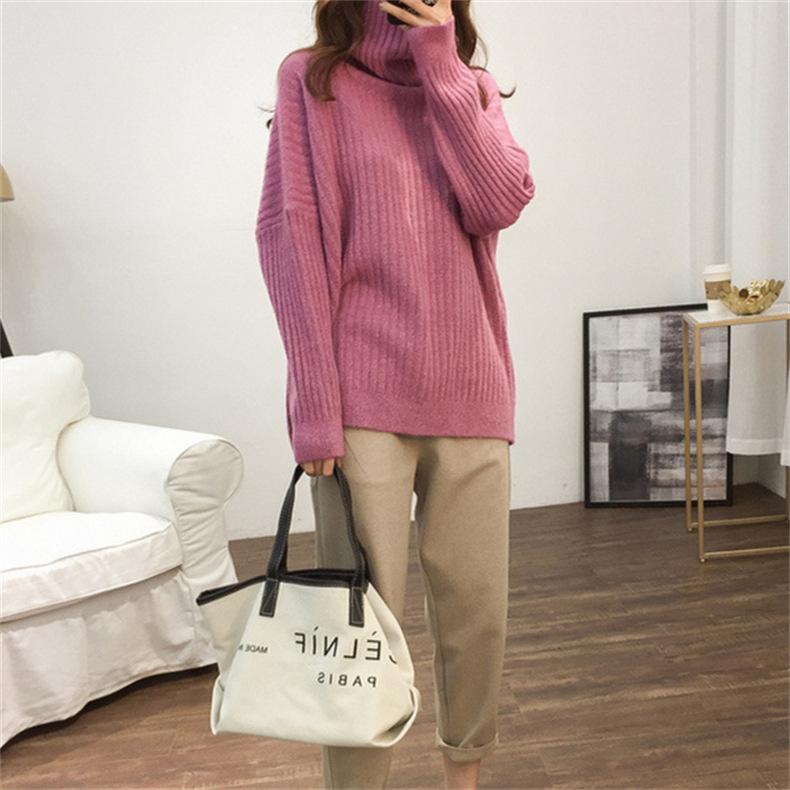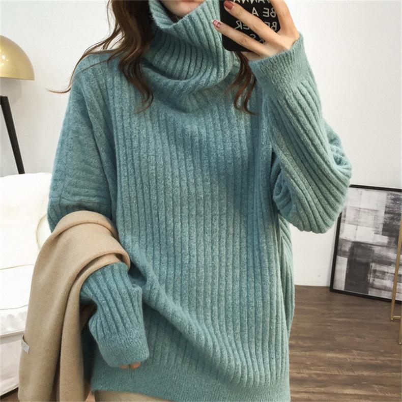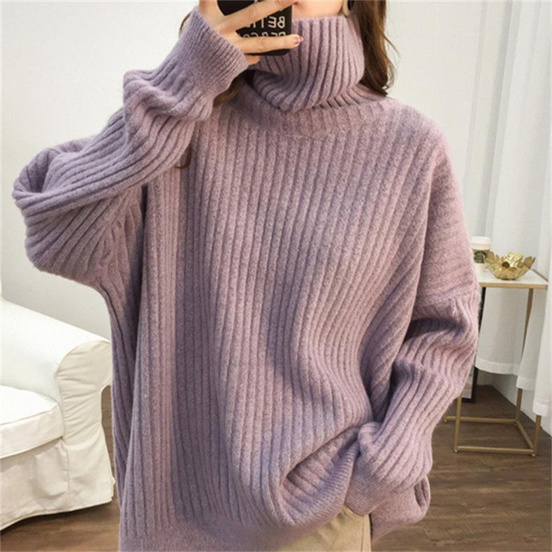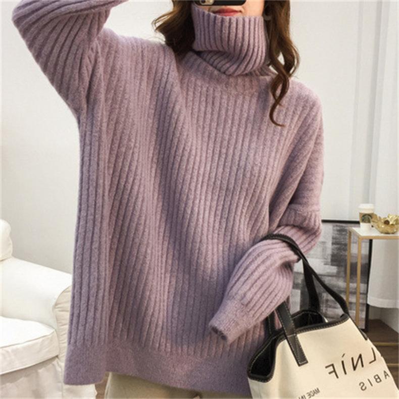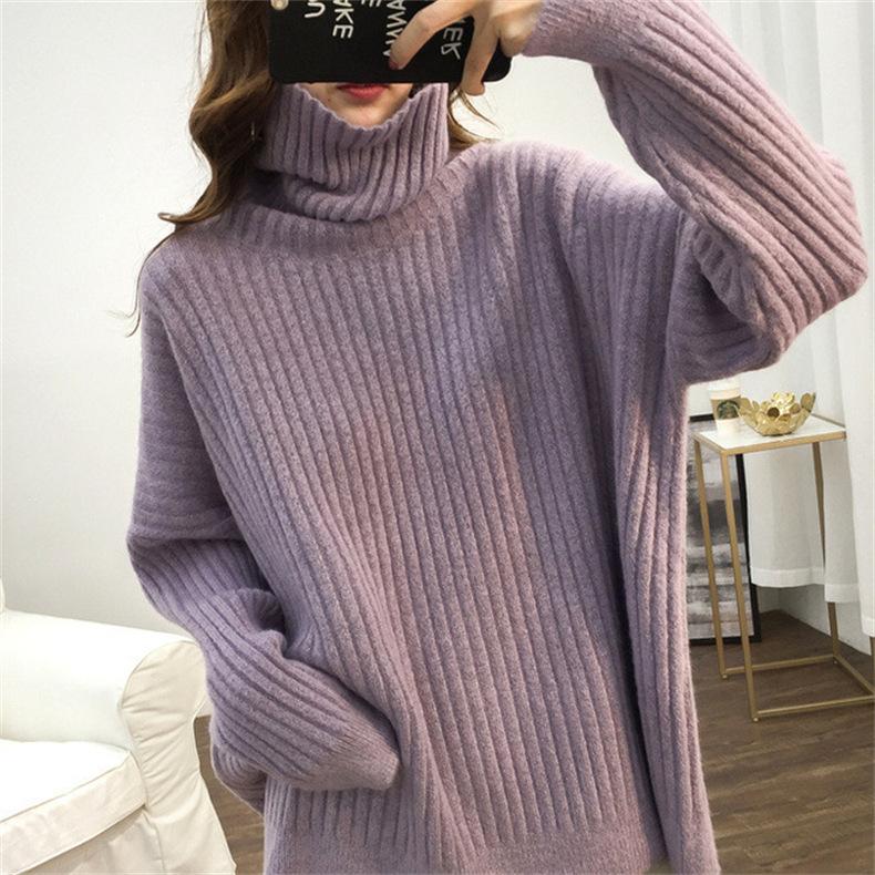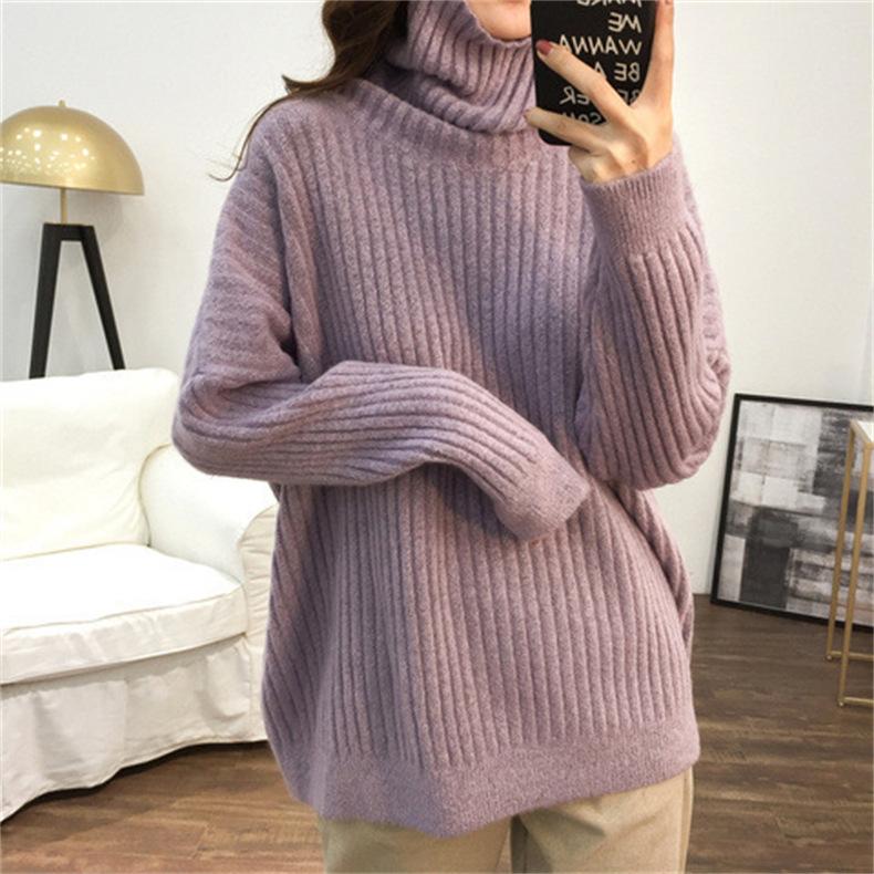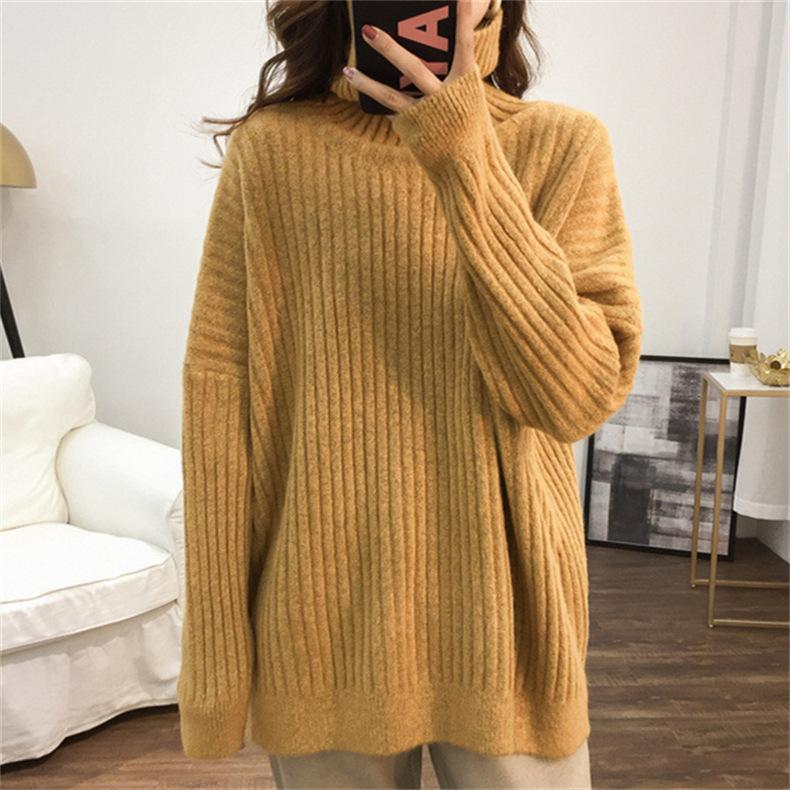 Suéter de Punto Otoño e Invierno Estilo Holgado Perezoso Top Ropa de Punto Interior de Manga Larga para Mujer Camiseta Básica de Punto de Cuello Alto para Mujer