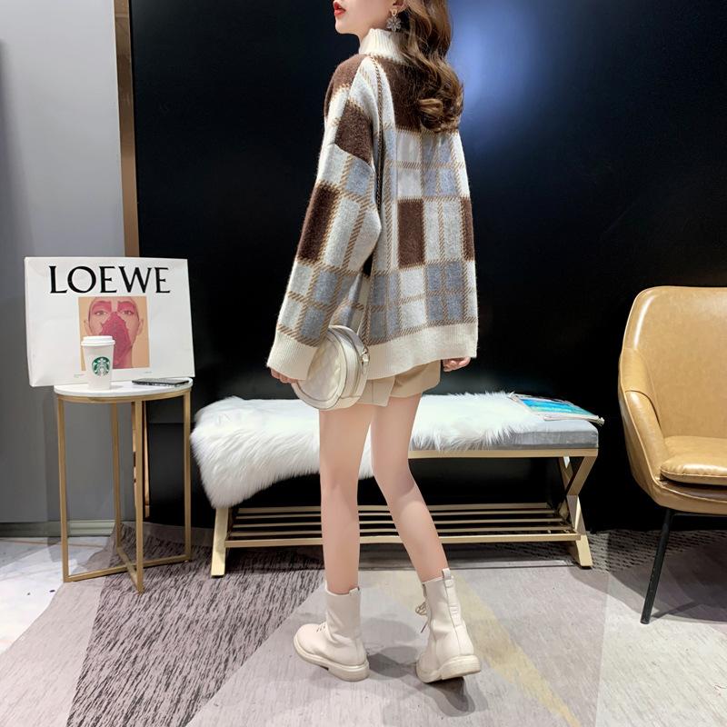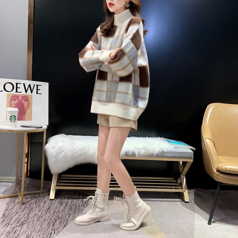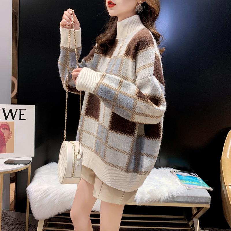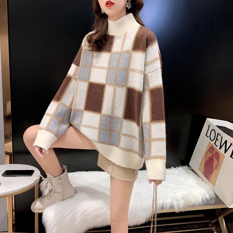 Estilo Coreano Nuevo Otoño e Invierno Suelto Holgazán Delgado Tejido Camiseta de Fondo Suéter de Moda Jersey de Mujer Top Elegante Trbottomy