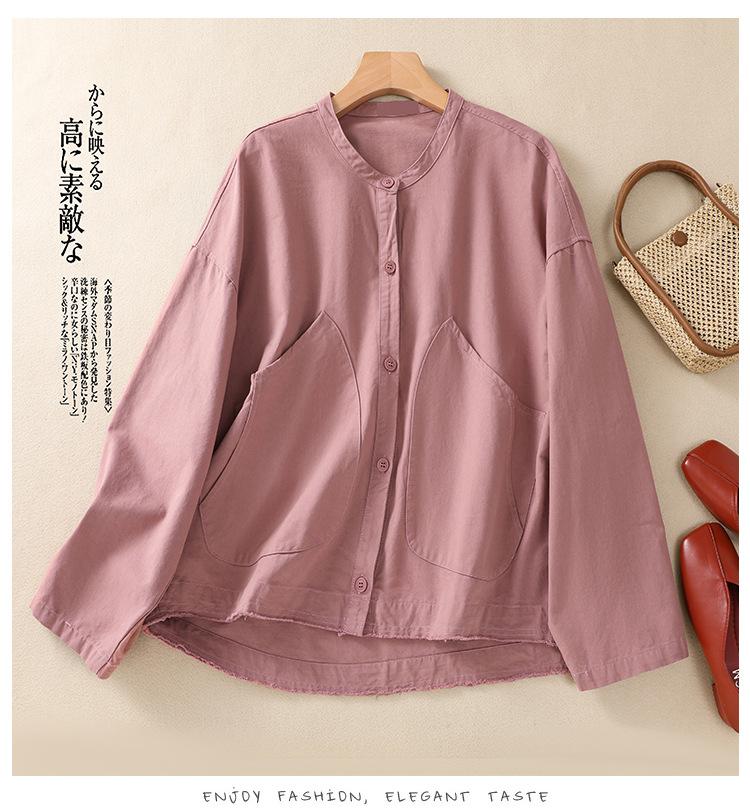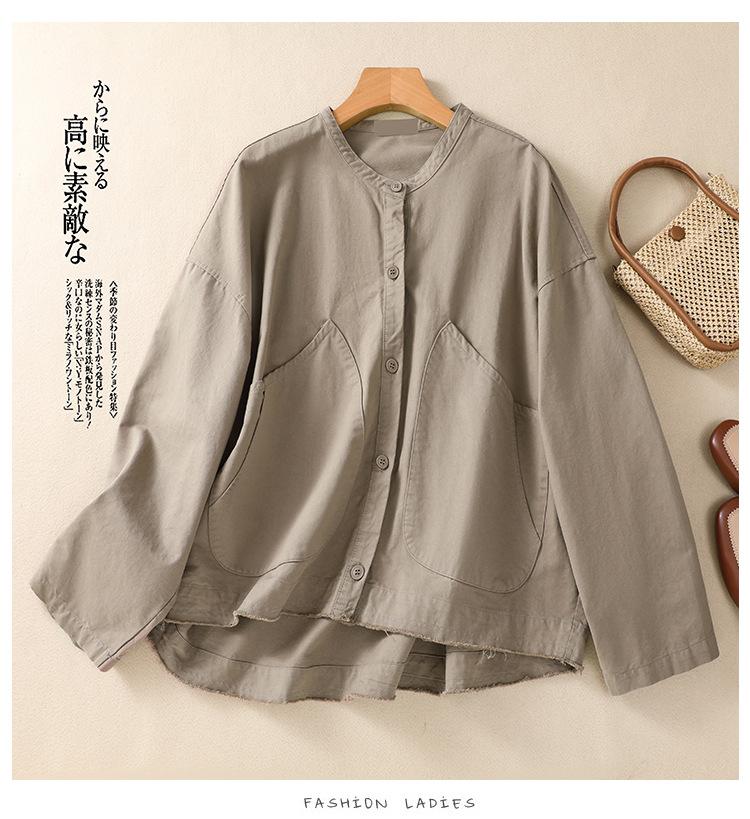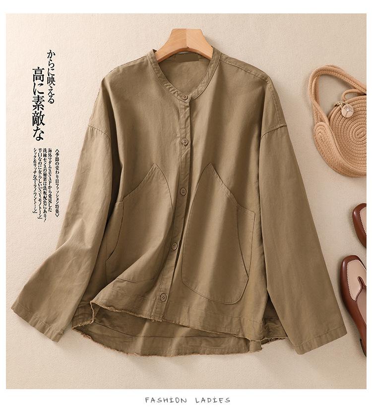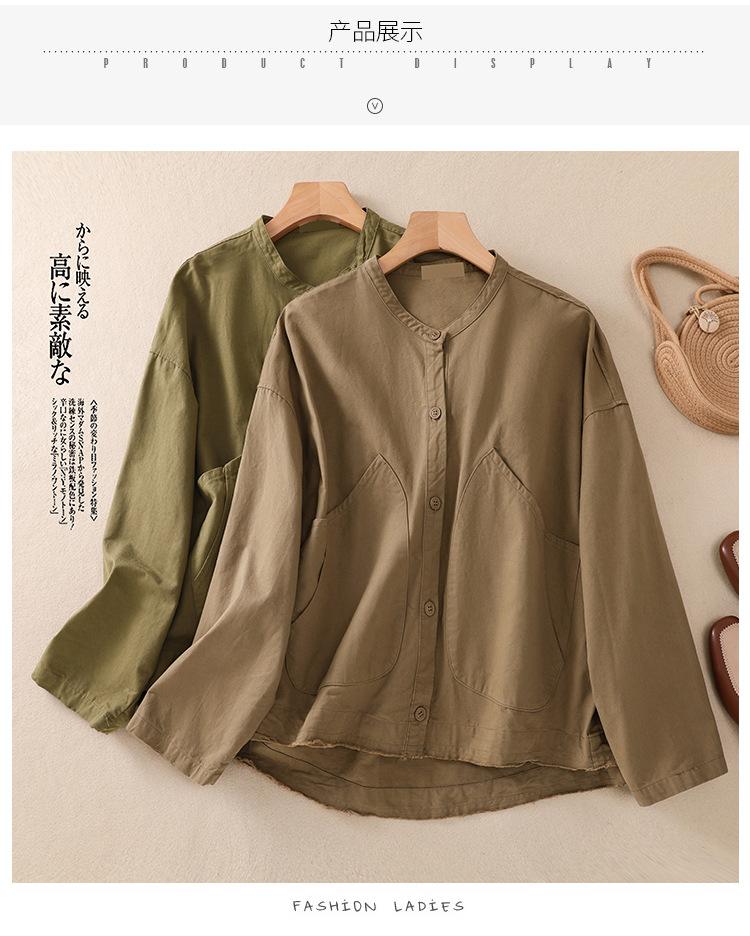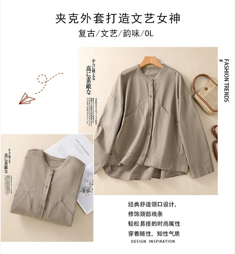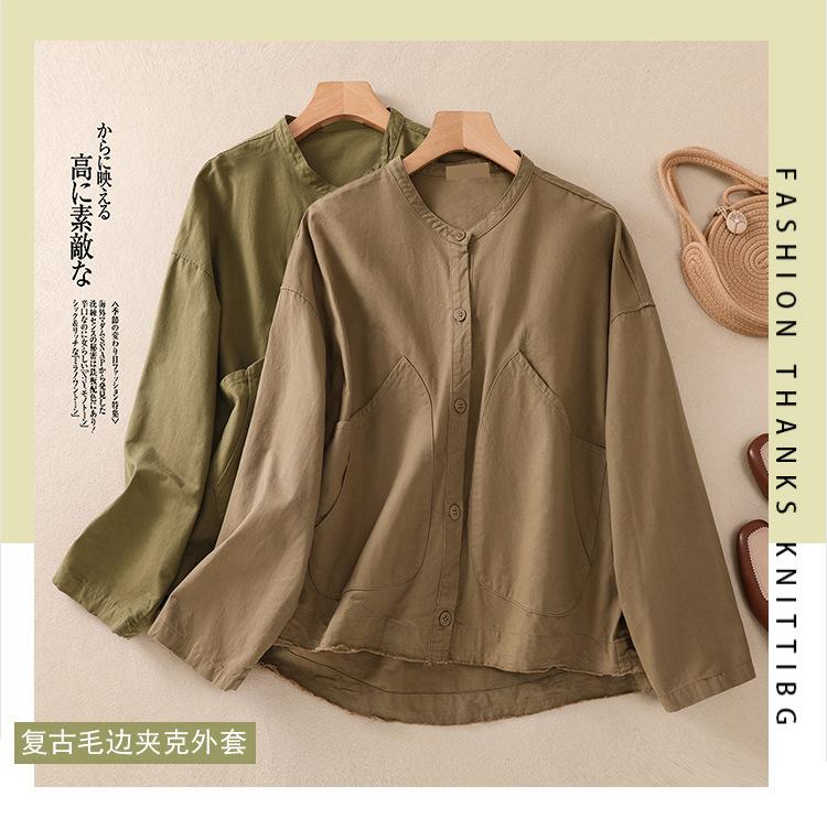 Toma real 2023 nuevo abrigo corto de algodón sarga tejida de alta densidad retro teñido en hilo ropa exterior cárdigan de manga larga