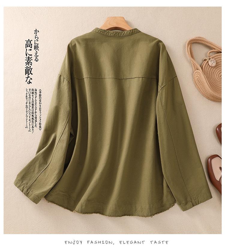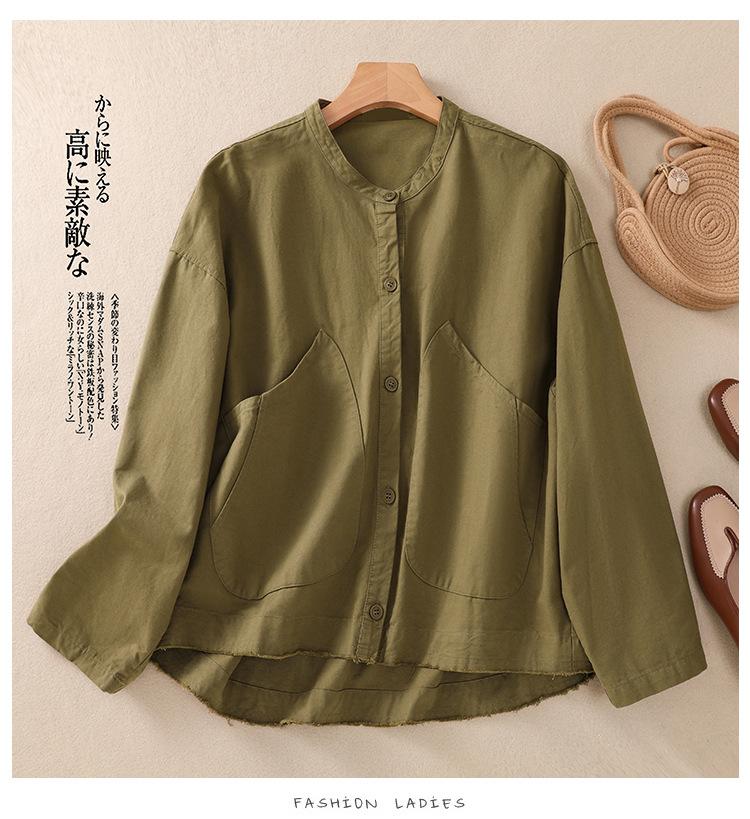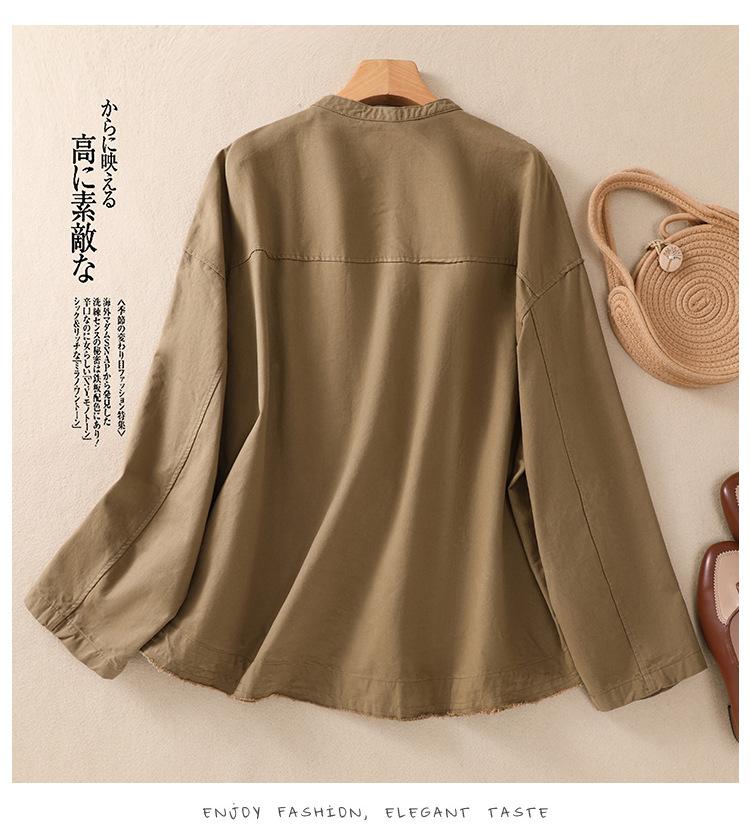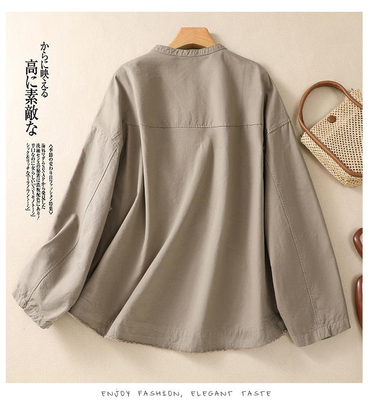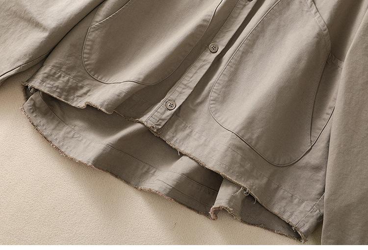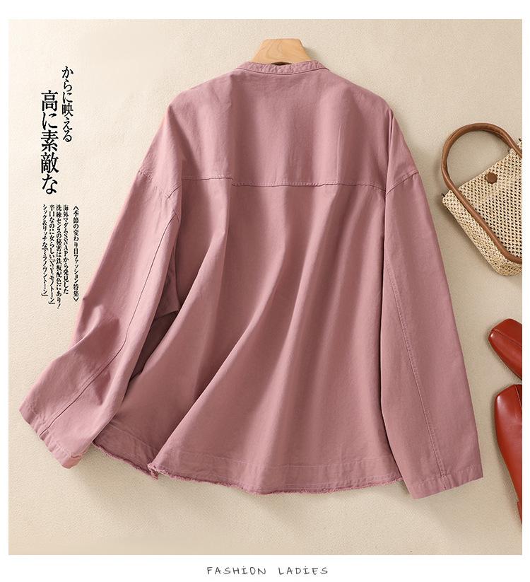 Toma real 2023 nuevo abrigo corto de algodón sarga tejida de alta densidad retro teñido en hilo ropa exterior cárdigan de manga larga