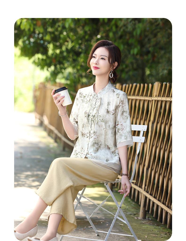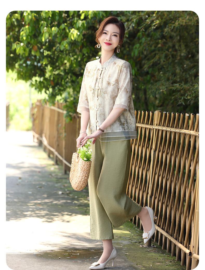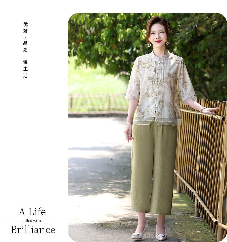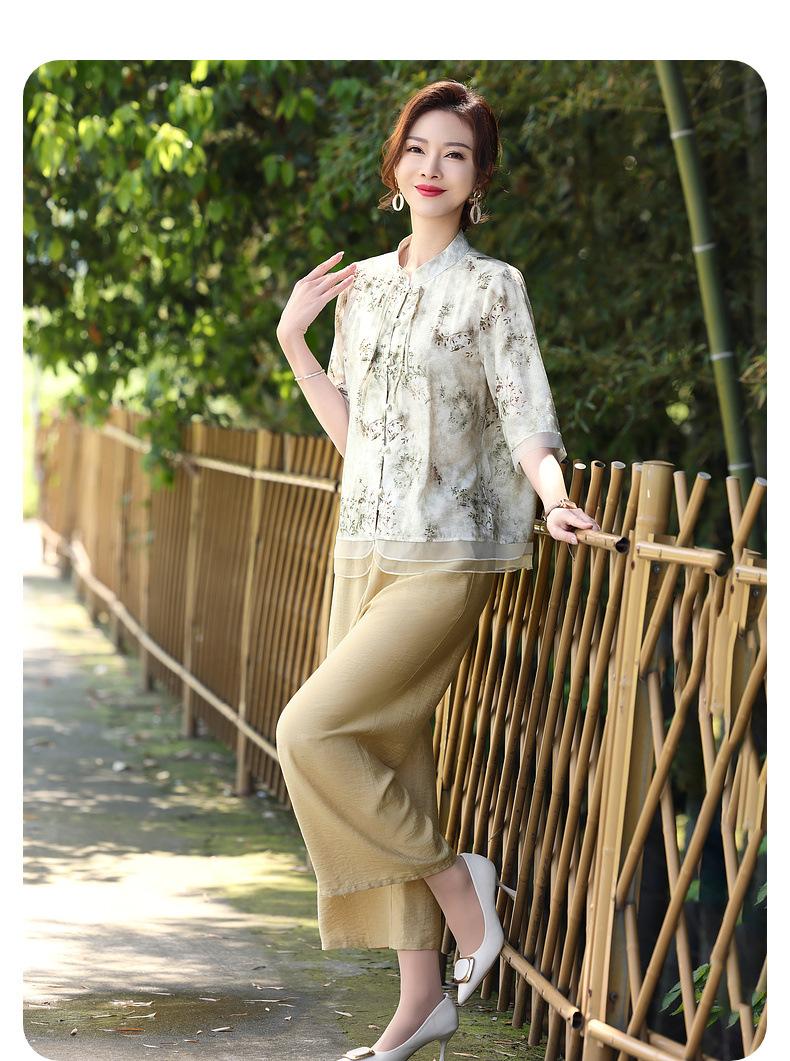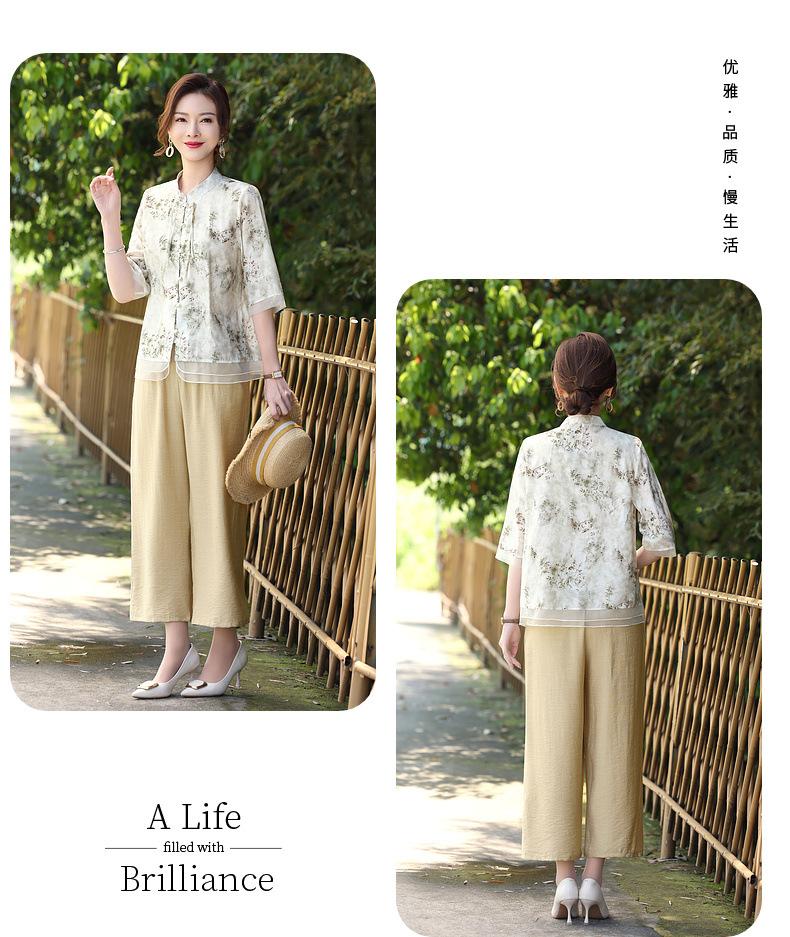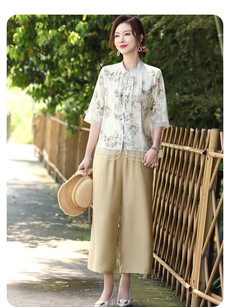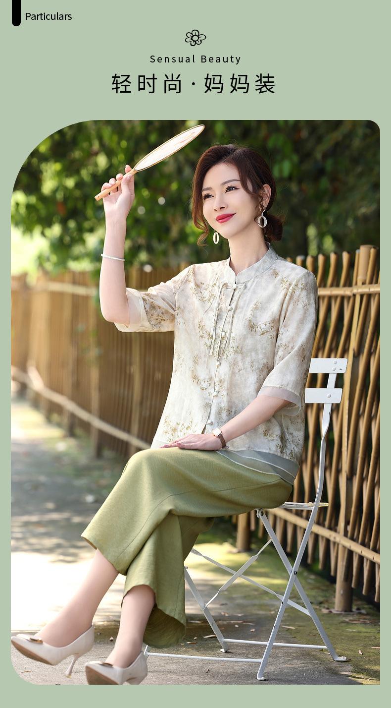 Traje de Vestido de Verano para Madres Nuevas 2025 para Mujeres que Reducen la Edad de 50 años Moda Guofeng para Mujeres de Mediana Edad y Mayores Estilo Occidental Moderno Conjunto de Dos Piezas