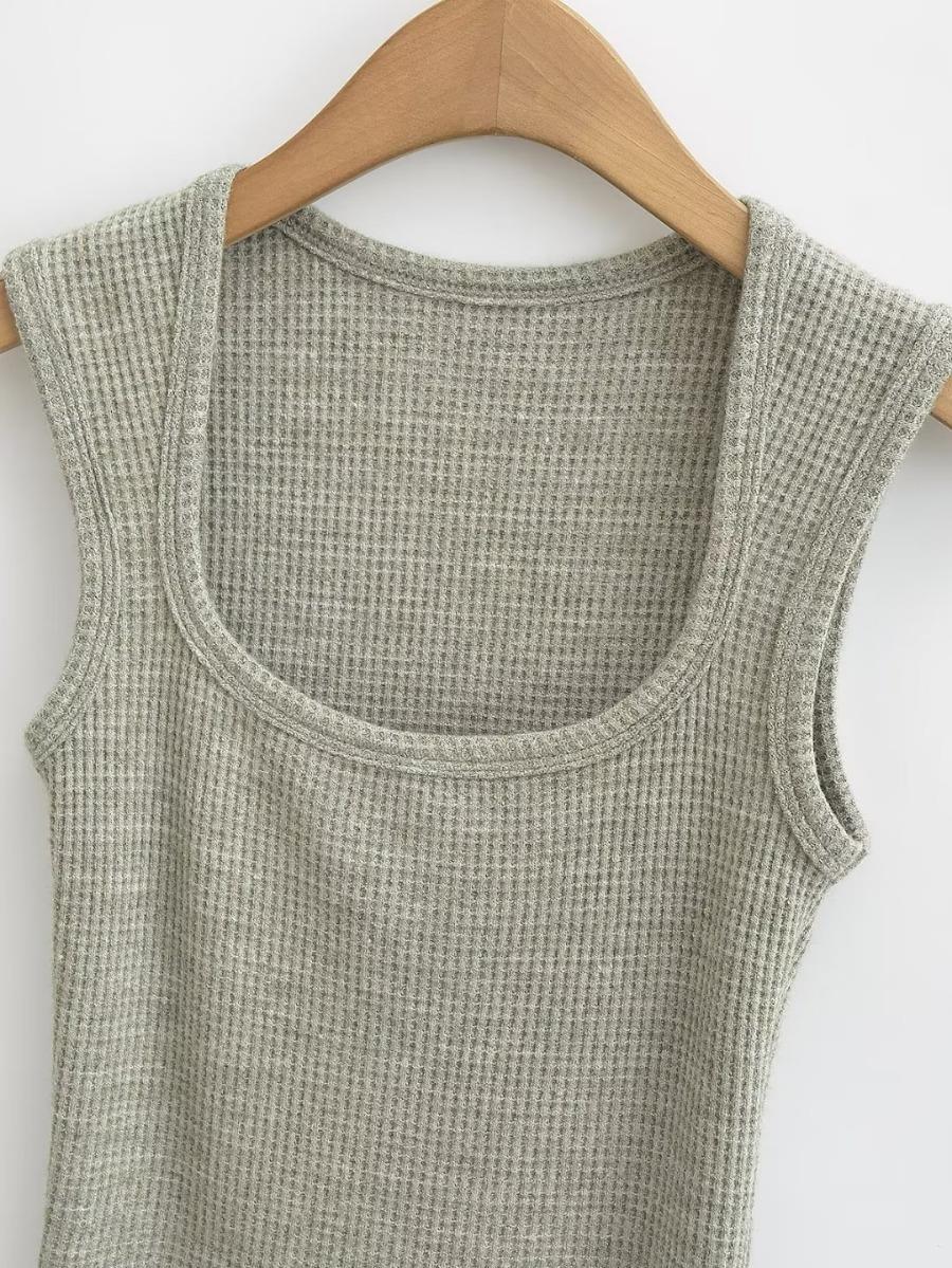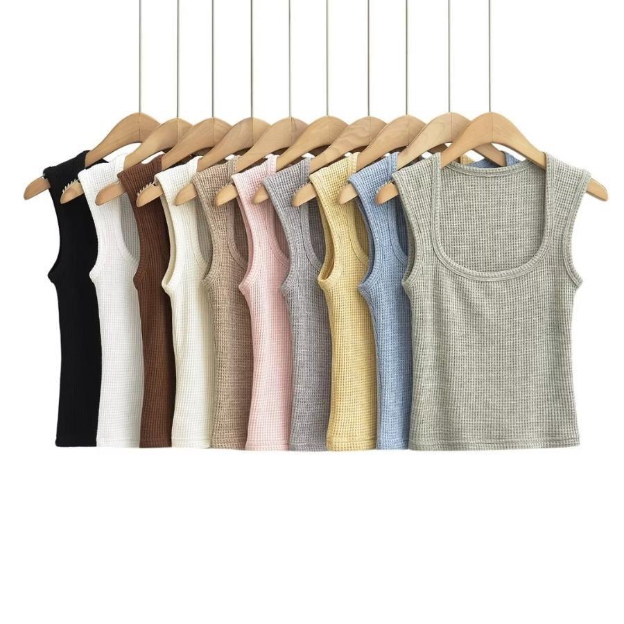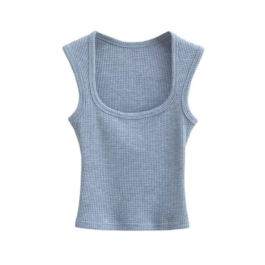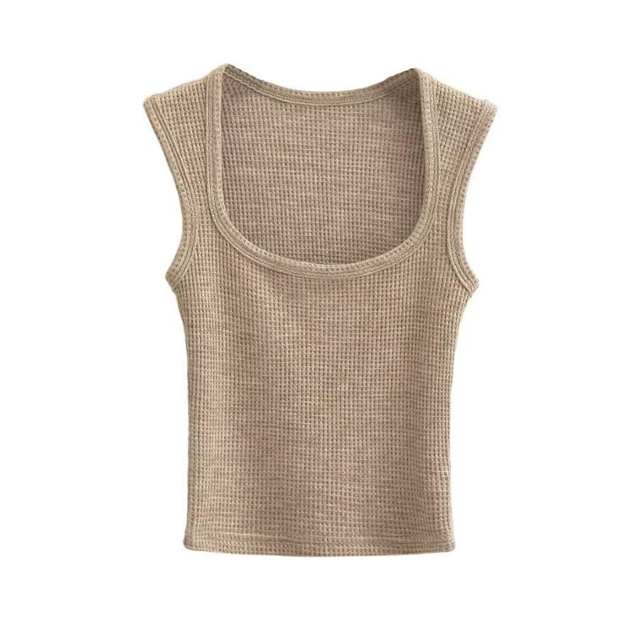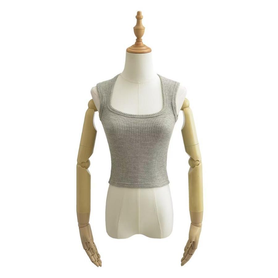 Chaleco de cuello cuadrado en forma de I para mujer, estilo europeo y americano, sexy, ajustado, corto, hasta el ombligo, novedad de verano de 2023