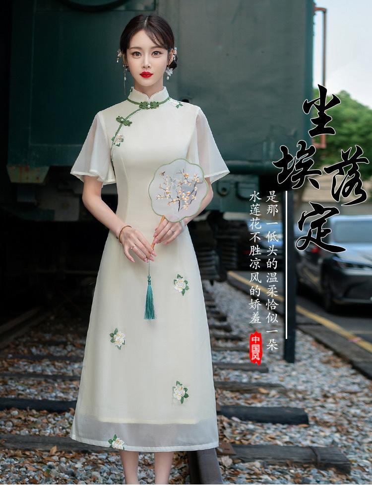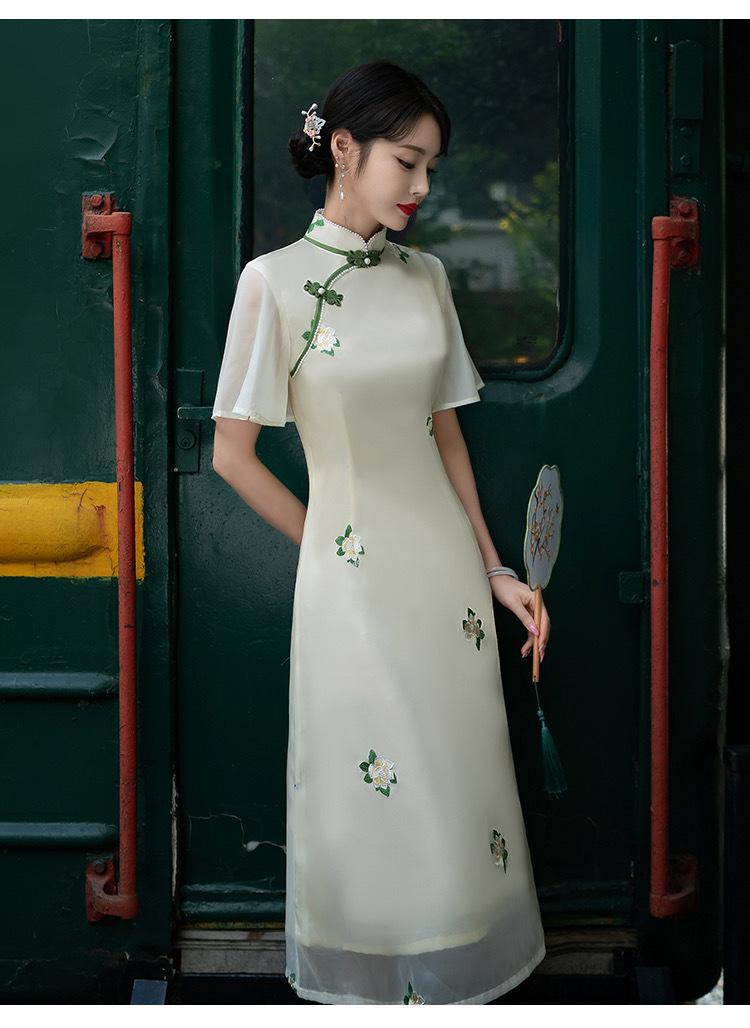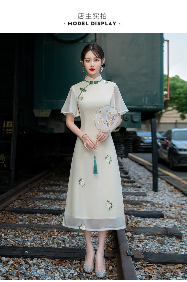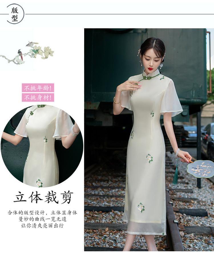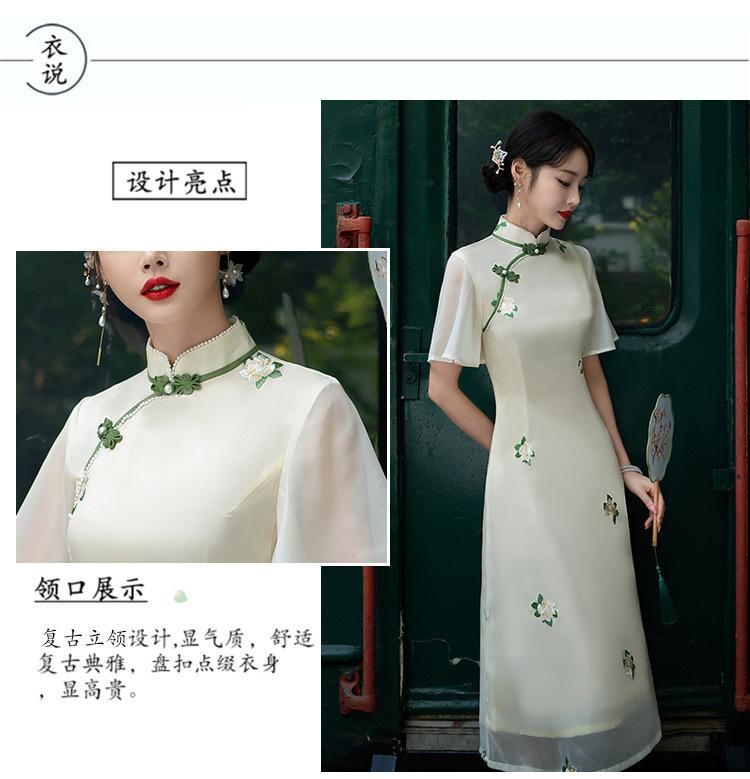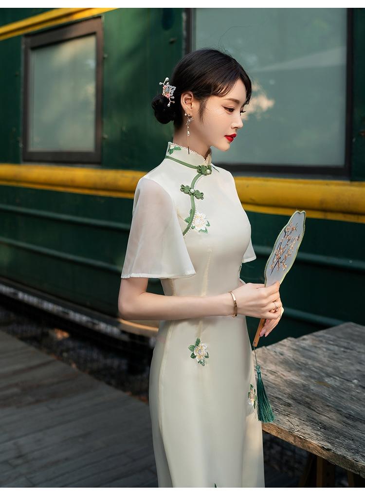 Vestido Cheongsam Modificado de Seda Bordada Pesada 2023 Verano Nuevo Moda Elegante Estilo de Dama Falda Adelgazante