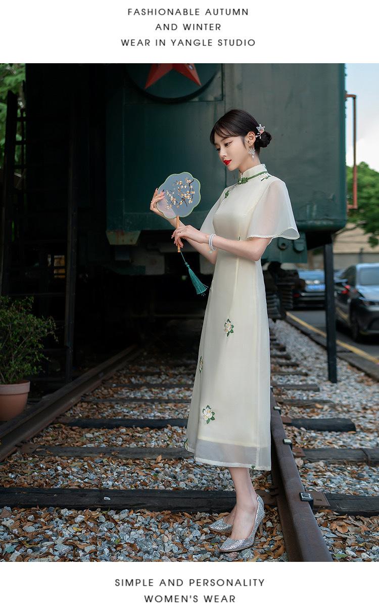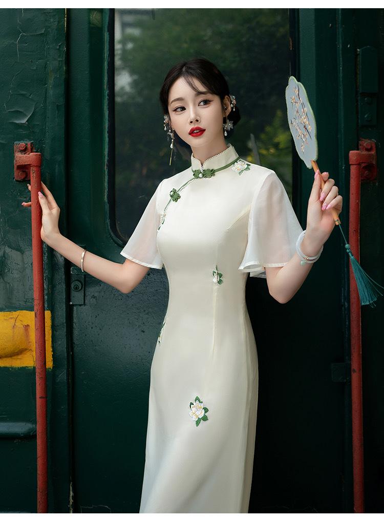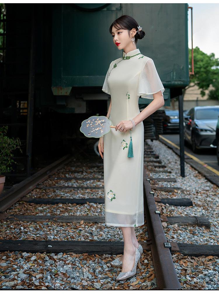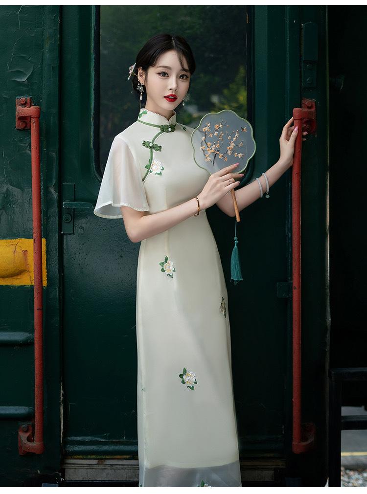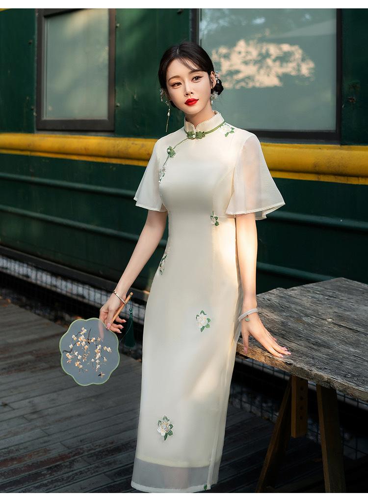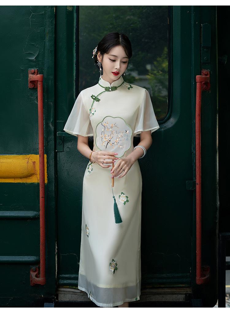 Vestido Cheongsam Modificado de Seda Bordada Pesada 2023 Verano Nuevo Moda Elegante Estilo de Dama Falda Adelgazante