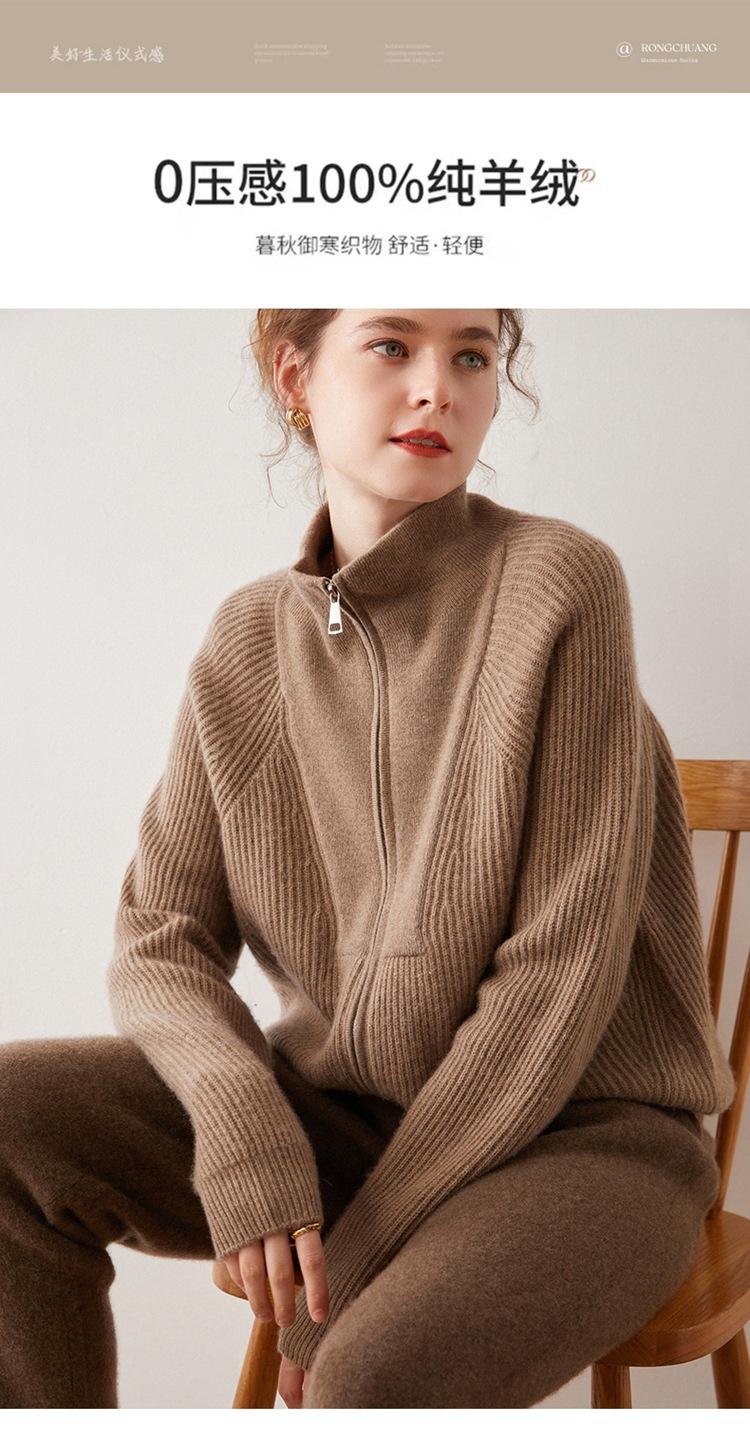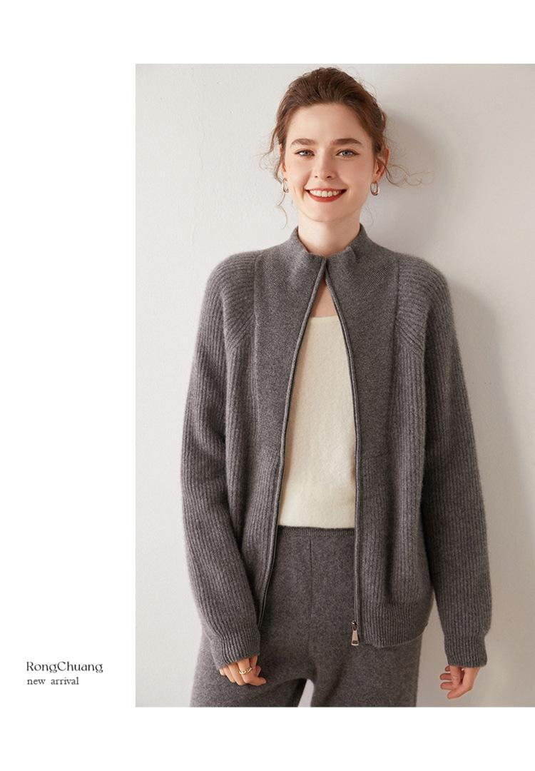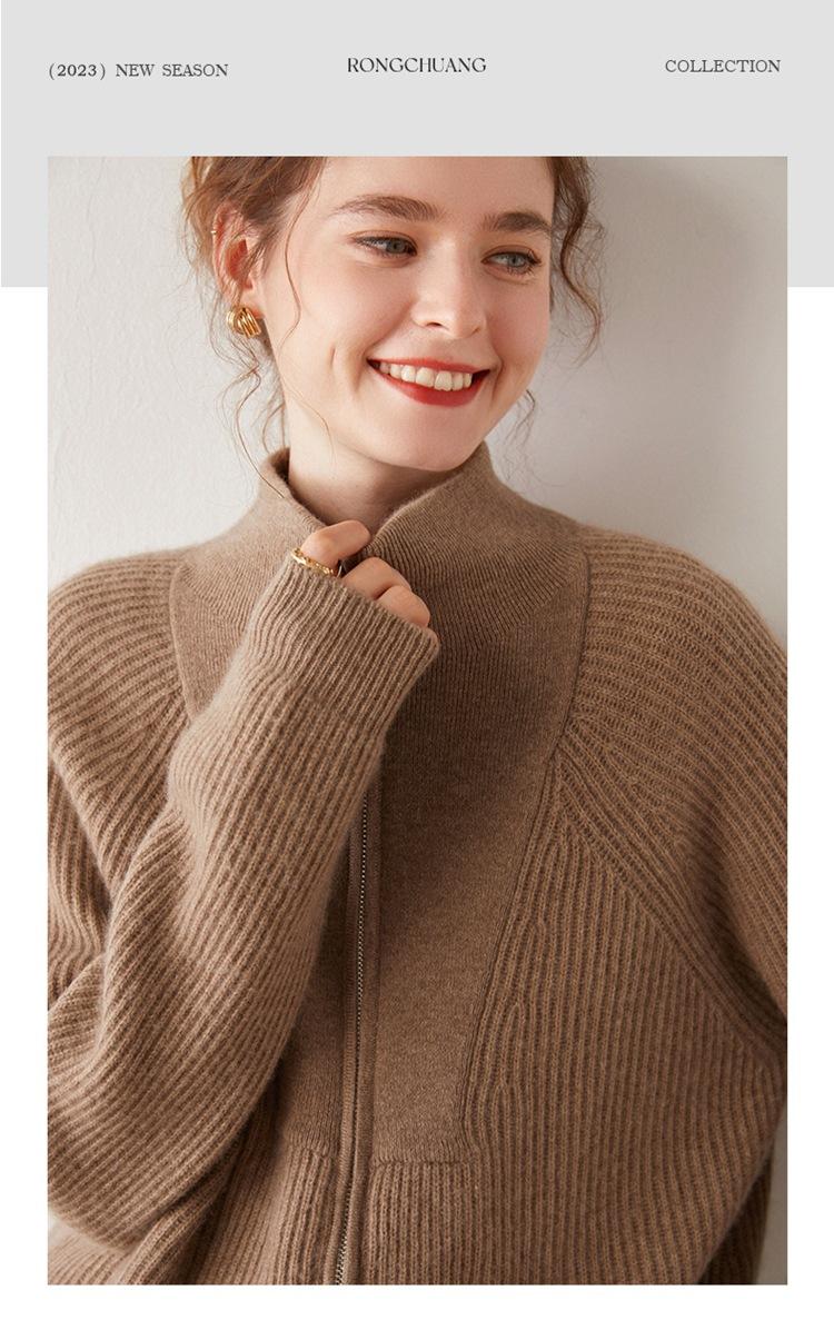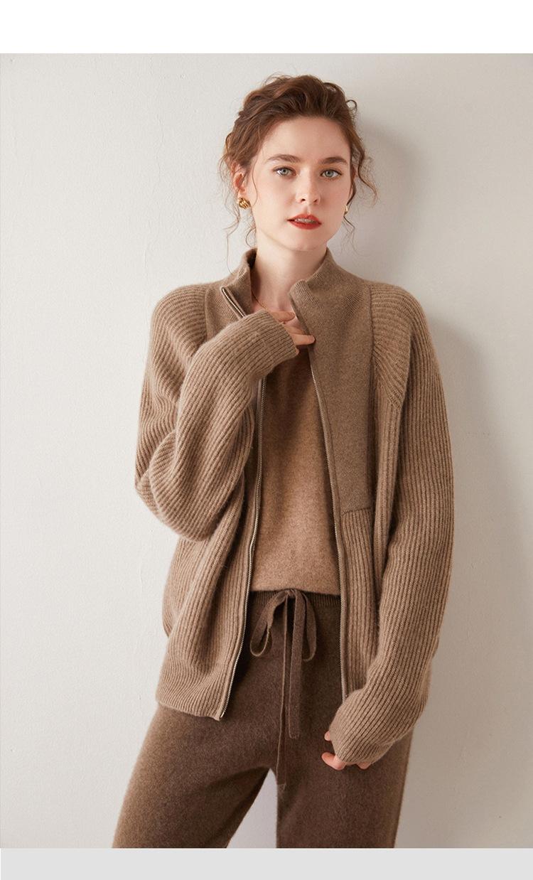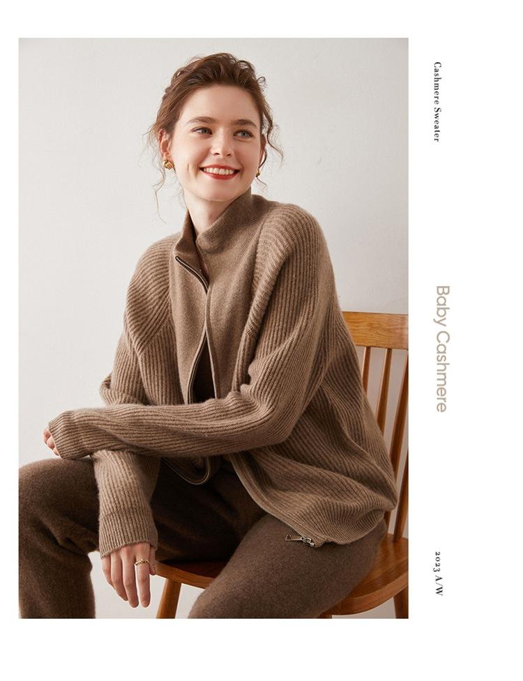 Suéter de cachemira con cuello alto para mujer, cárdigan de cachemira grueso e informal holgado, abrigo de punto