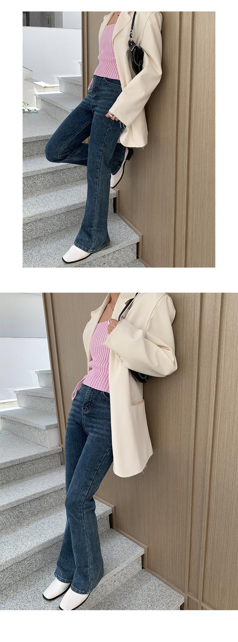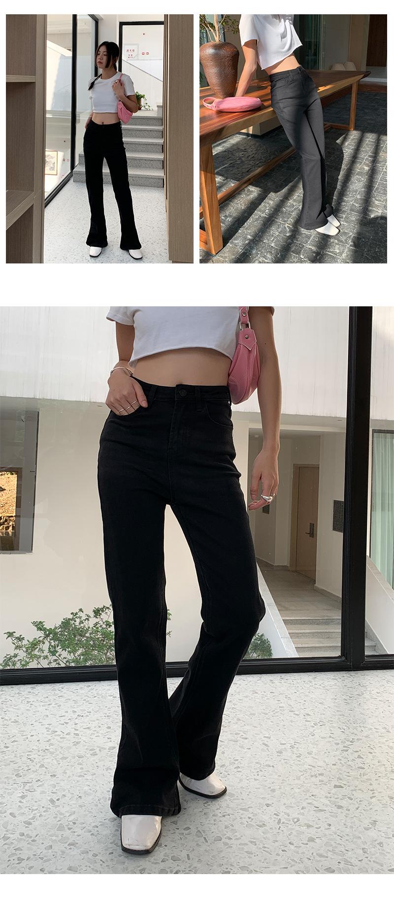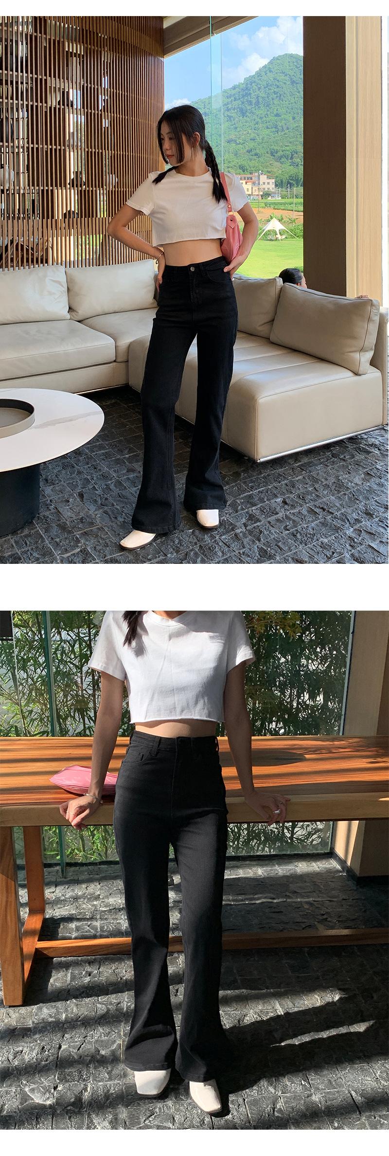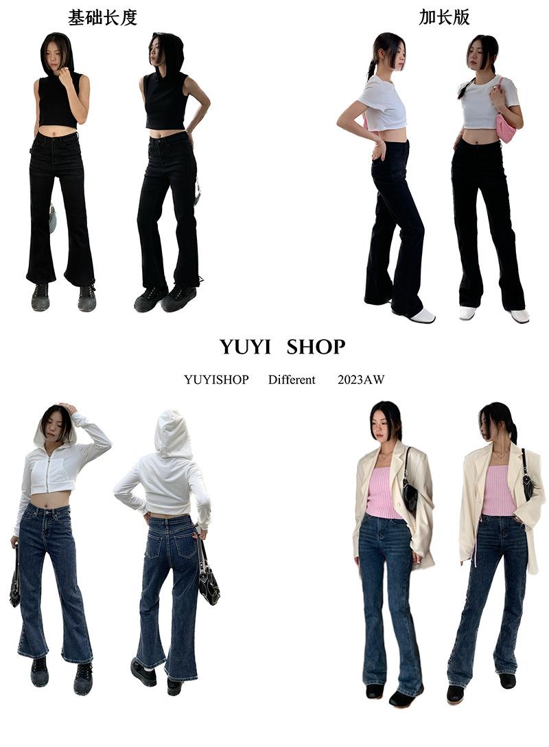 Jeans de Cintura Alta Yuyi para Mujer Básicos Elásticos Slim Casual Versátiles Acampanados