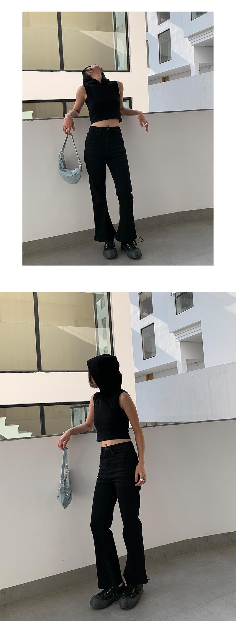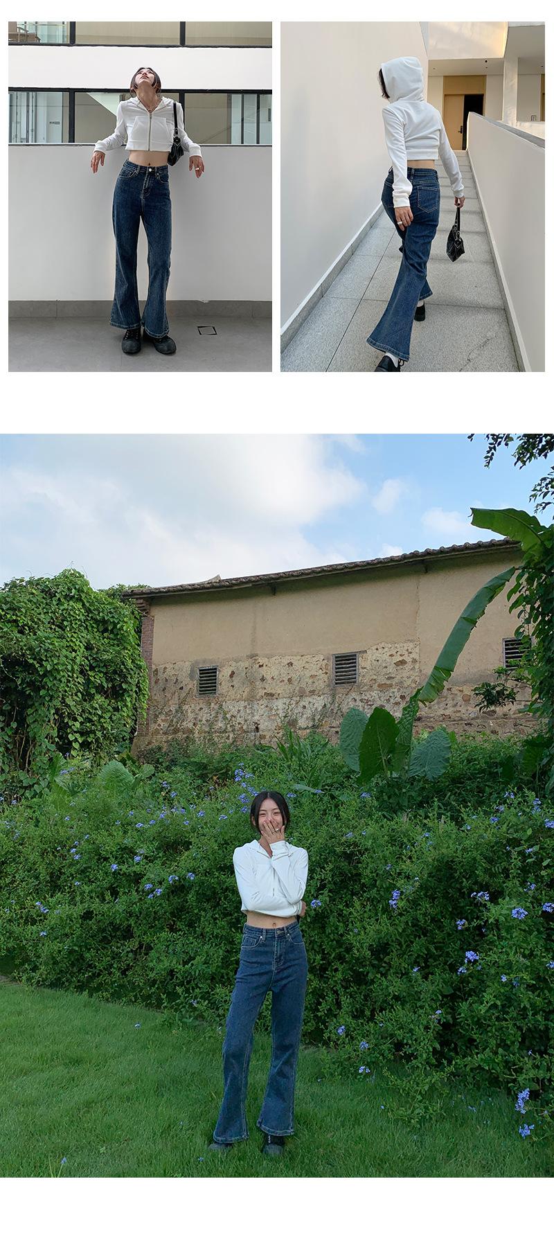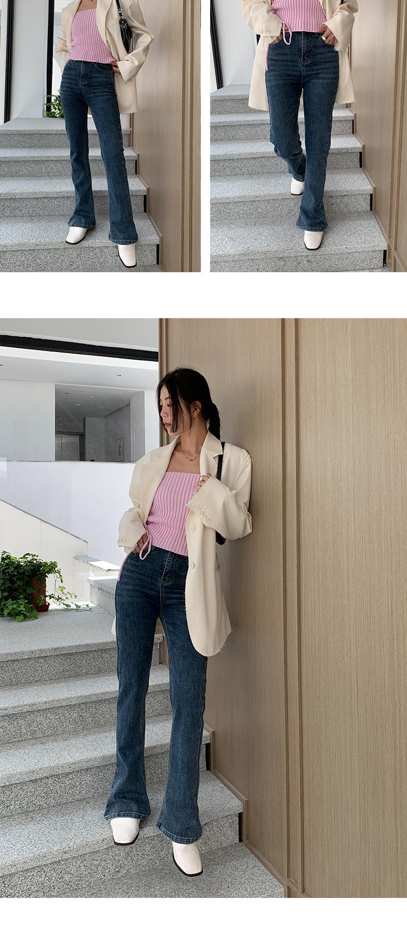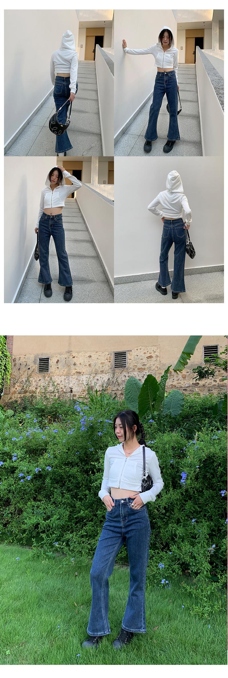 Jeans de Cintura Alta Yuyi para Mujer Básicos Elásticos Slim Casual Versátiles Acampanados