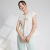 | Ropa seleccionada Camiseta de manga corta plisada estilo japonés para mujer con estilo sencillo, estampado elástico, corte entallado, top Miyake para desplazamientos diarios que combina con todo |