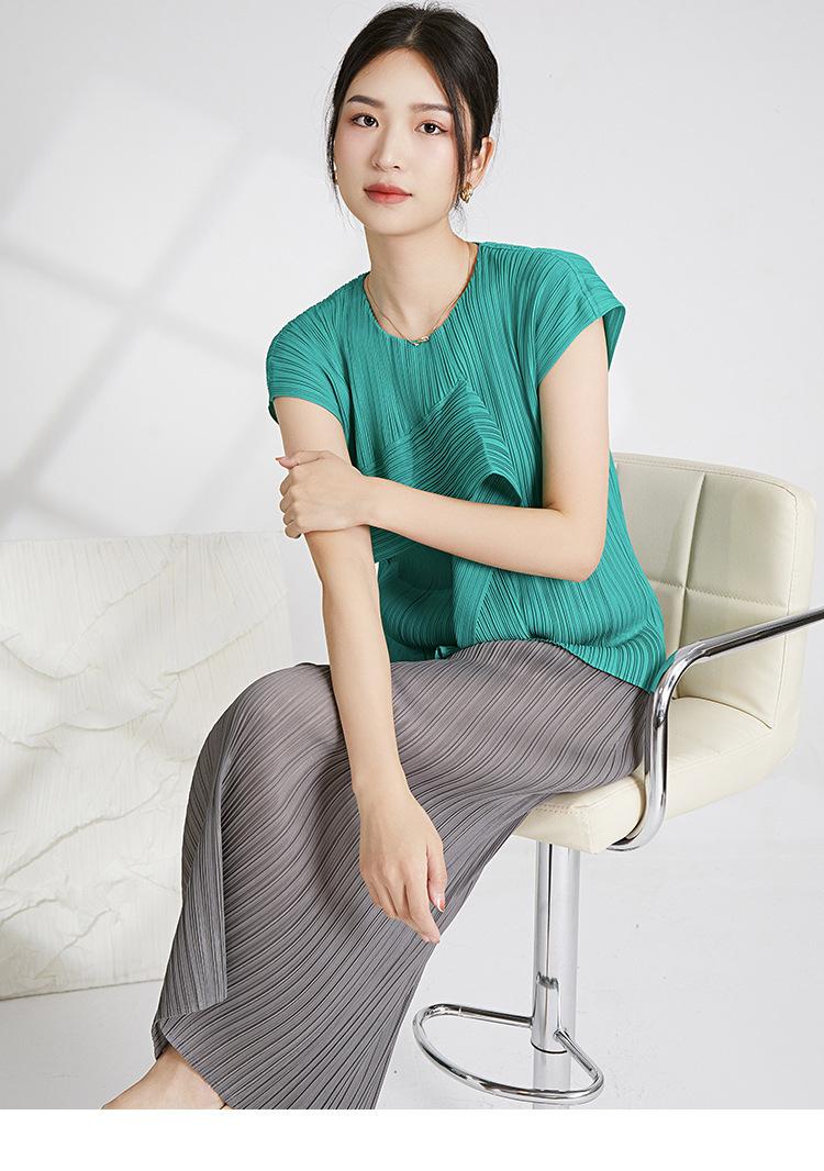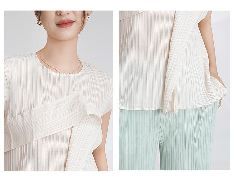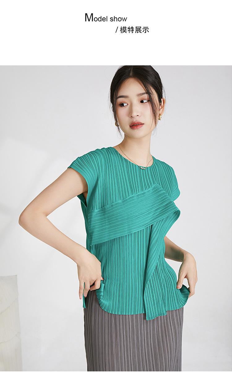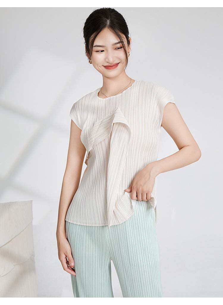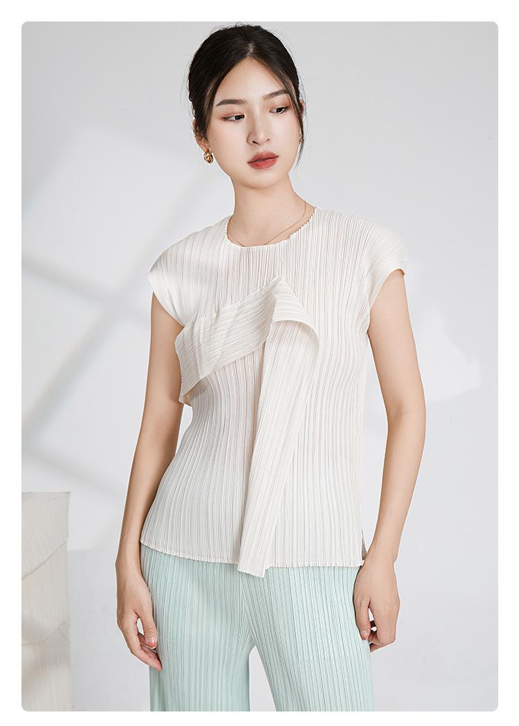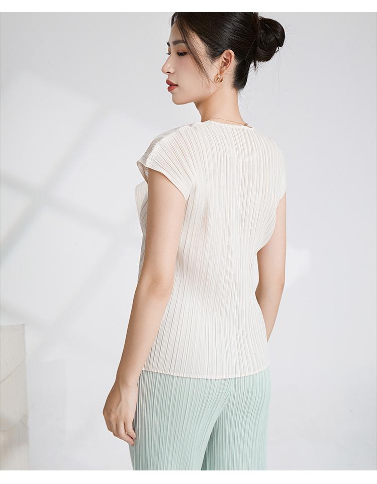 | Nueva camiseta de verano Miyake para mujer, moderna y versátil, con cuello en V holgado, plisado, ajustado, ropa plisada para mujer |
