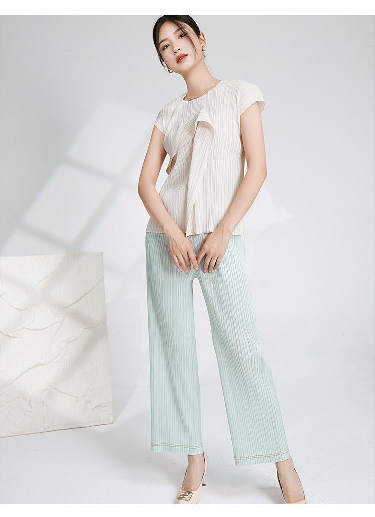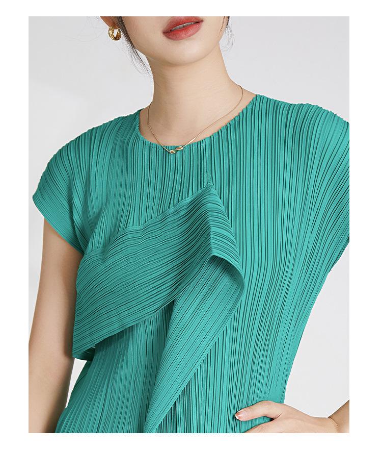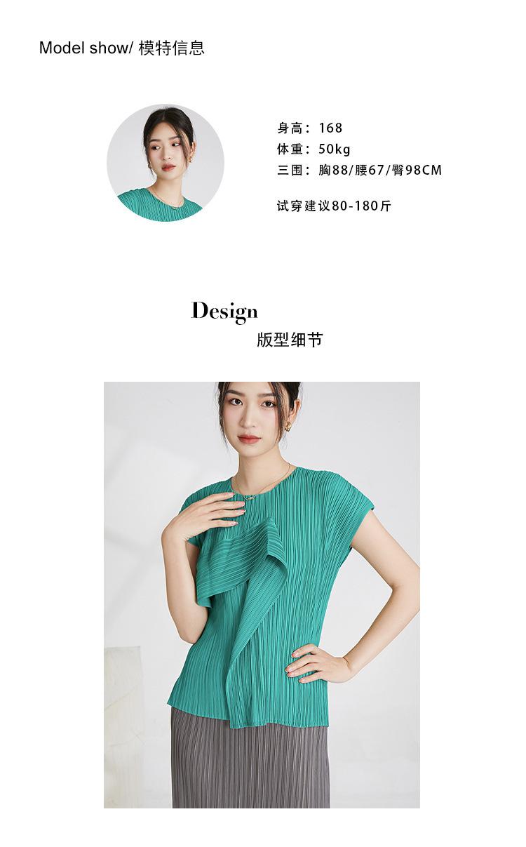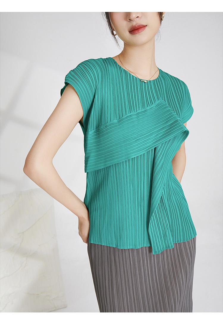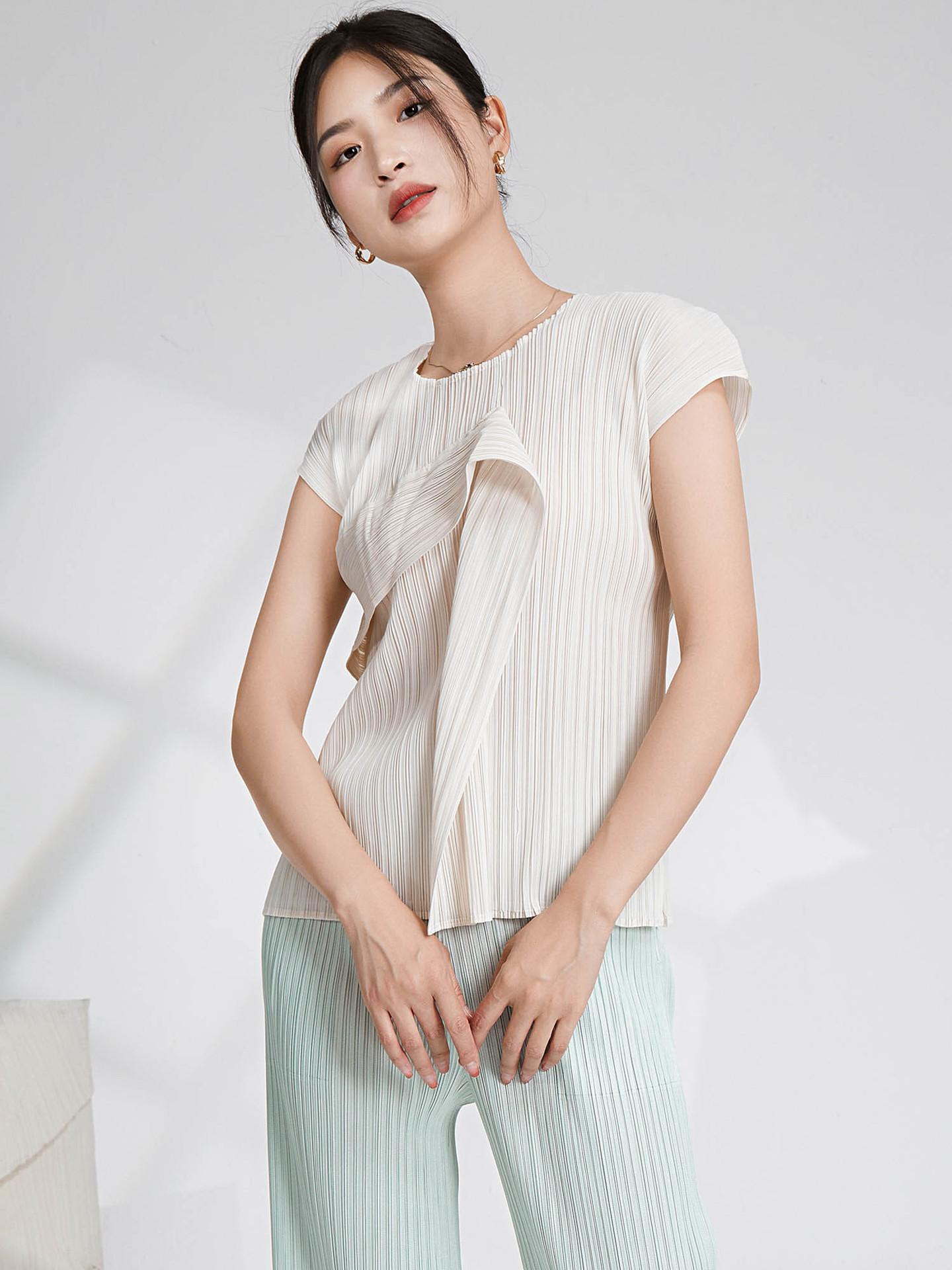 | Nueva camiseta de verano Miyake para mujer, moderna y versátil, con cuello en V holgado, plisado, ajustado, ropa plisada para mujer |