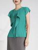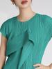 | Camiseta de cuello en V de manga corta Miyake para mujer en el verano de 24 años, nuevo estilo, mangas murciélago de alta calidad, tops holgados y de moda para todos los partidos |