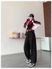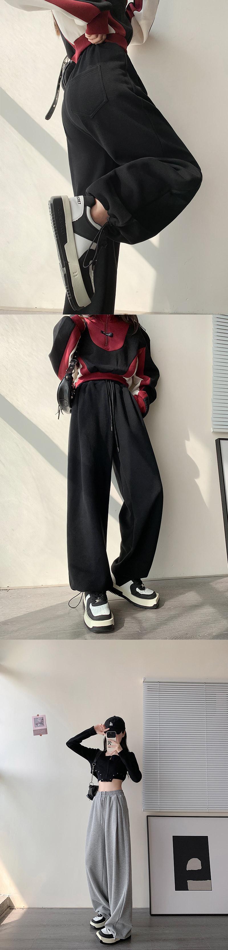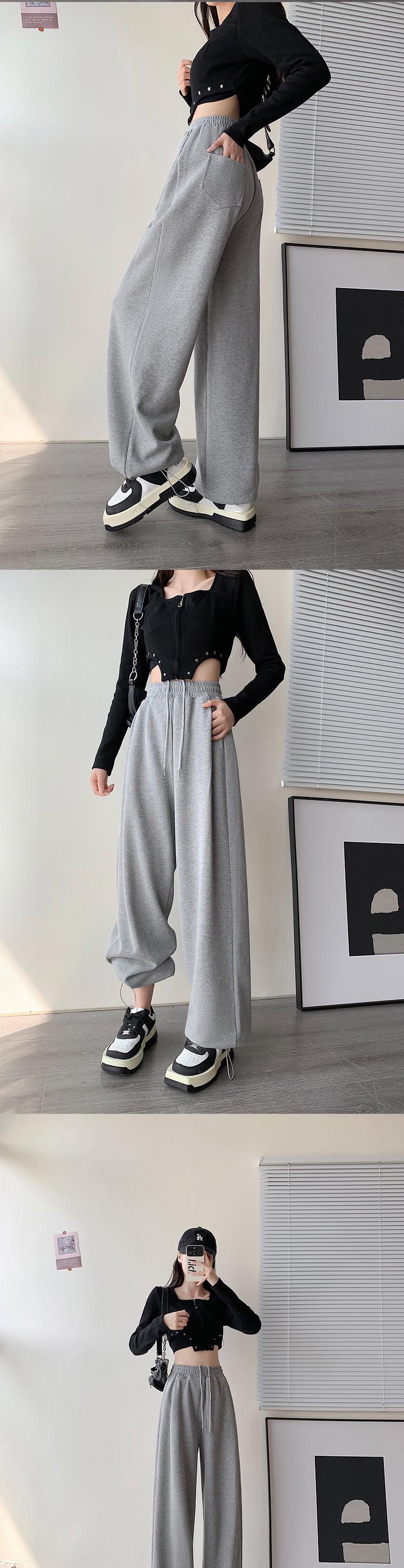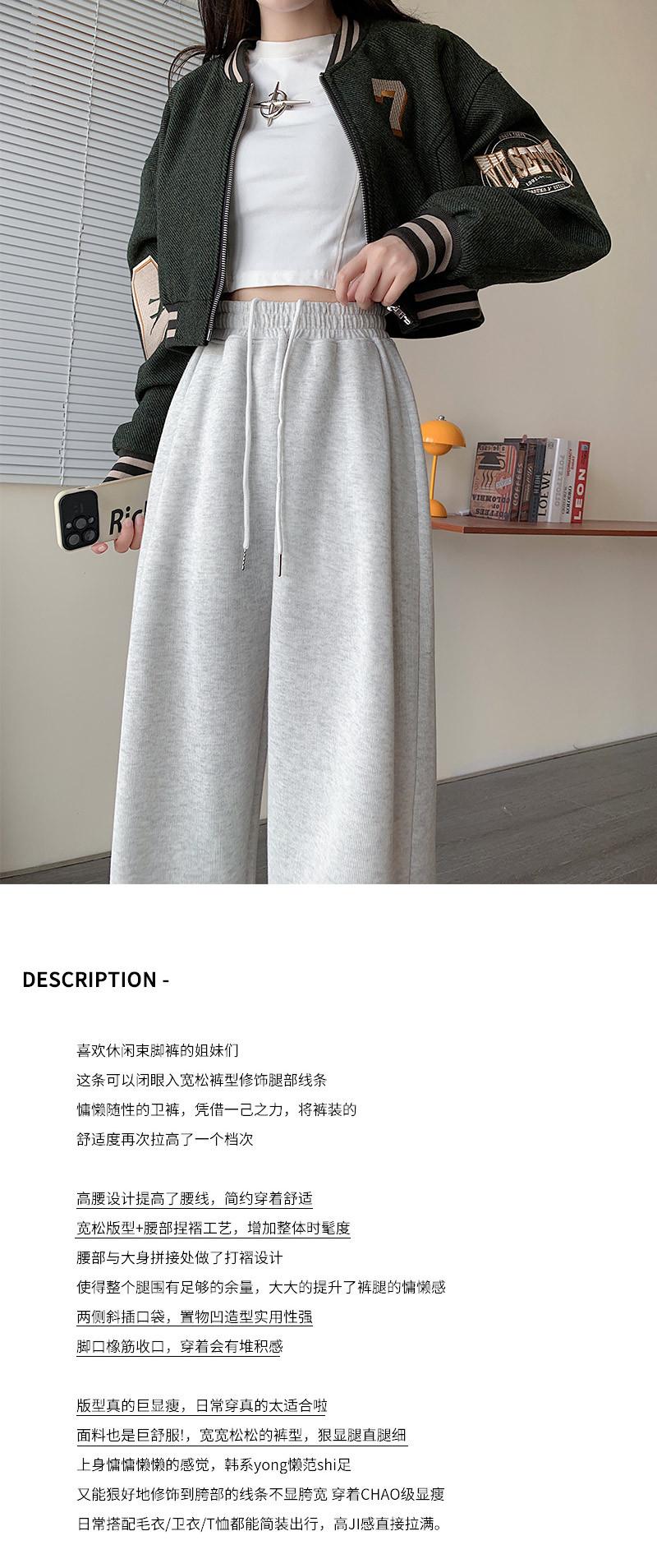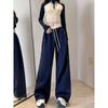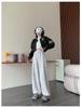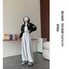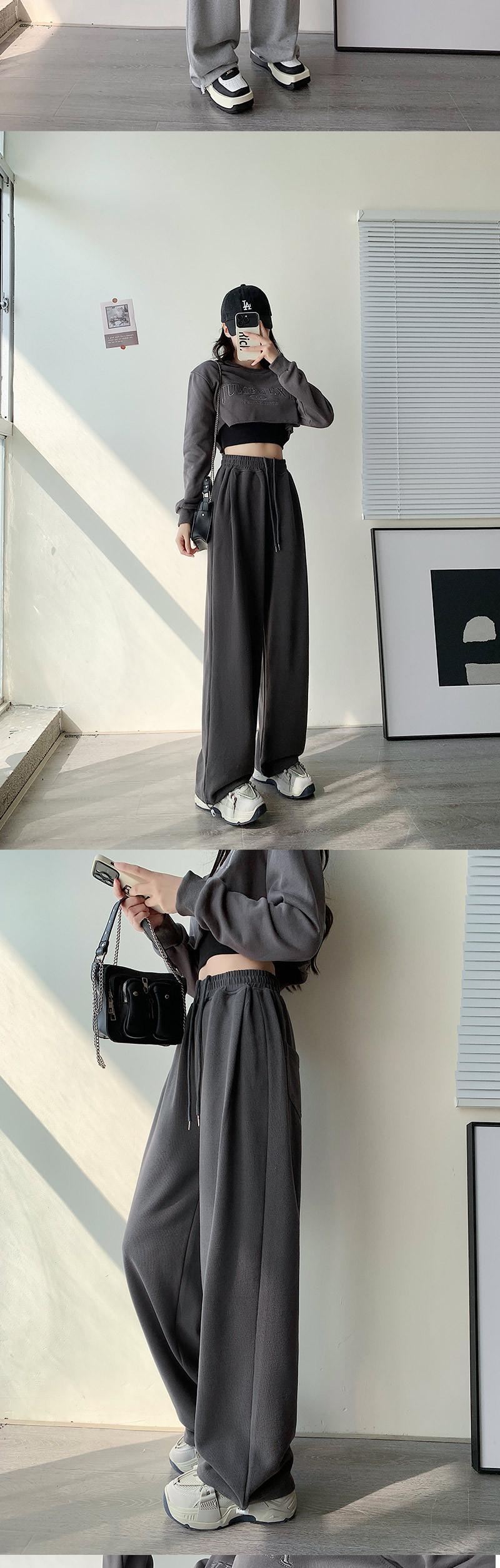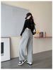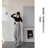 Pantalón de chándal gris carbón para mujer 2025 Primavera y Verano Nuevo Suelto con lazo en la pierna Pantalón de chándal casual Estilo americano Look adelgazante Pequeño Piernas anchas