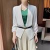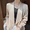 | Chaqueta cárdigan de manga larga de punto de seda fina de verano nueva para mujer, chaqueta holgada con protección solar, prenda exterior corta, chal de color liso |