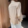 | Camisa de satén suelta de cuñada para mujer, nuevo estilo de primavera, mangas de hombros caídos, camisa con textura de seda, top de manga larga |