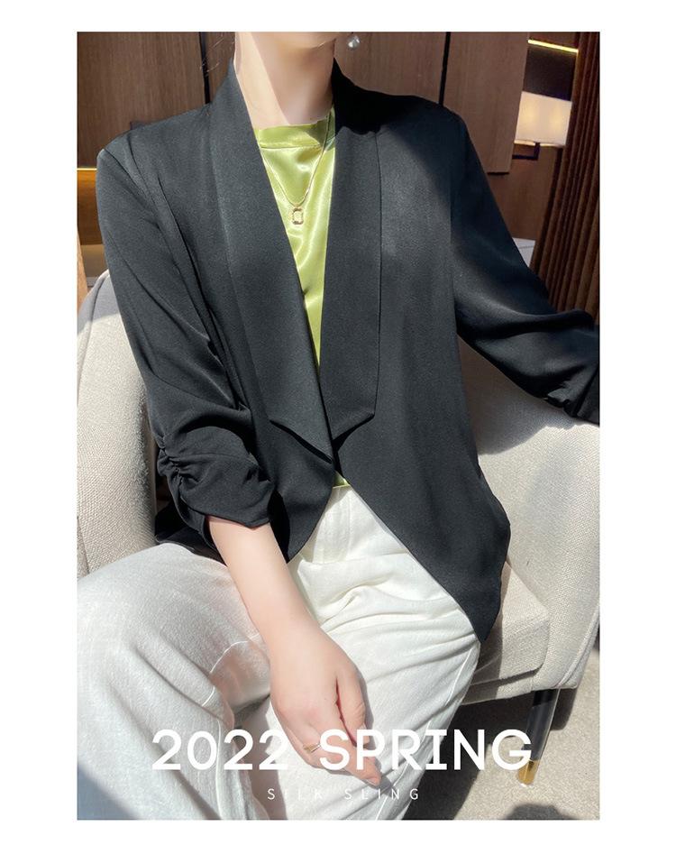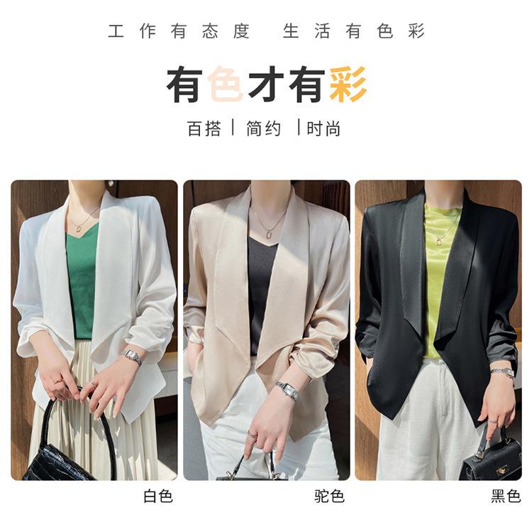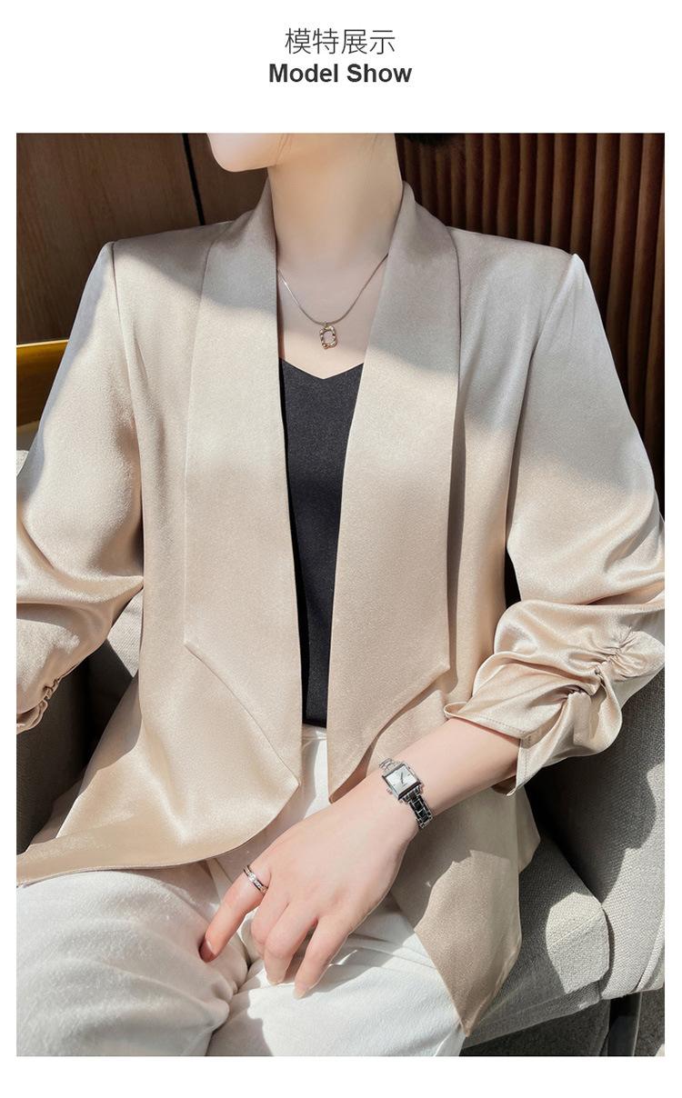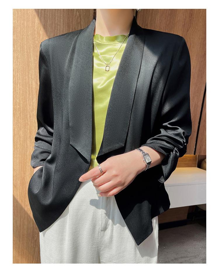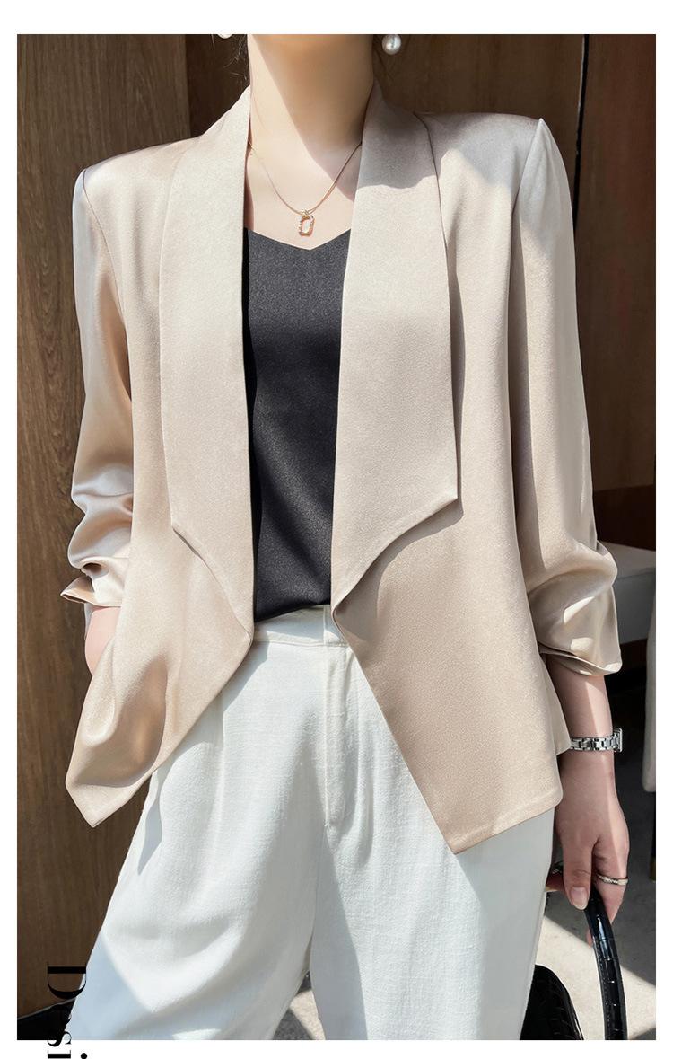 | Chaqueta de traje blanca de acetato para mujer, de alta gama, informal, holgada, fina, de primavera y verano, de satén negro, corte entallado, traje pequeño |