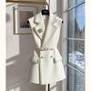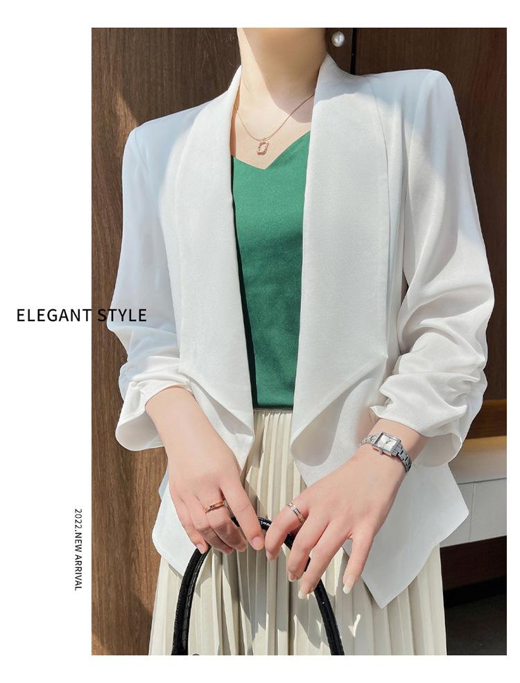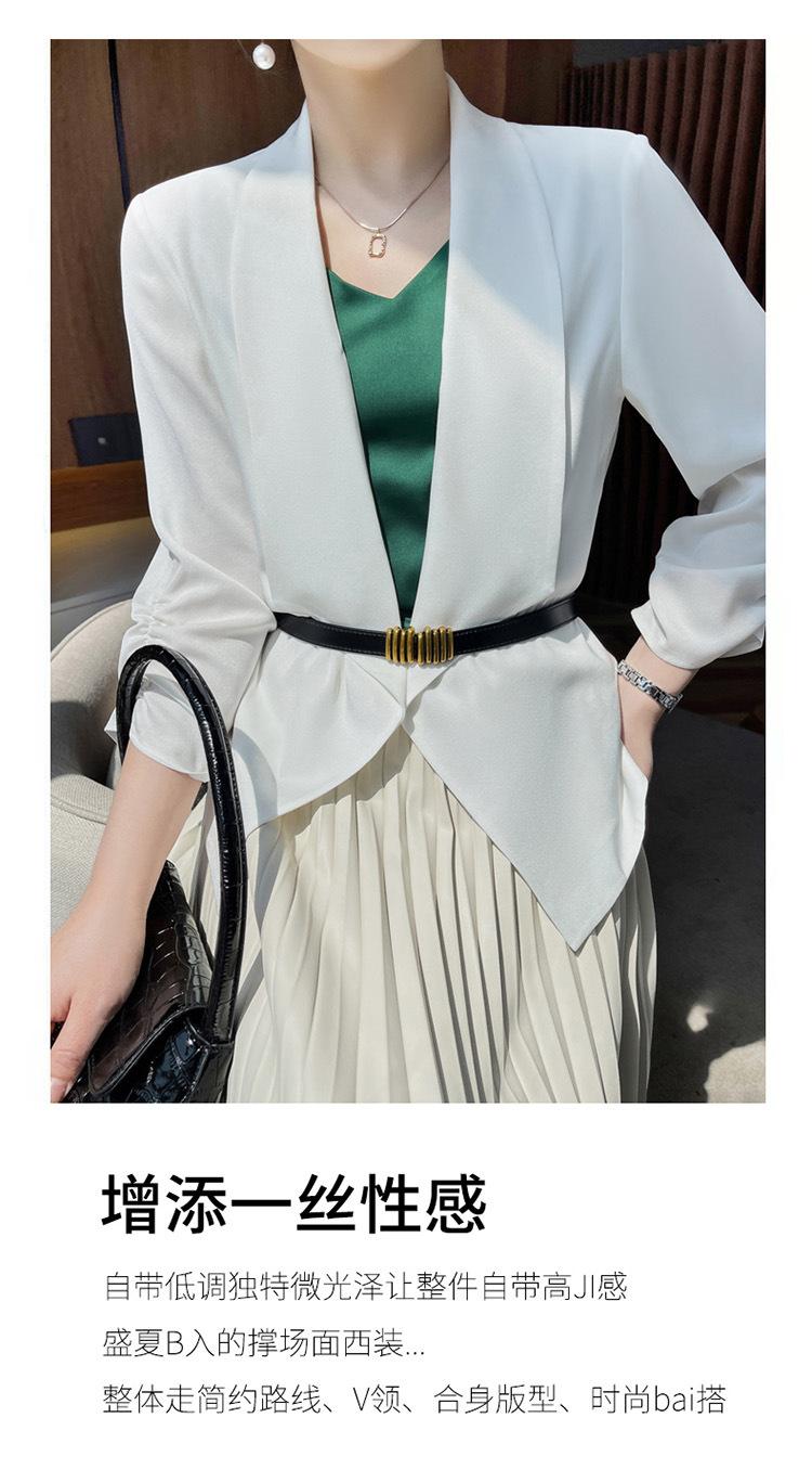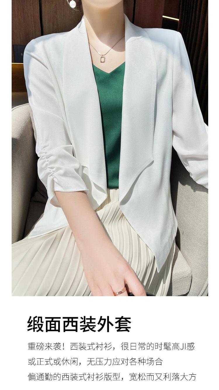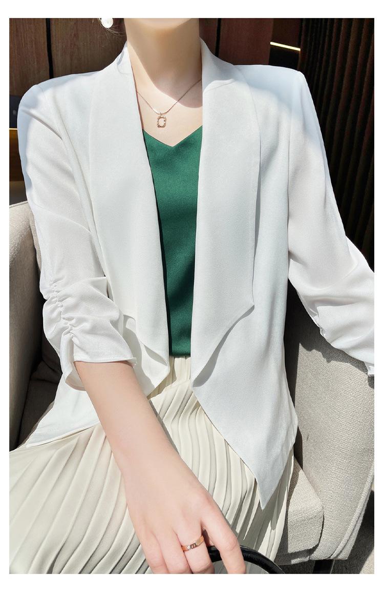 | Chaqueta de traje blanca de acetato para mujer, de alta gama, informal, holgada, fina, de primavera y verano, de satén negro, corte entallado, traje pequeño |