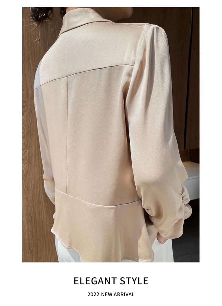 | Camisa de seda con lazo para mujer, nuevo diseño de primavera 2023, camisa de moda de nicho, top ajustado de seda morera |