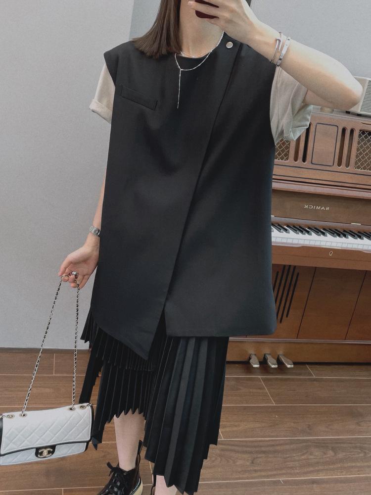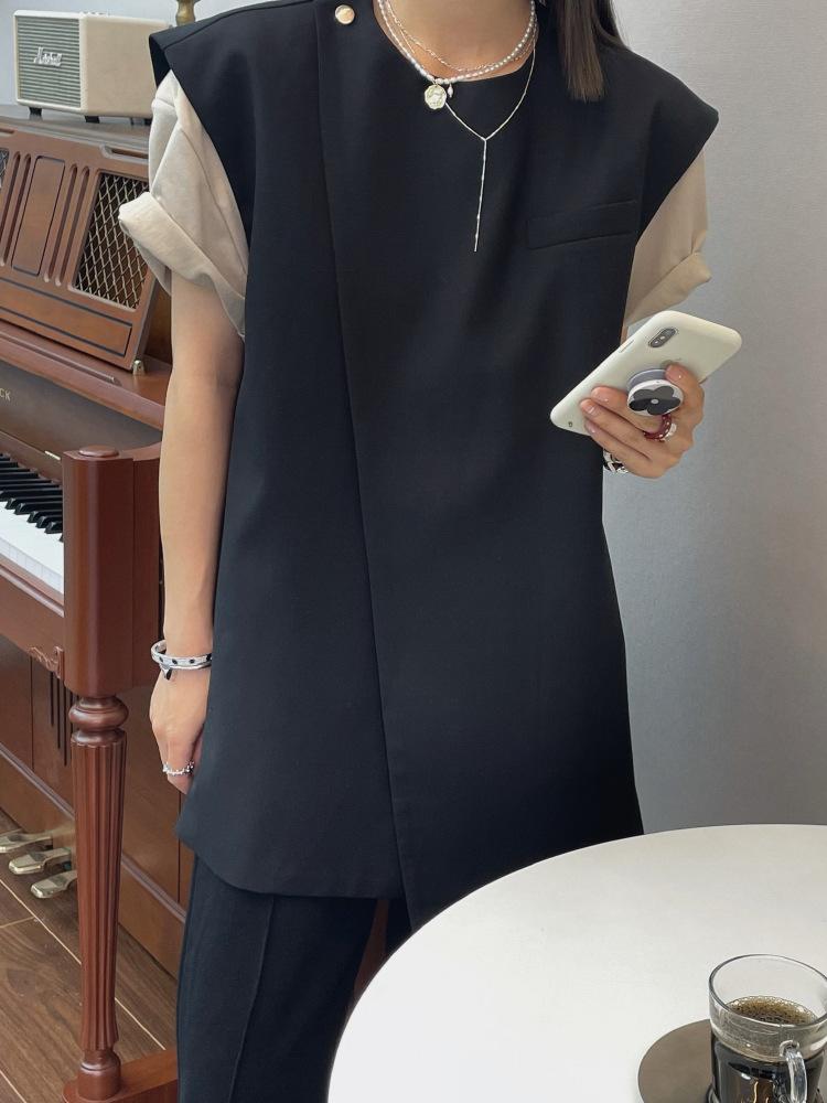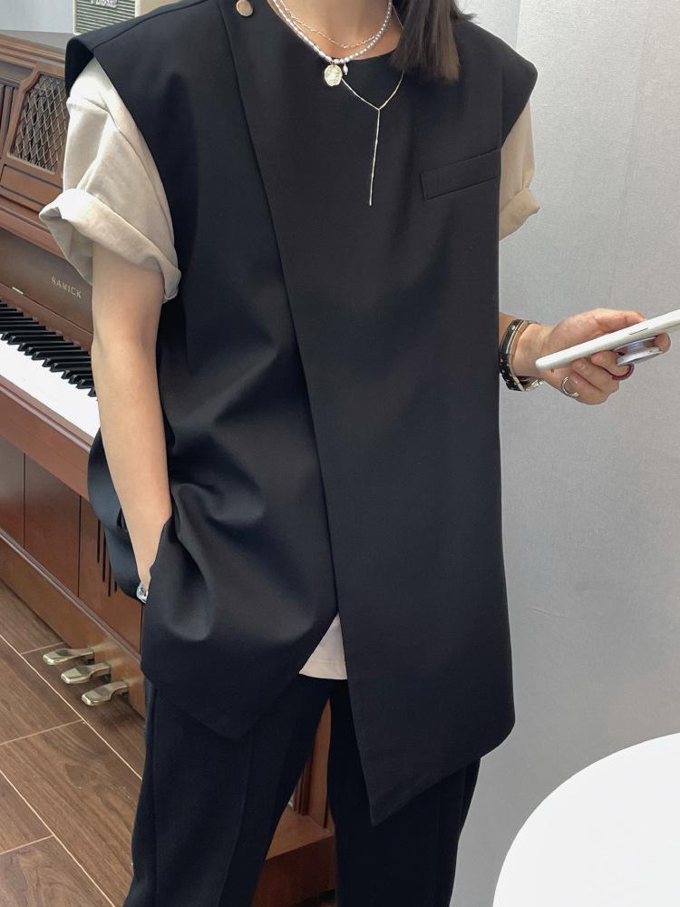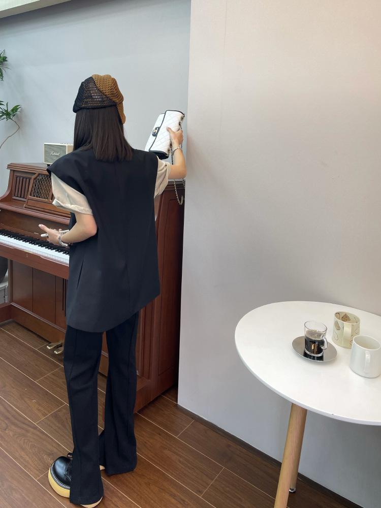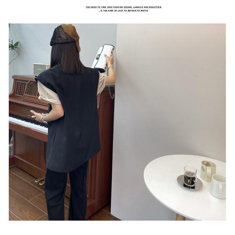 Traje Chaleco Exterior para Mujer Coreano 2025 Primavera y Verano Nuevo Negro Chaleco Exterior Chaqueta
