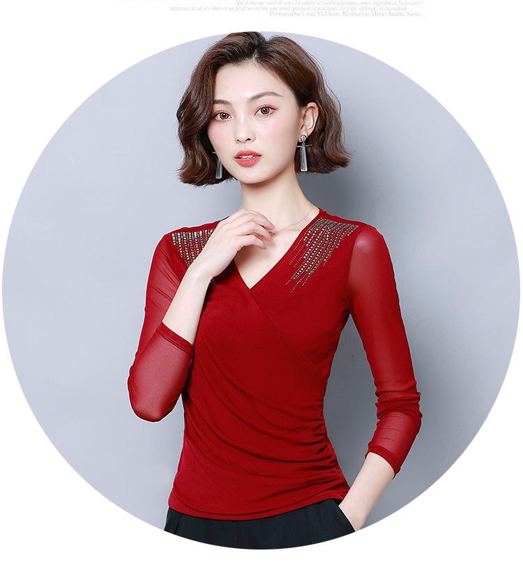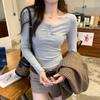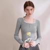 Ropa de Otoño de Rendimiento de Manga Larga para Mujer, Tops Estilo Principios de Otoño, Camiseta Base de Malla Ligeramente Madura, Traje para Baile Cuadrado, Estilo Celebridad de Internet