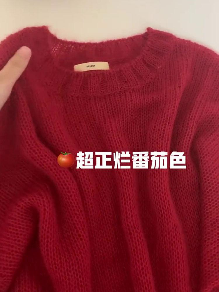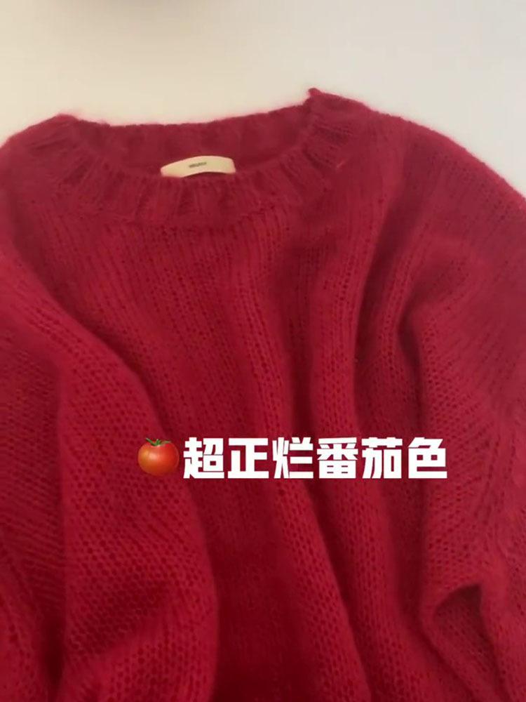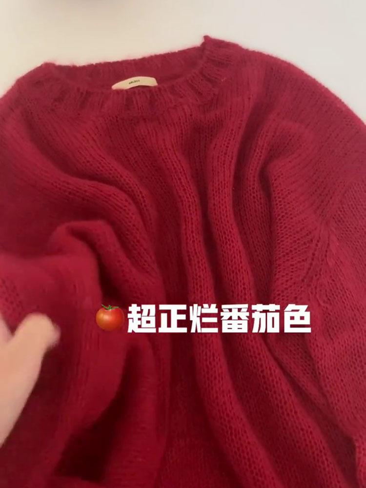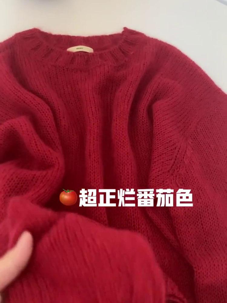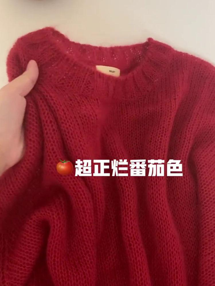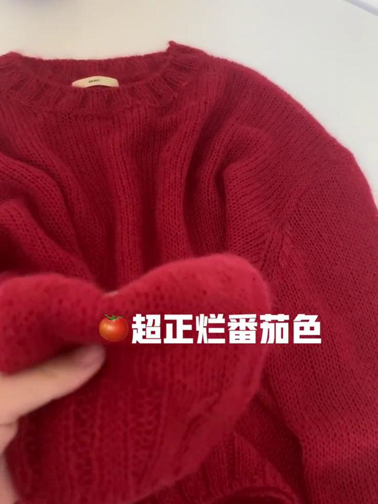 Suéter de mohair rojo para mujer, ropa interior de primavera y otoño e invierno, suéter de fondo, estilo perezoso, top de punto de manga larga