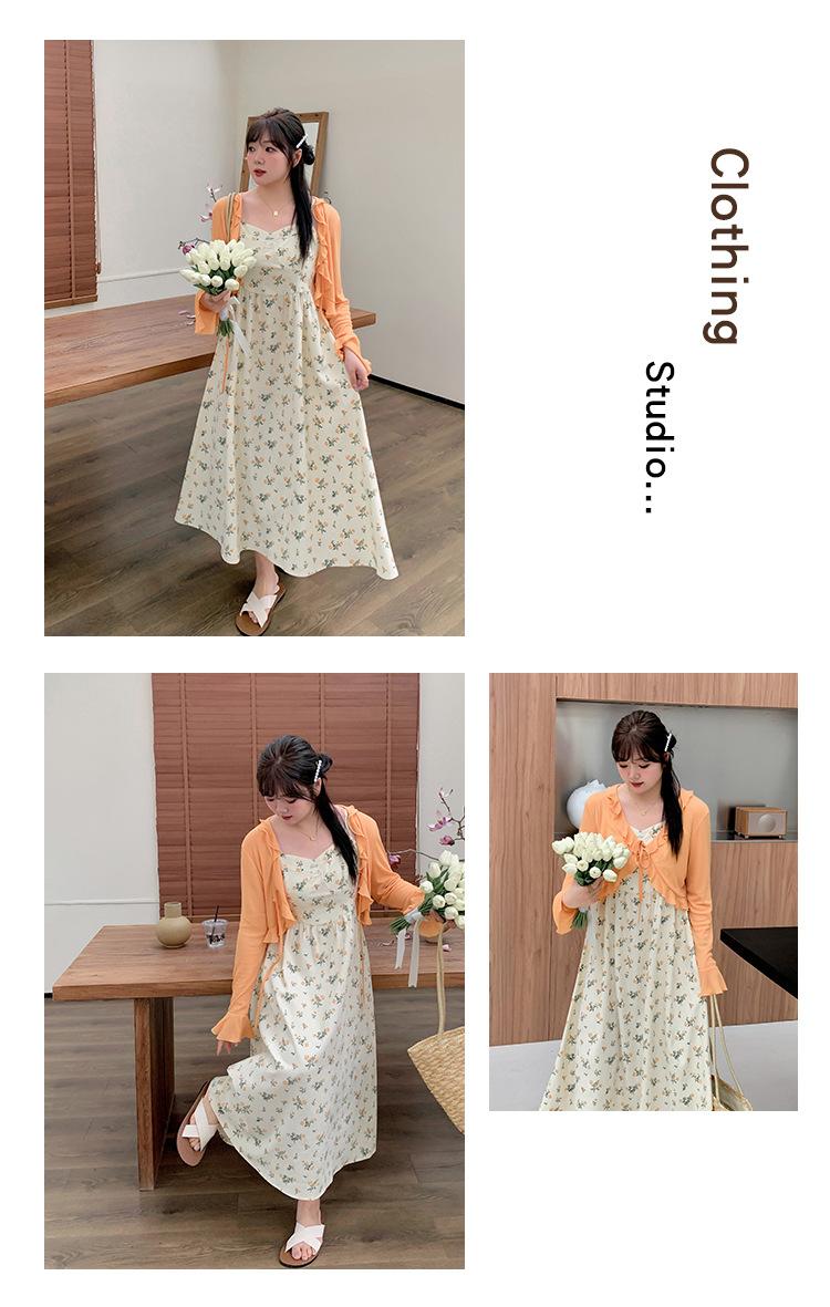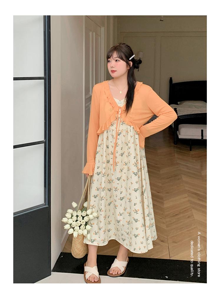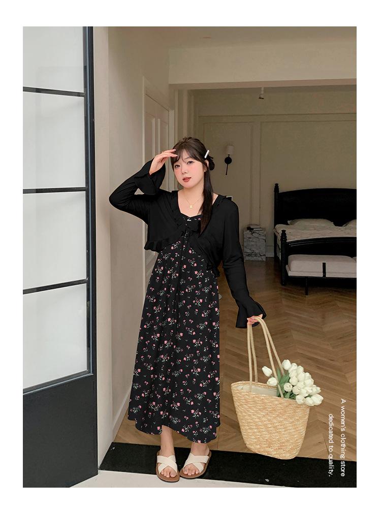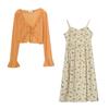 Composición: Cárdigan 85% poliéster 15% viscosa Falda de tirantes 100% poliéster