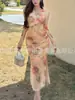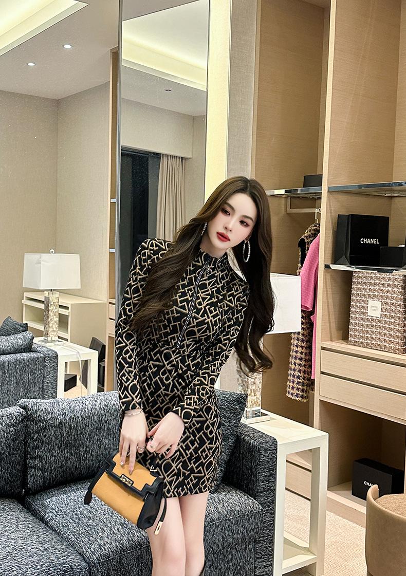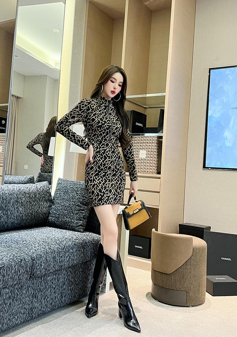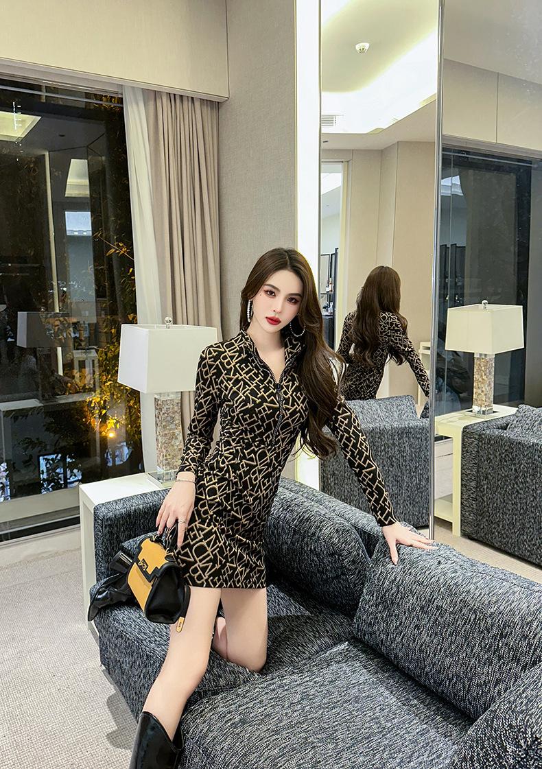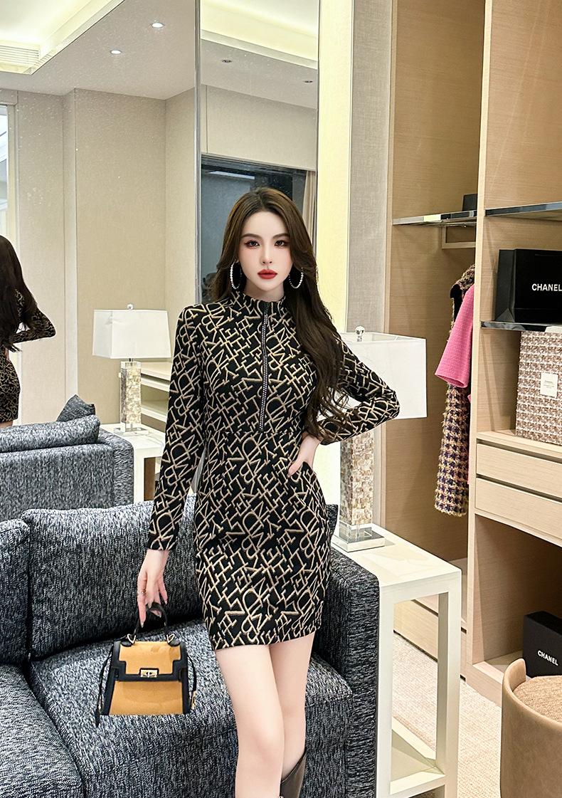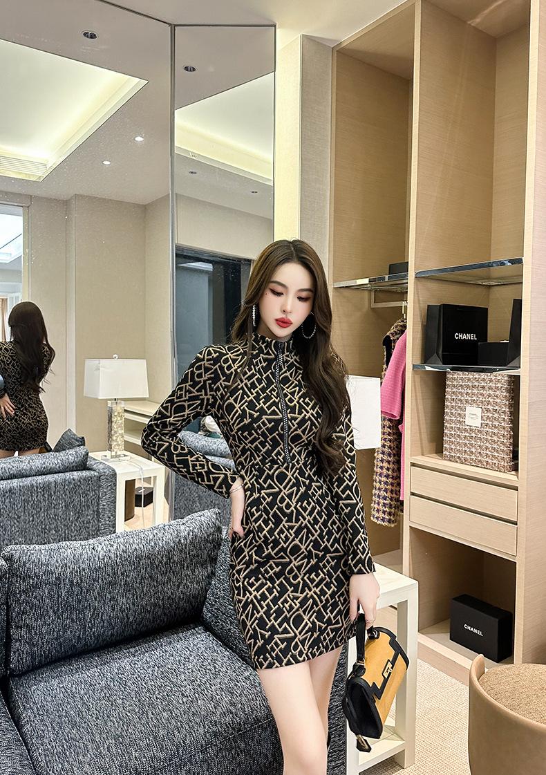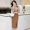 Vestido Slim Estampado para Mujer 2025 Otoño Nuevo Transfronterizo para Mujer Cuello Medio Chic Falda Slim de Cadera 20196