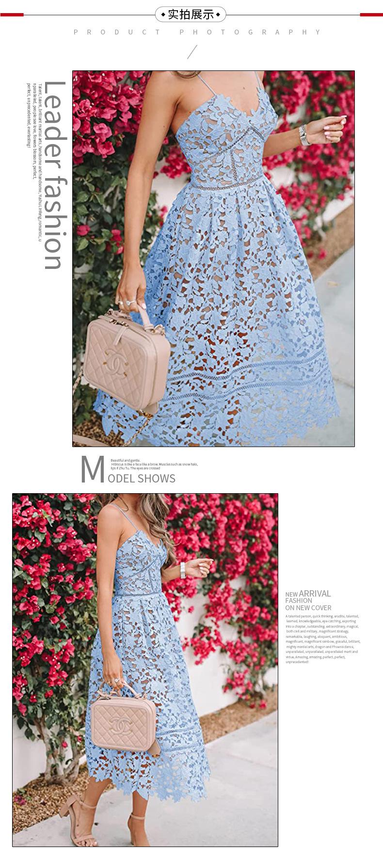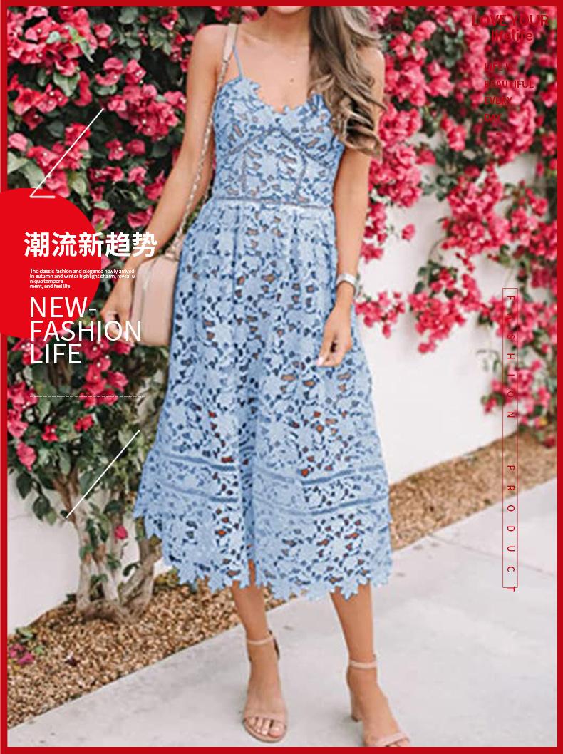 Vestido de Encaje Soluble al Agua Hueco de un Hombro con Tirantes de Celebridad Fabricante Mayorista Vestido de Moda de Verano Europeo y Americano