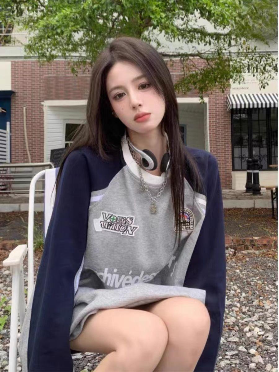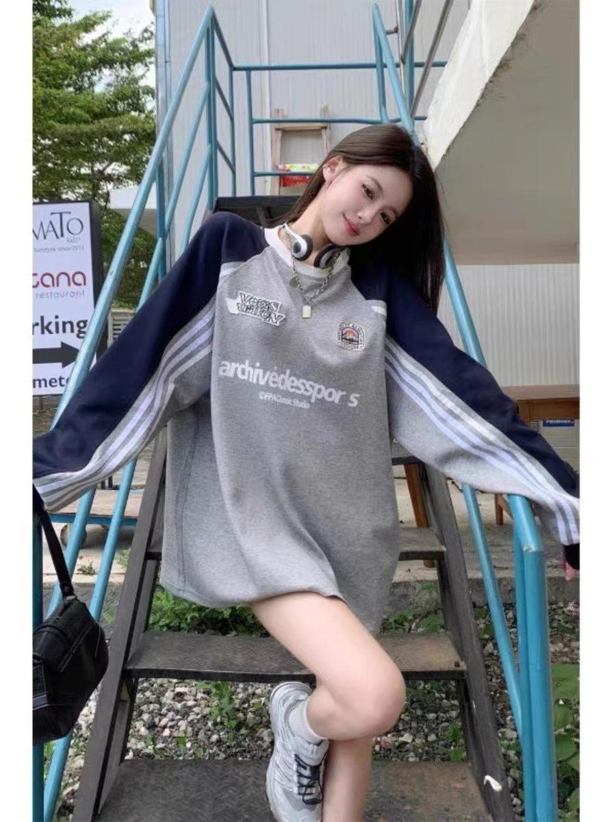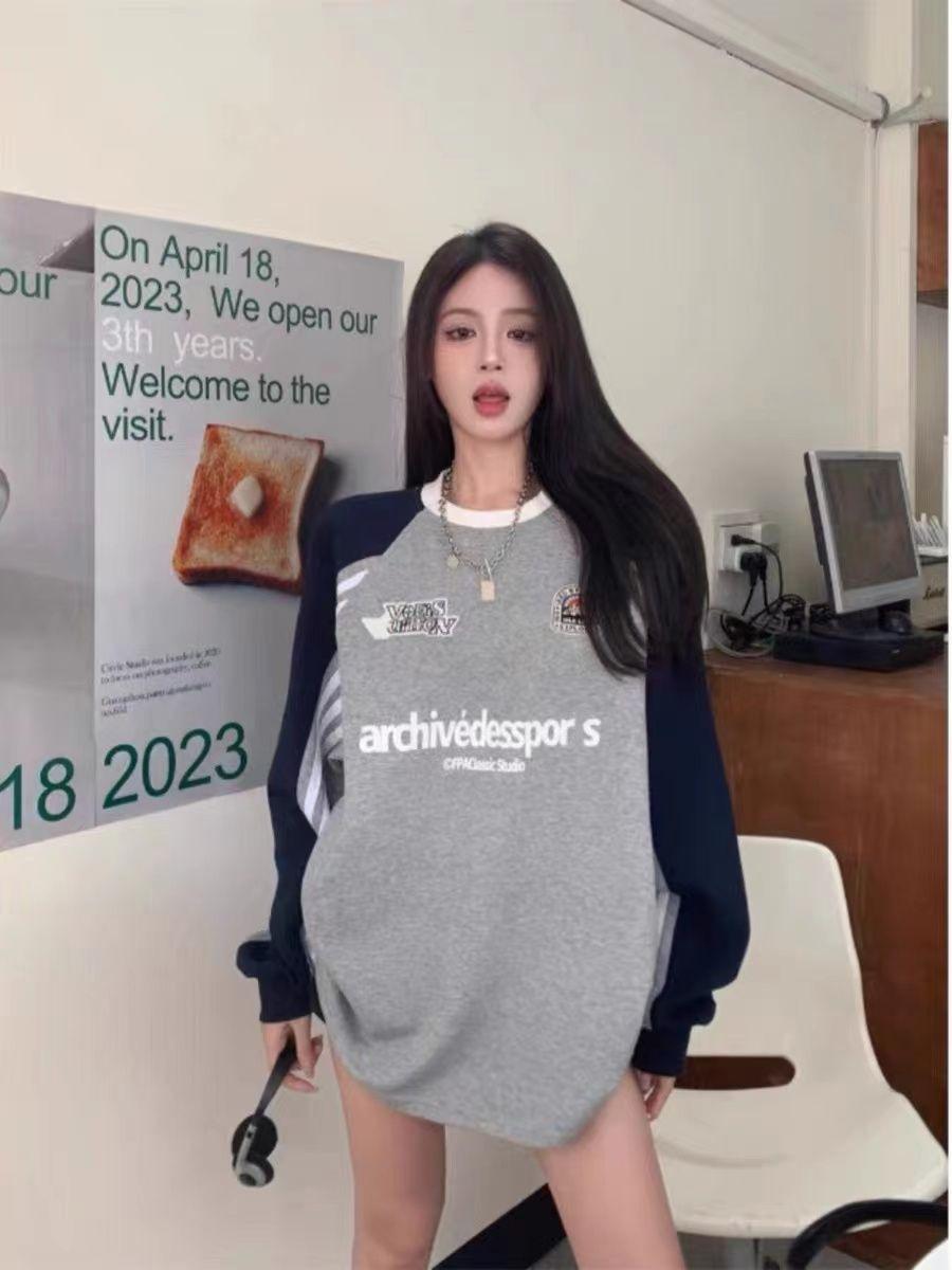 Marca de moda americana suéter retro Raglán de manga larga y cuello redondo otoño mujer 2023 nueva moda top holgado adelgazante