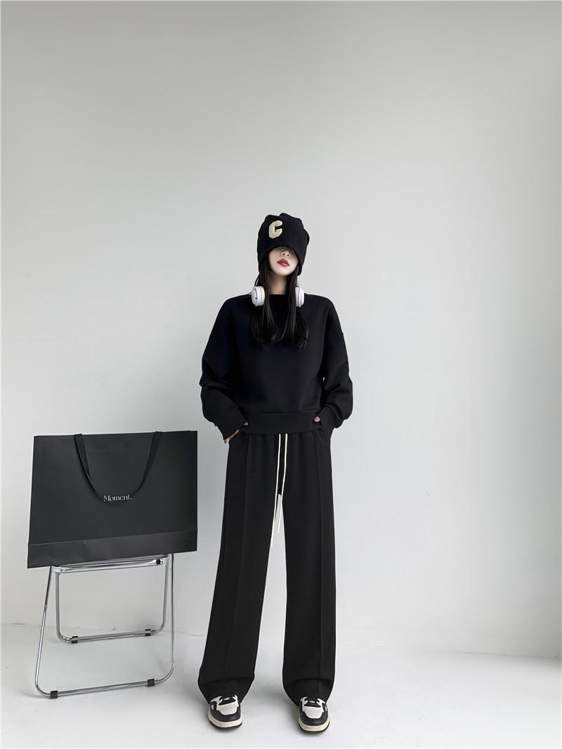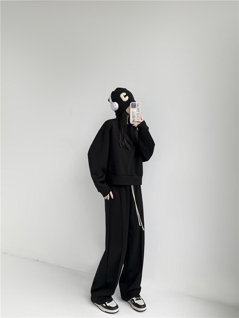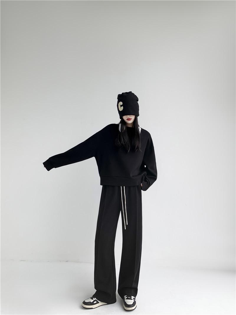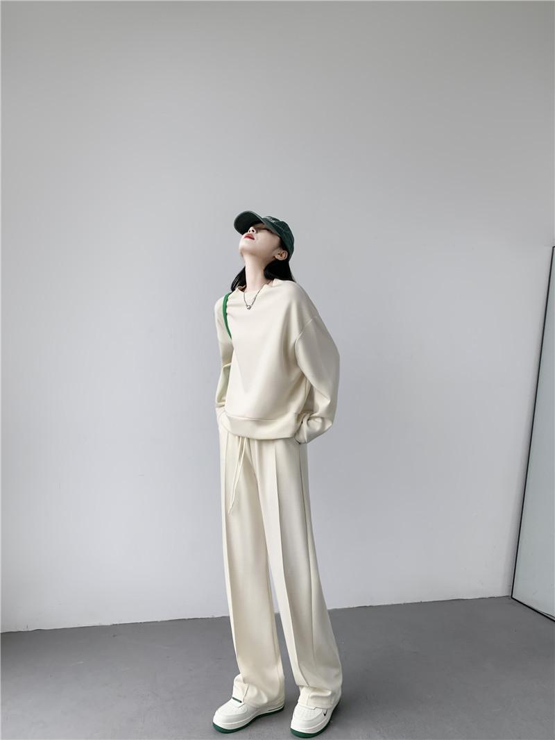 Conjunto de suéter de color sólido, lleno de ambiente deportivo