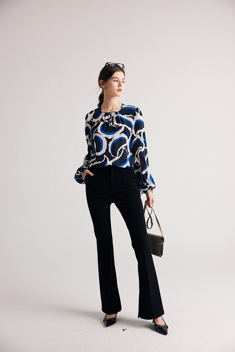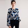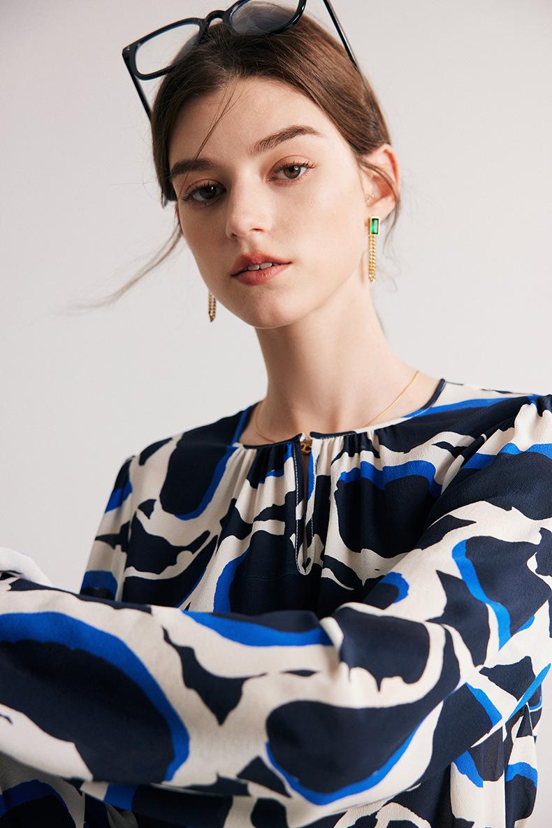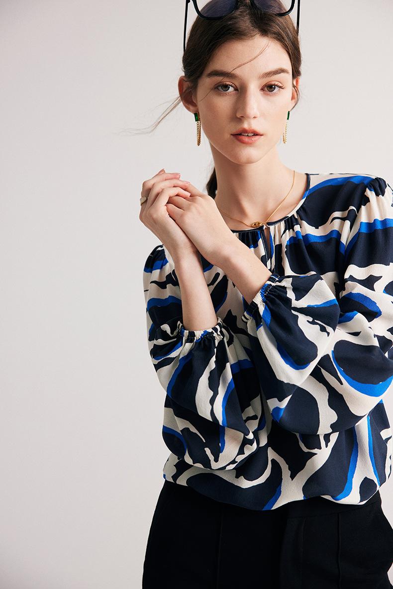 Camisa de seda para mujer, primavera y verano 2025, nueva, jersey de cuello redondo estampado de crepé de China, top de seda morera 100% estampado.