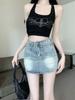Falda vaquera rojo rosa para mujer verano estilo coreano nueva cintura alta chica hot slim versátil línea A cadera falda corta