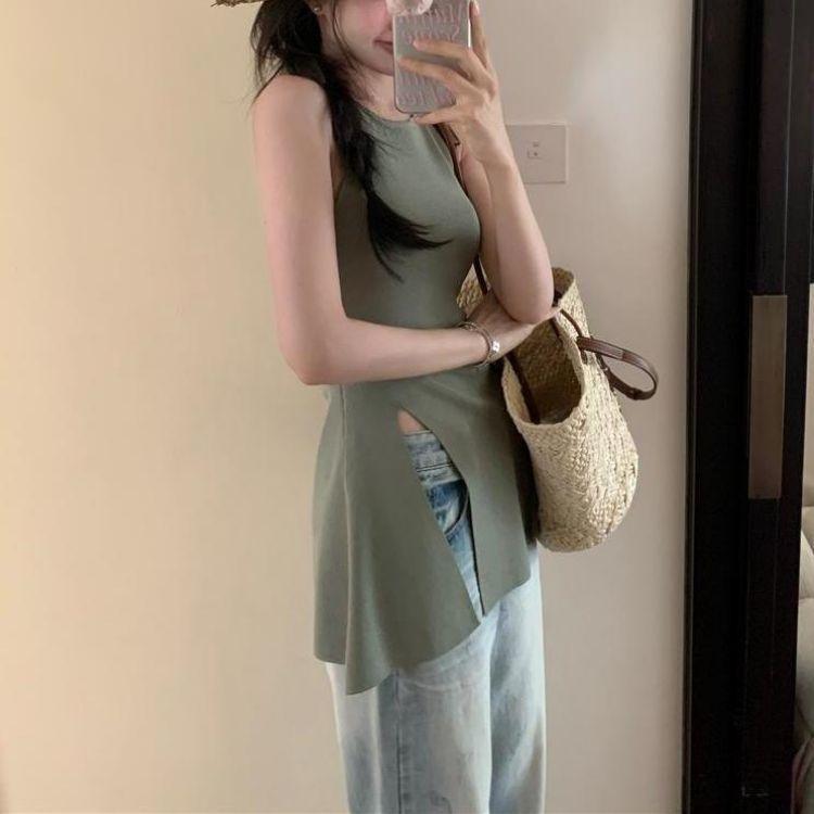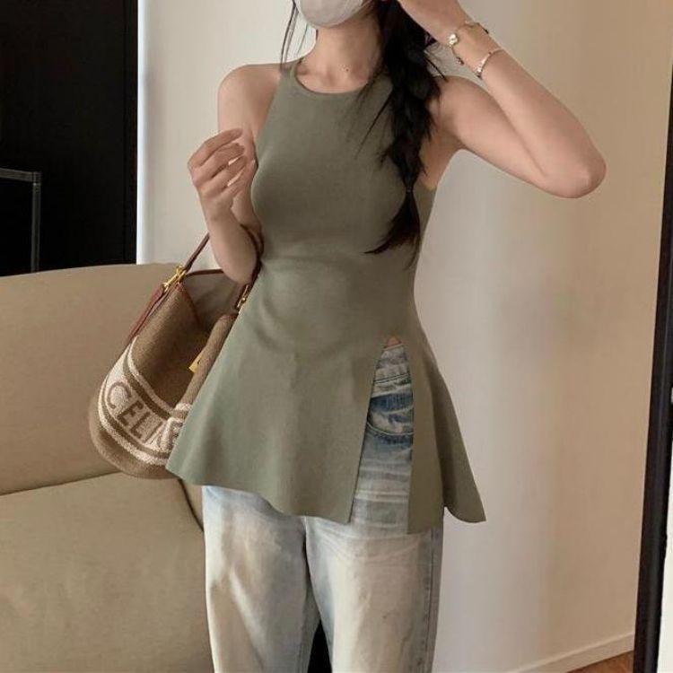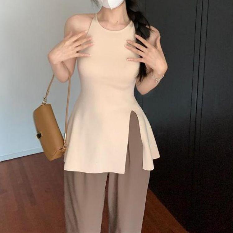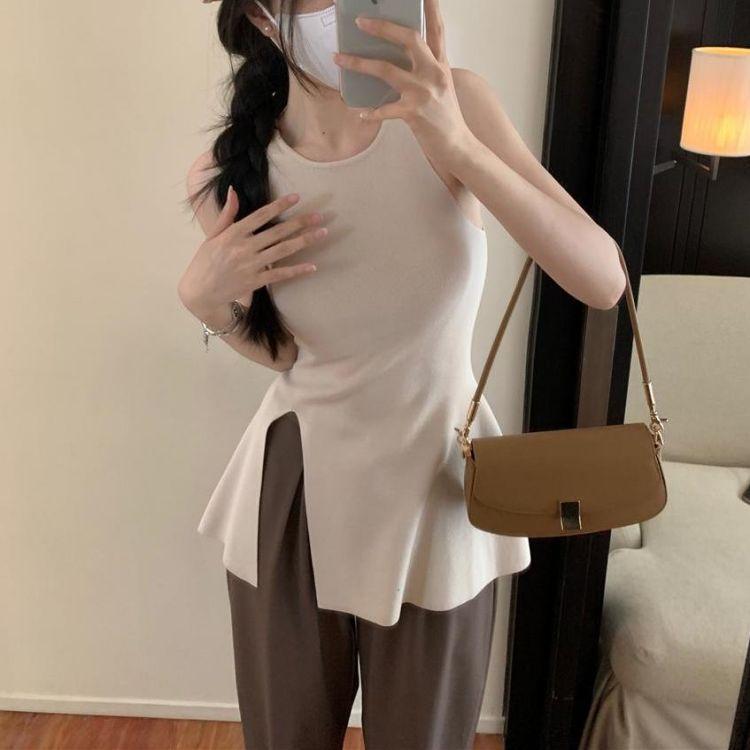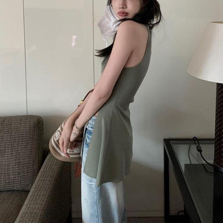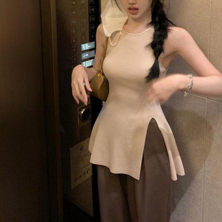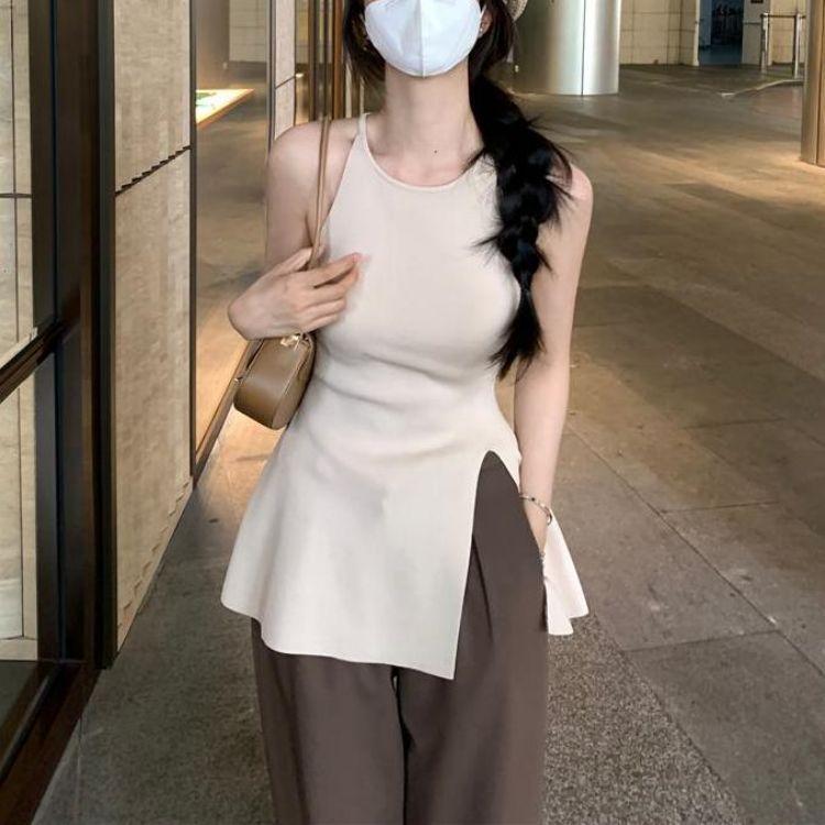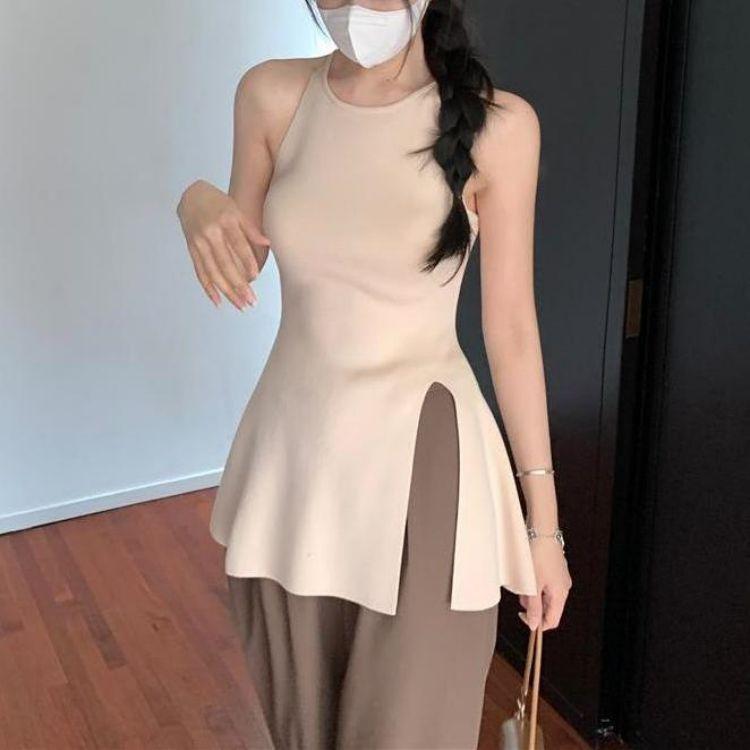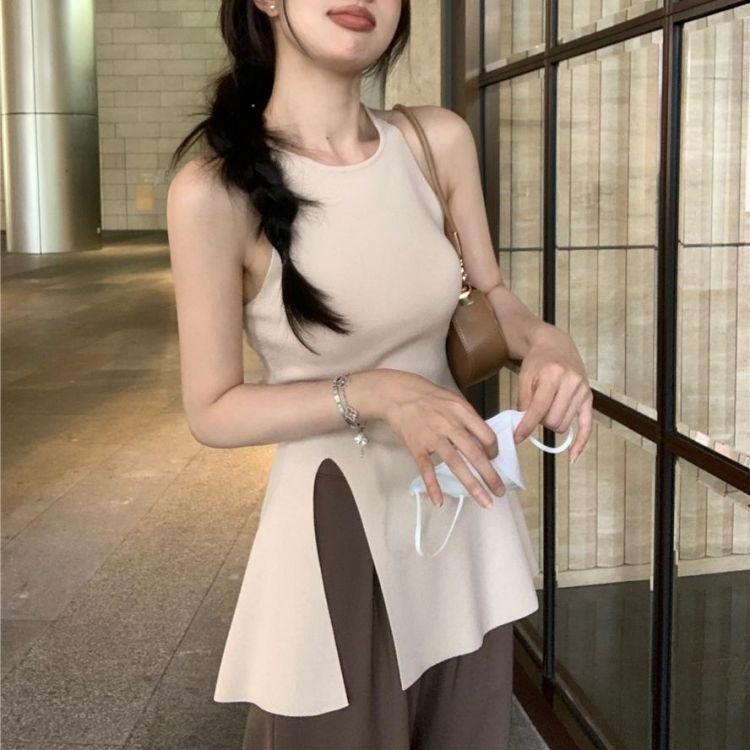 Camisola de punto estilo Pure Desire para mujer, prenda exterior de verano, ajustada, sin mangas y con abertura.