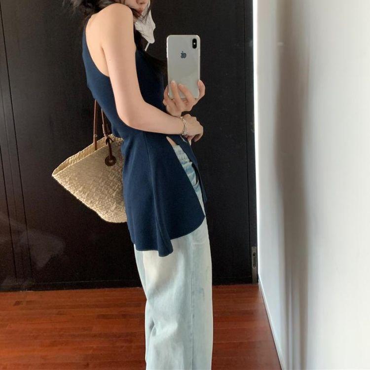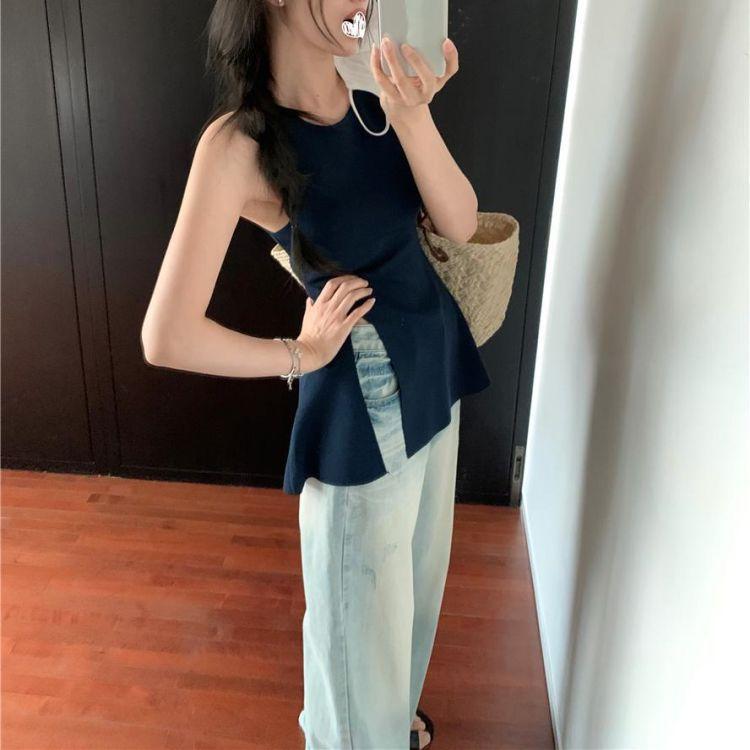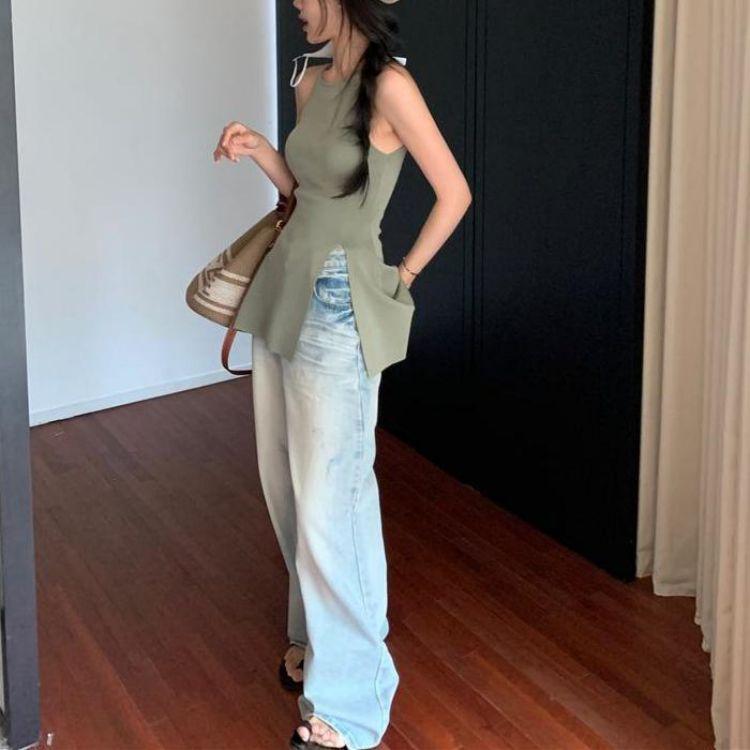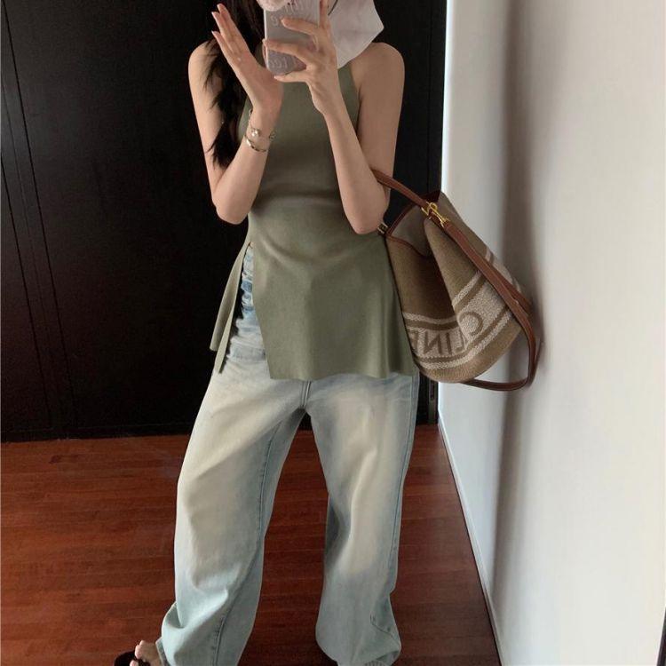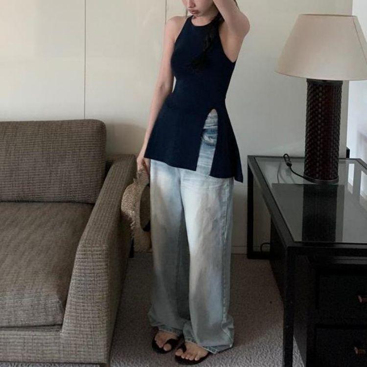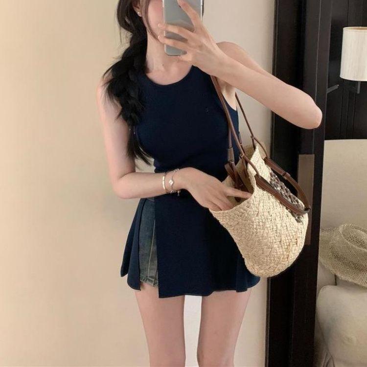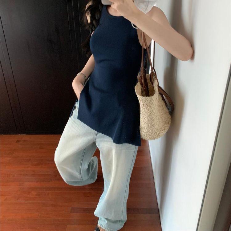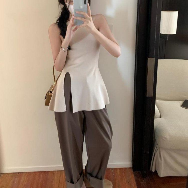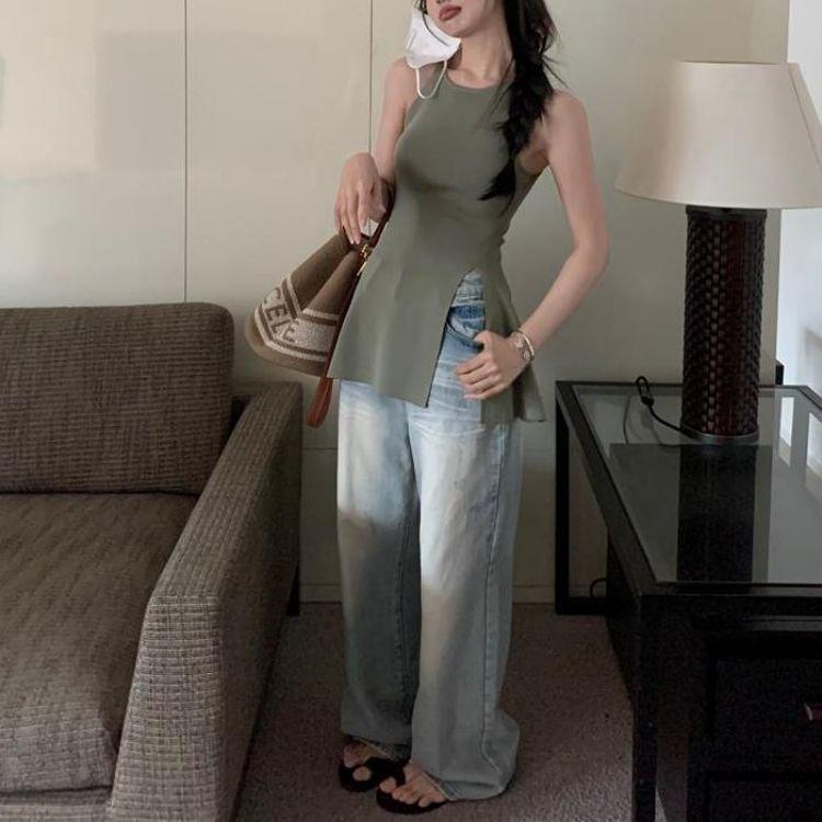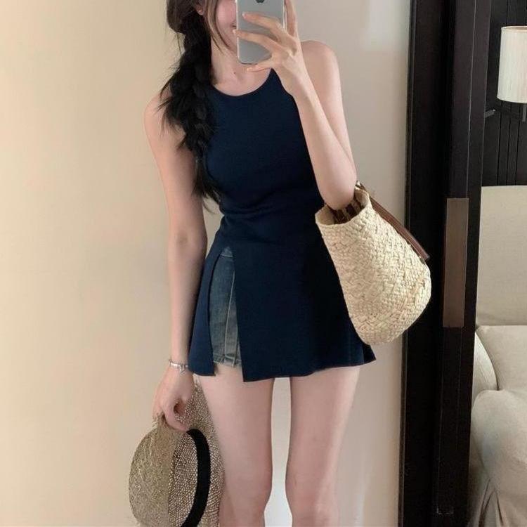 Camisola de punto estilo Pure Desire para mujer, prenda exterior de verano, ajustada, sin mangas y con abertura.